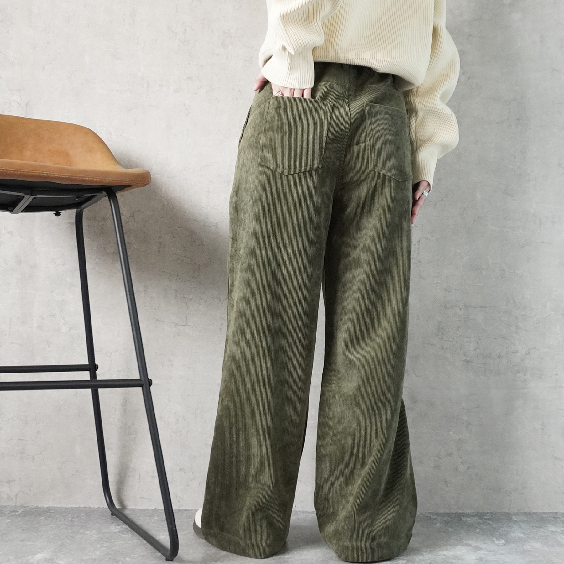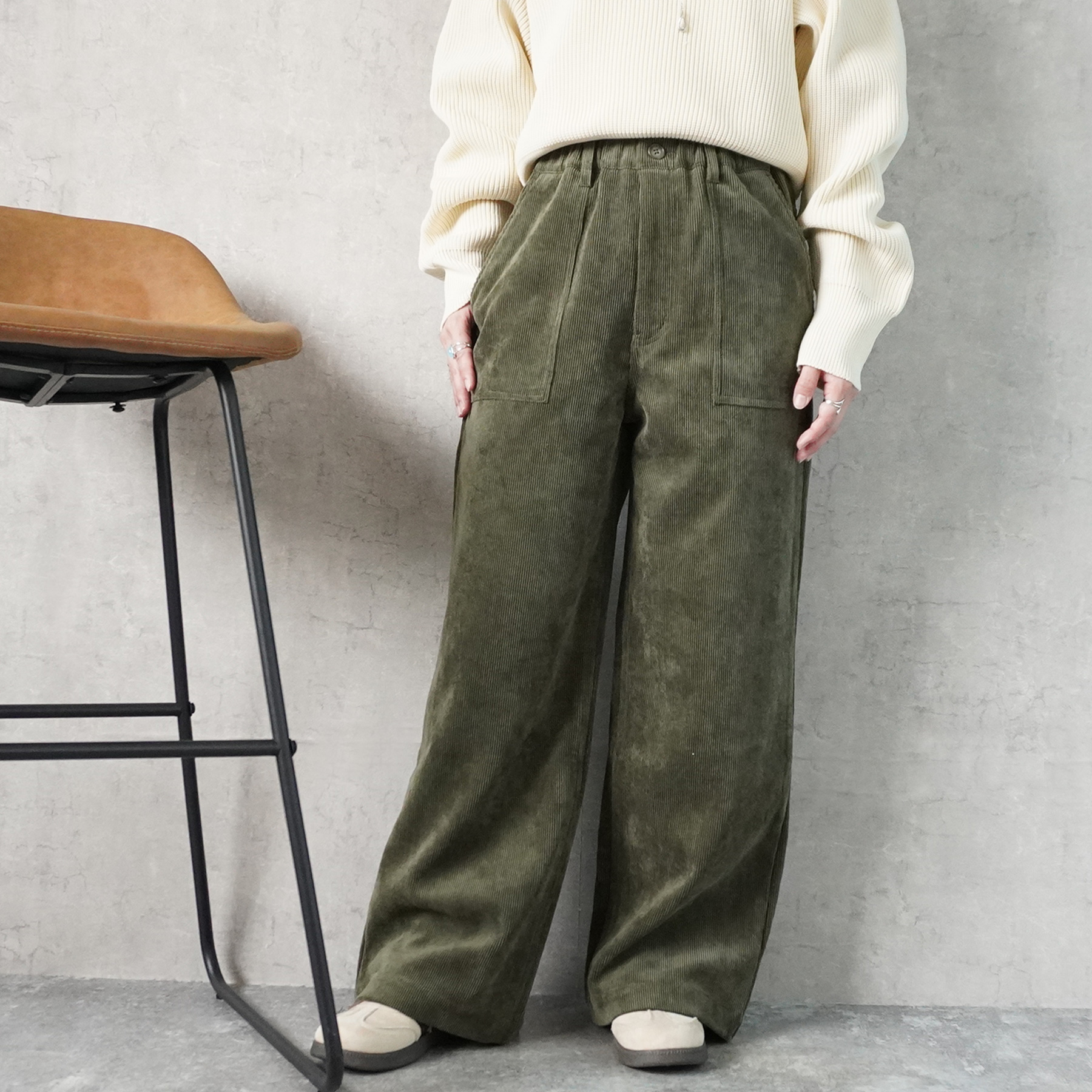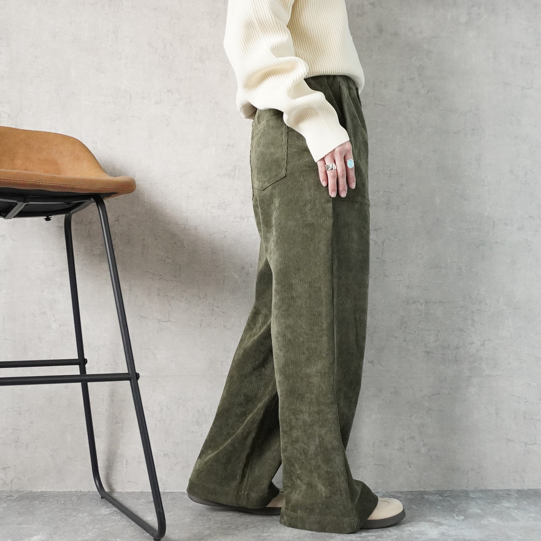 秋冬の定番素材・コーデュロイを使用した、シーズンライクなワイドパンツ。
