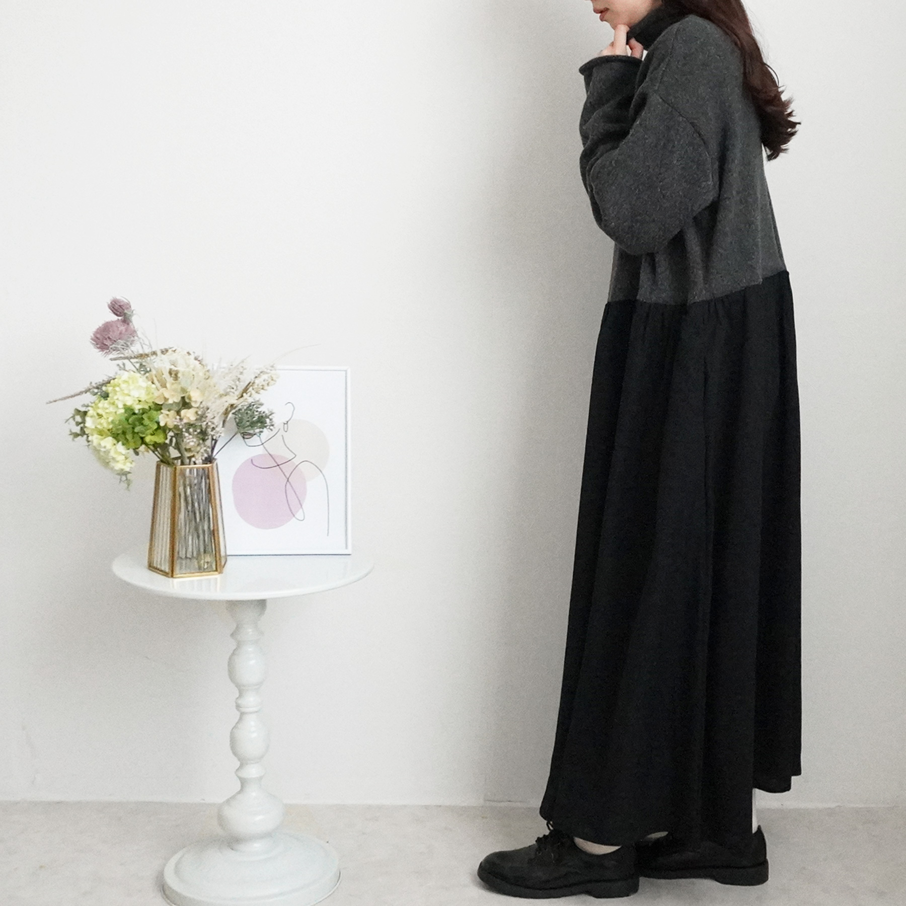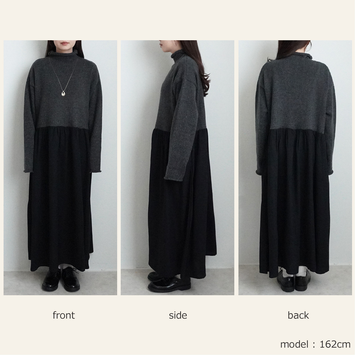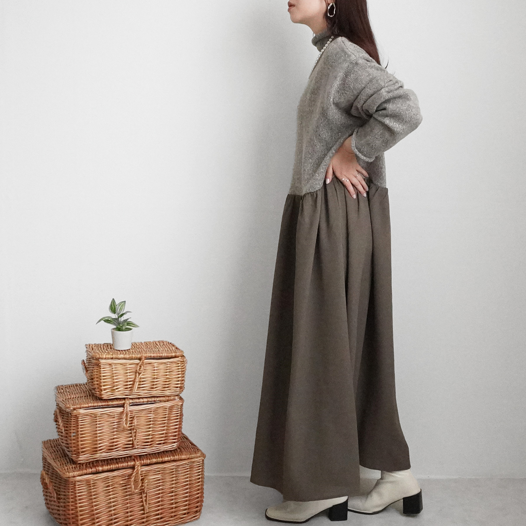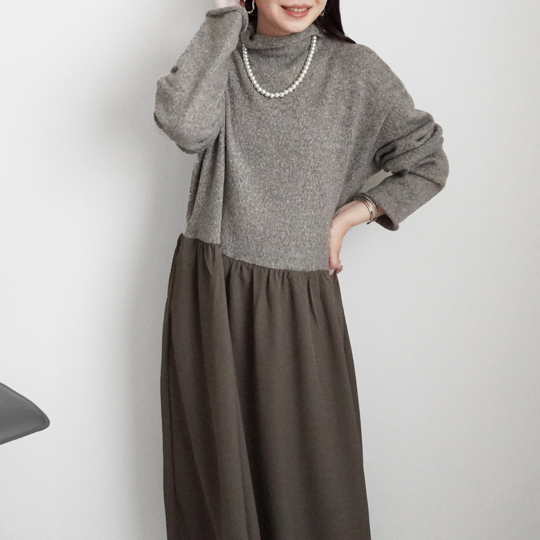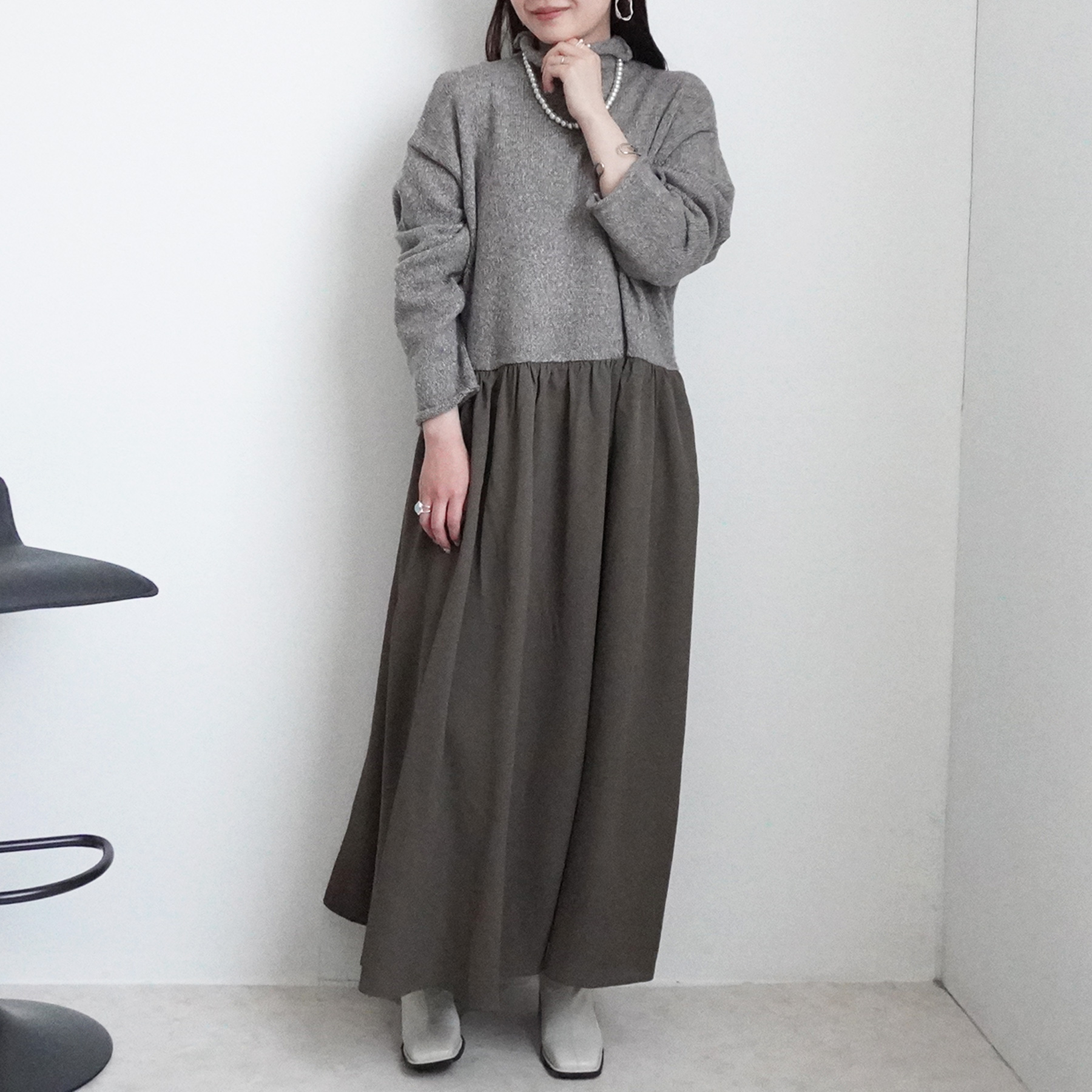 異素材の絶妙な組み合わせが魅力のニットドッキングワンピースが登場しました。
