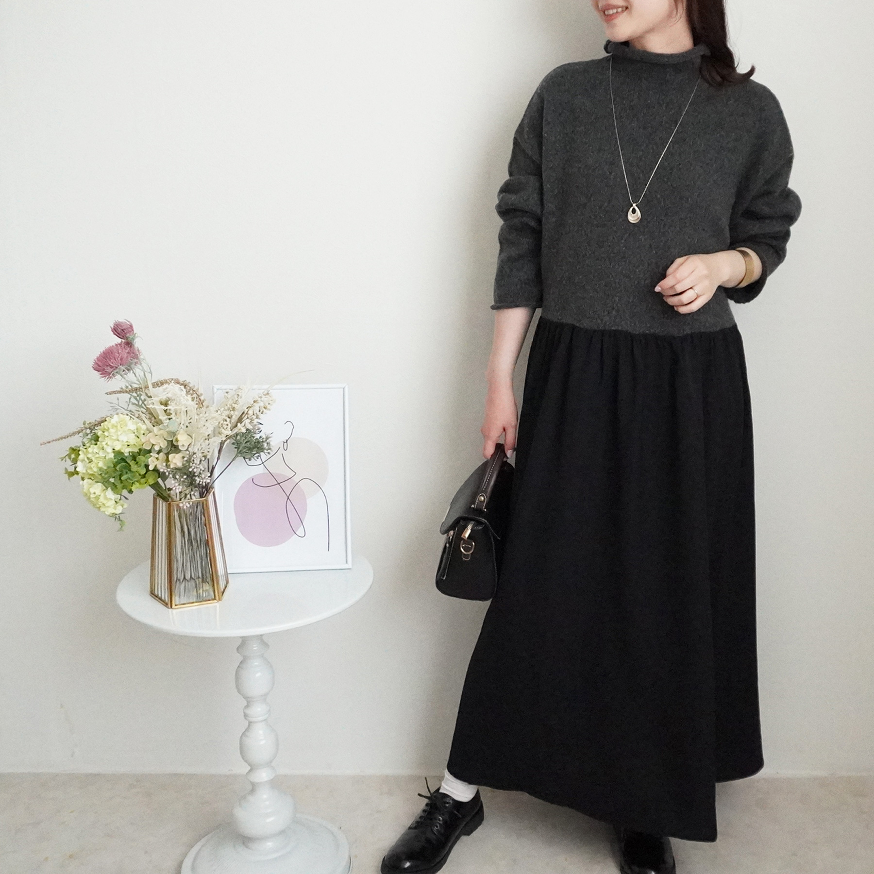 1枚でコーデが決まるので、忙しい朝にもサッと着るだけで