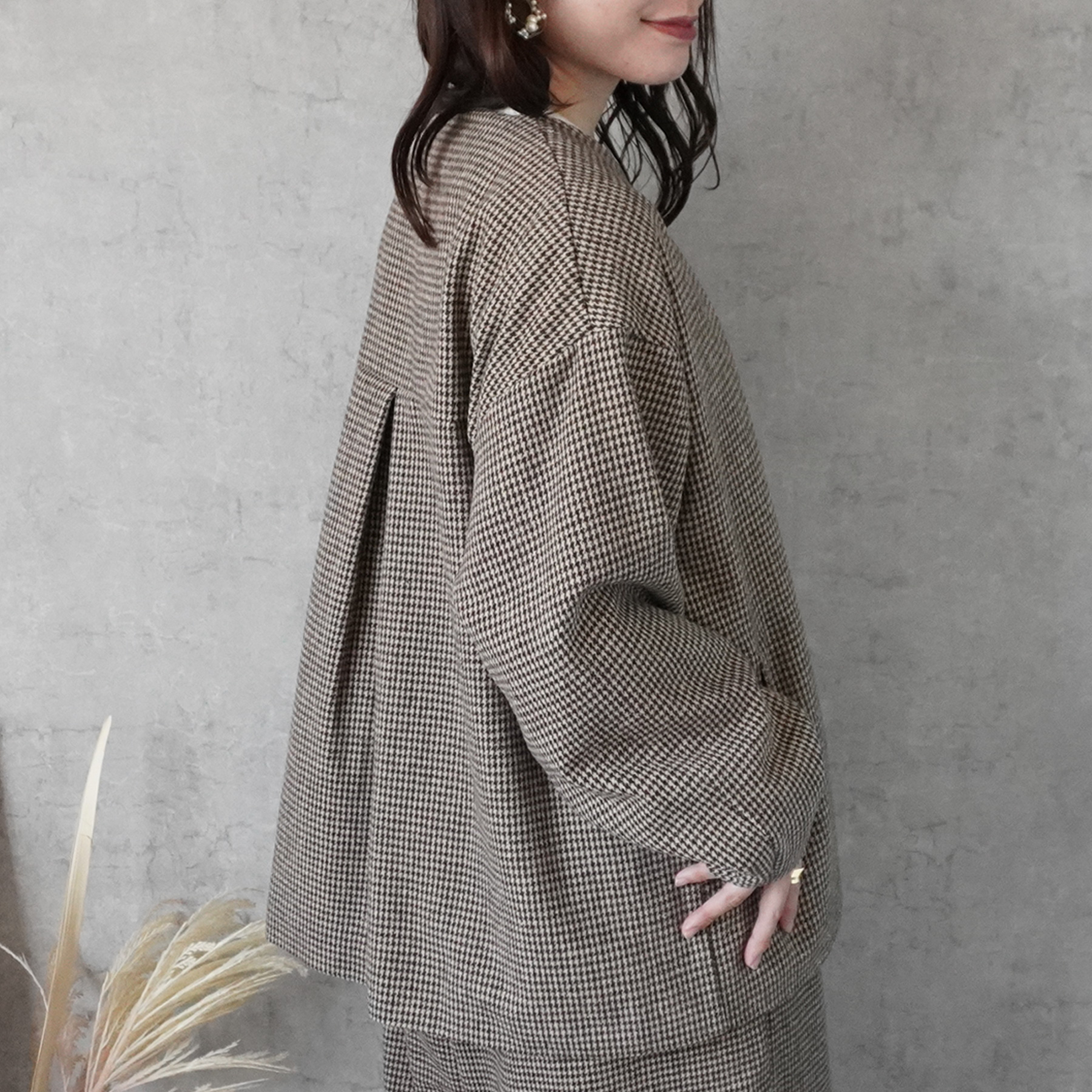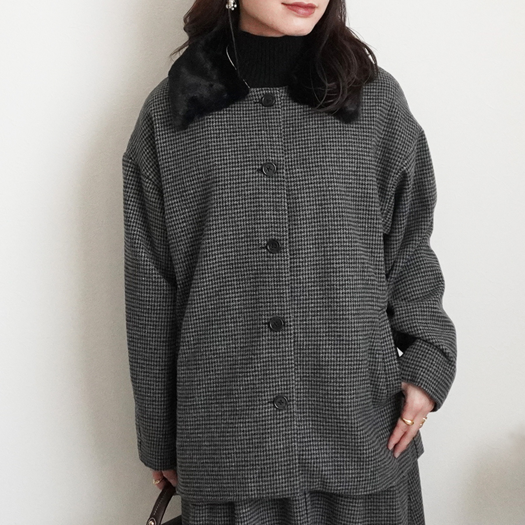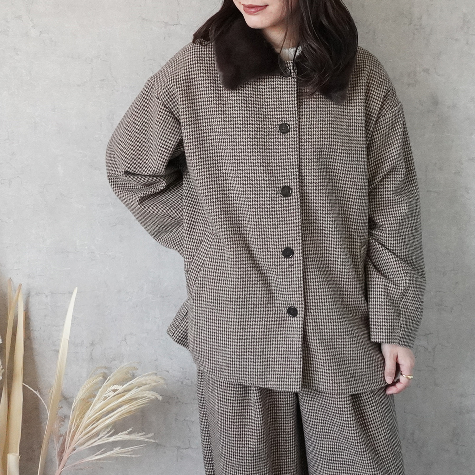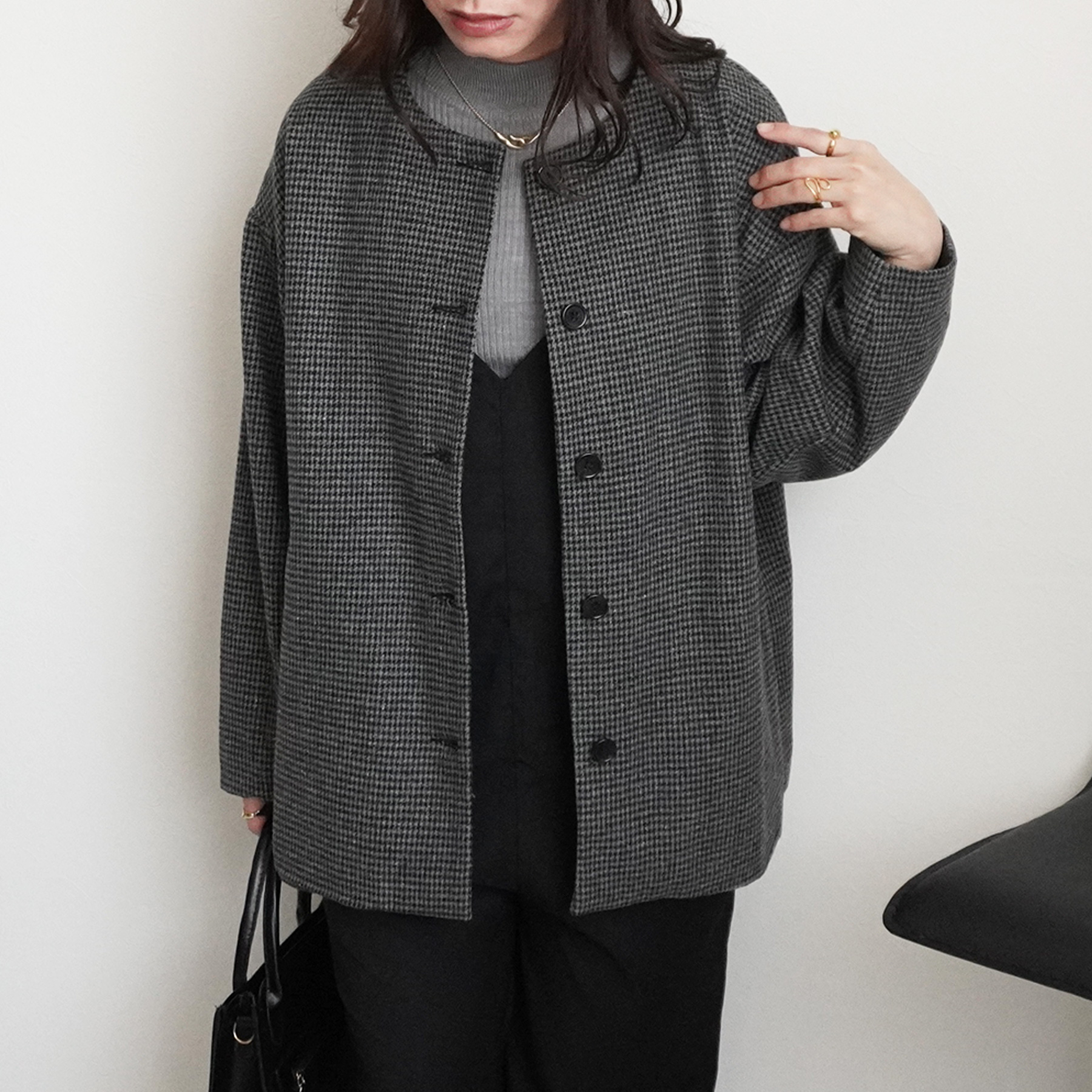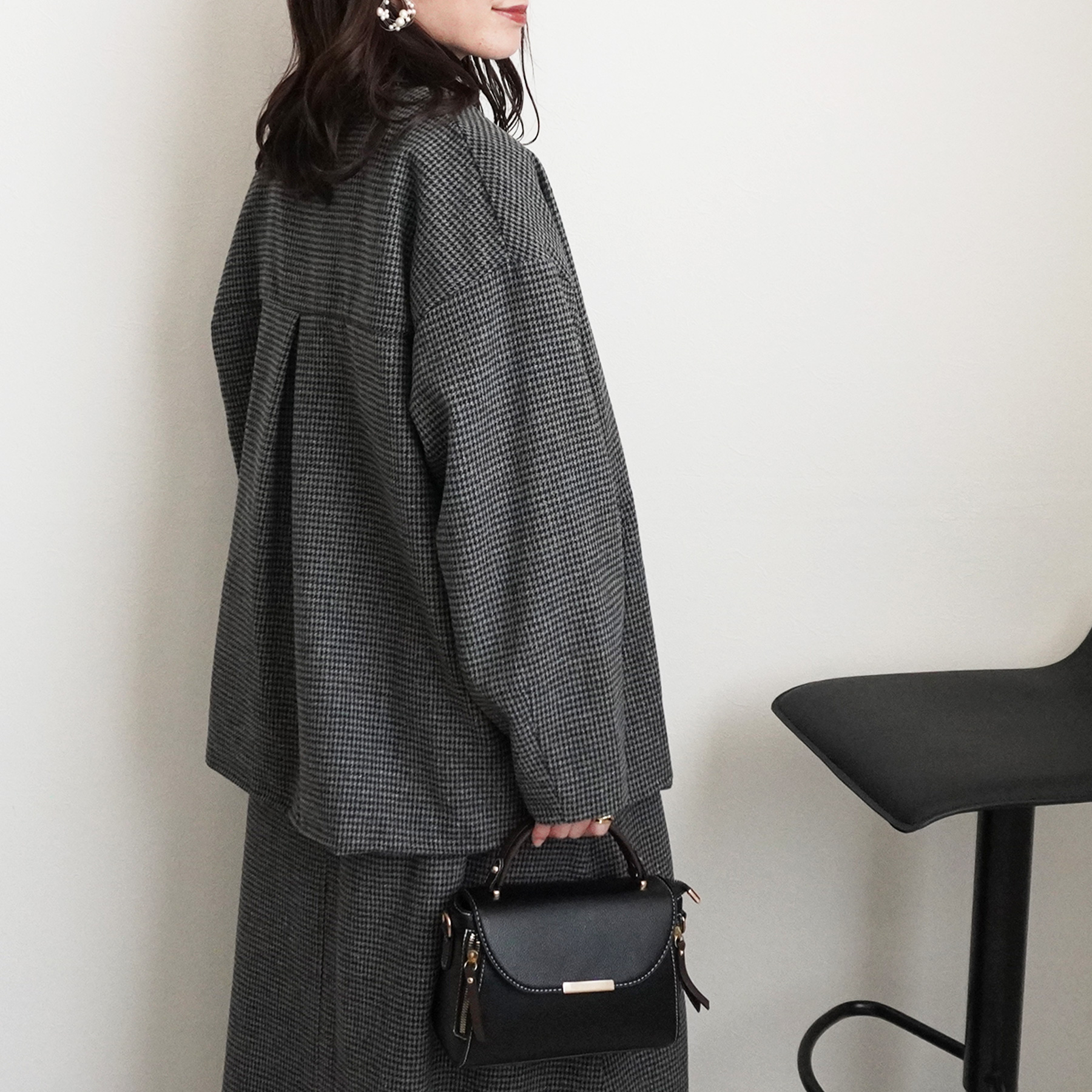 上品さと軽やかさを兼ね備えた、大人のための千鳥格子柄のライトメルトンジャケット。