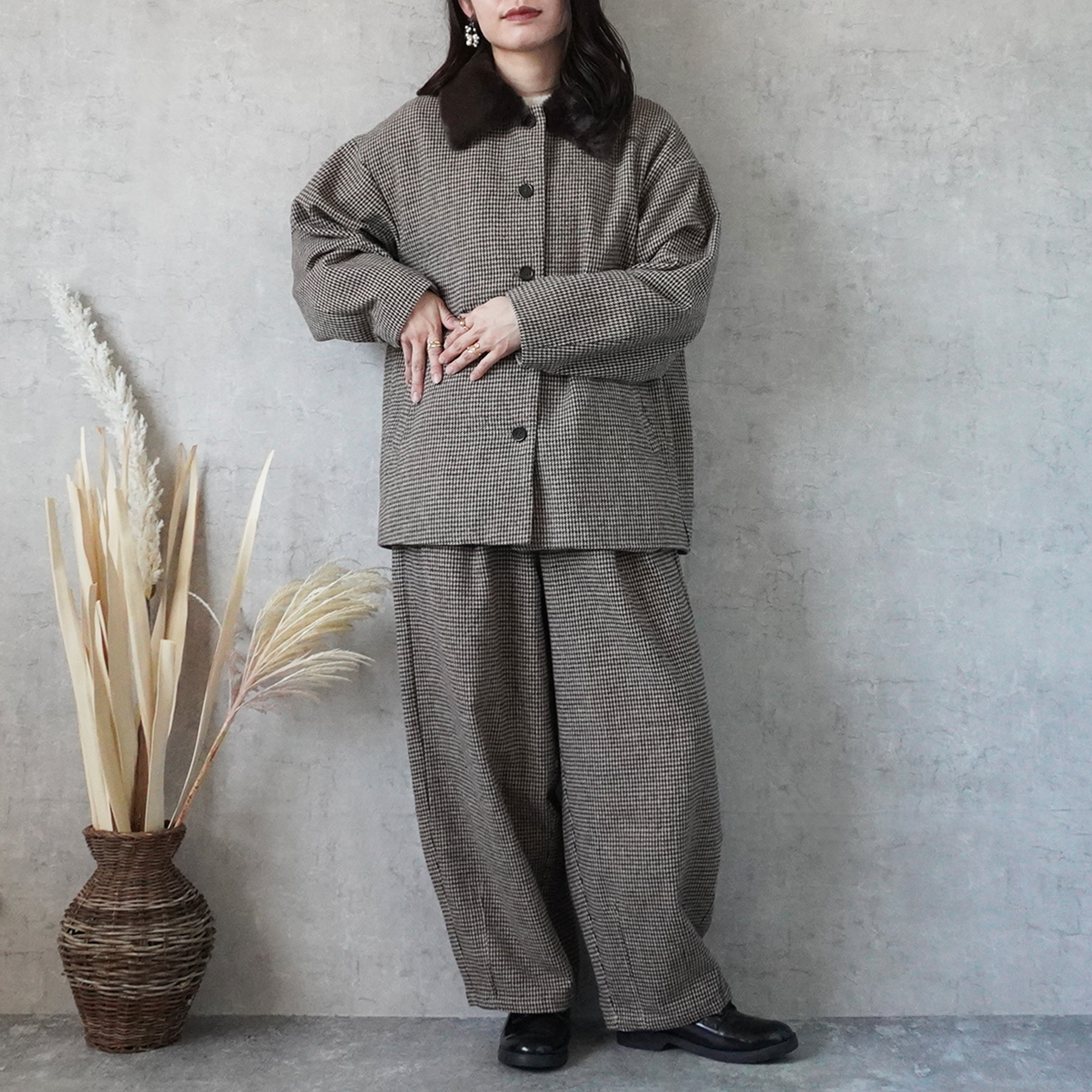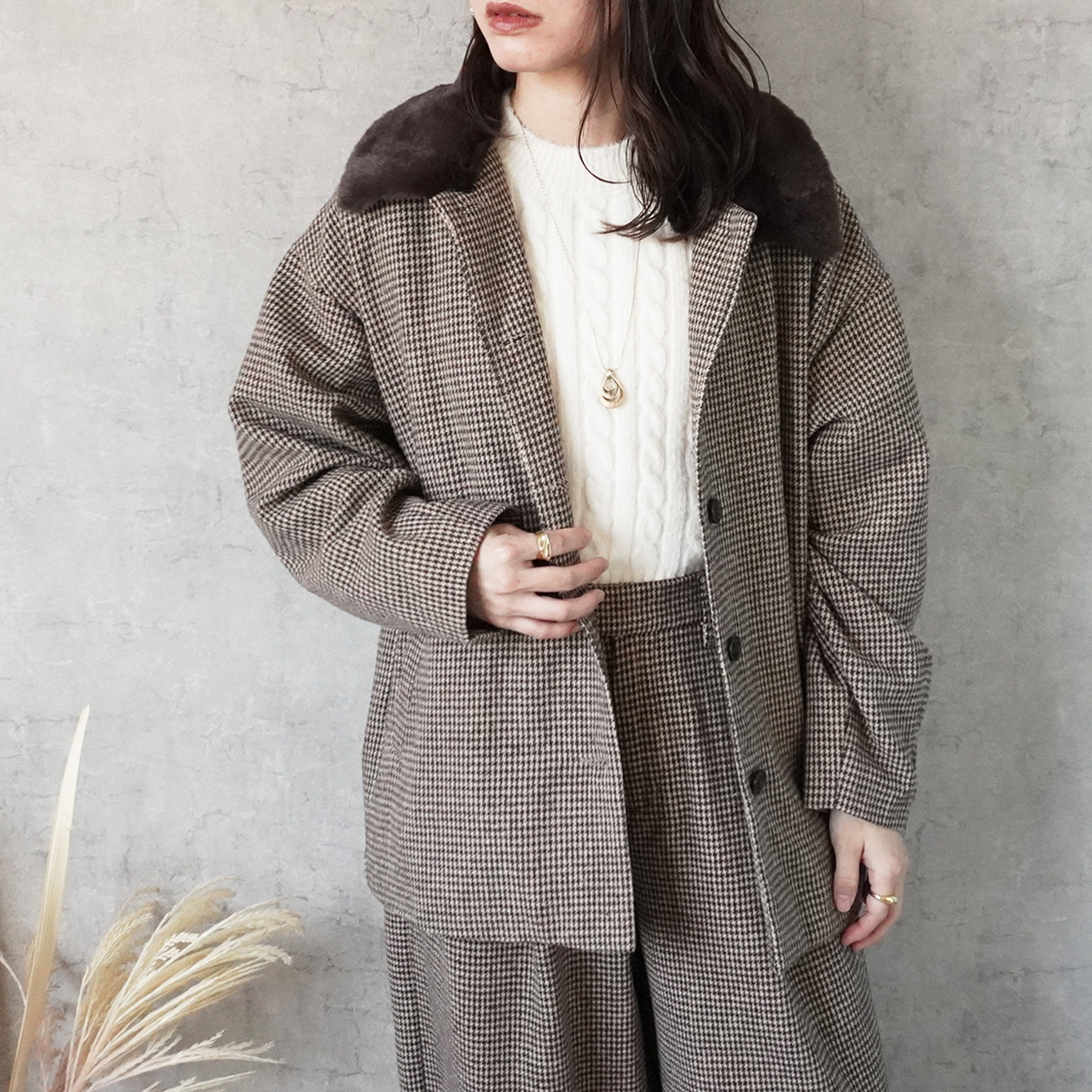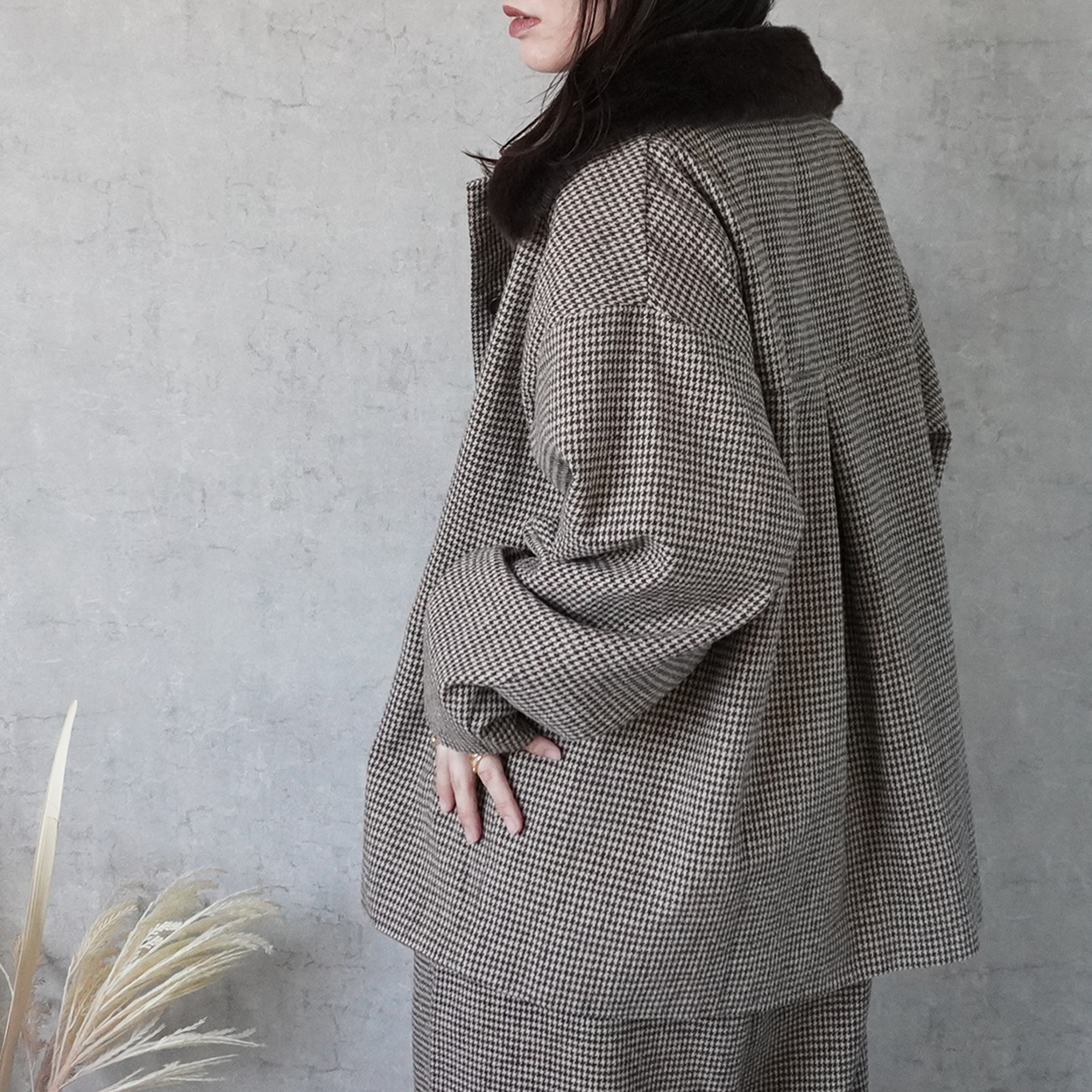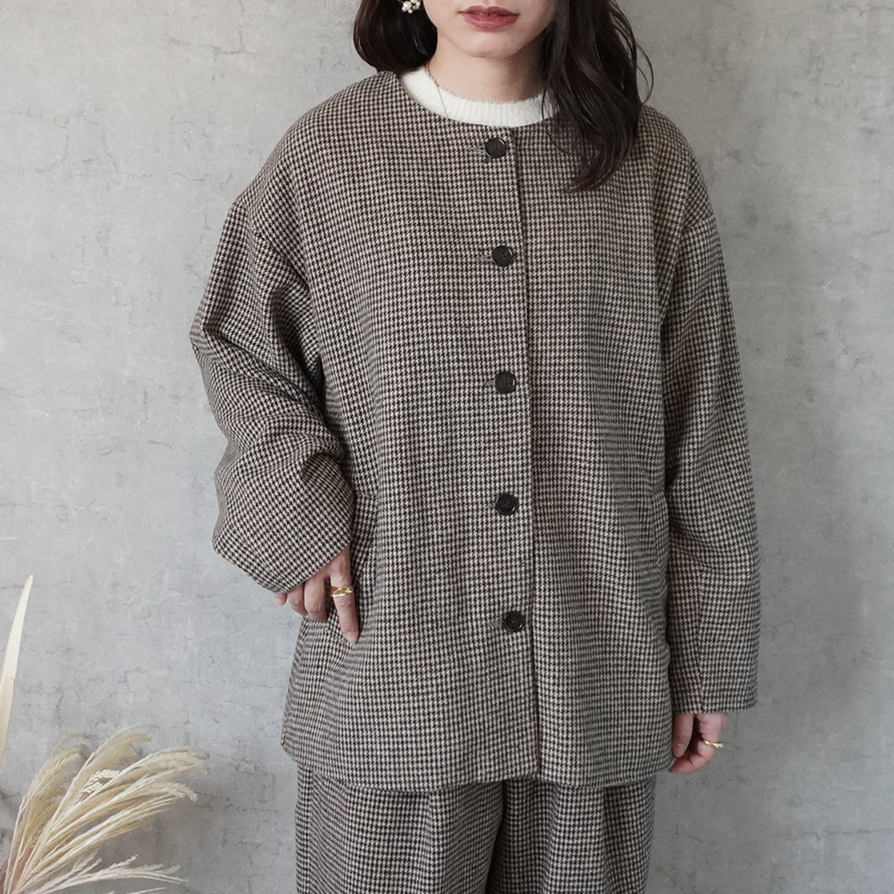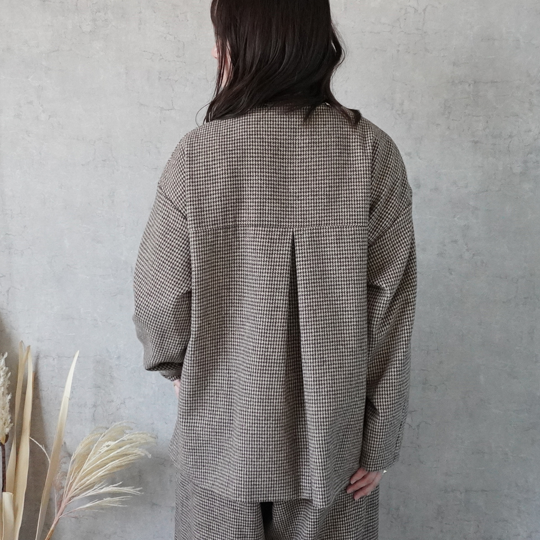 上品さと軽やかさを兼ね備えた、大人のための千鳥格子柄のライトメルトンジャケット。