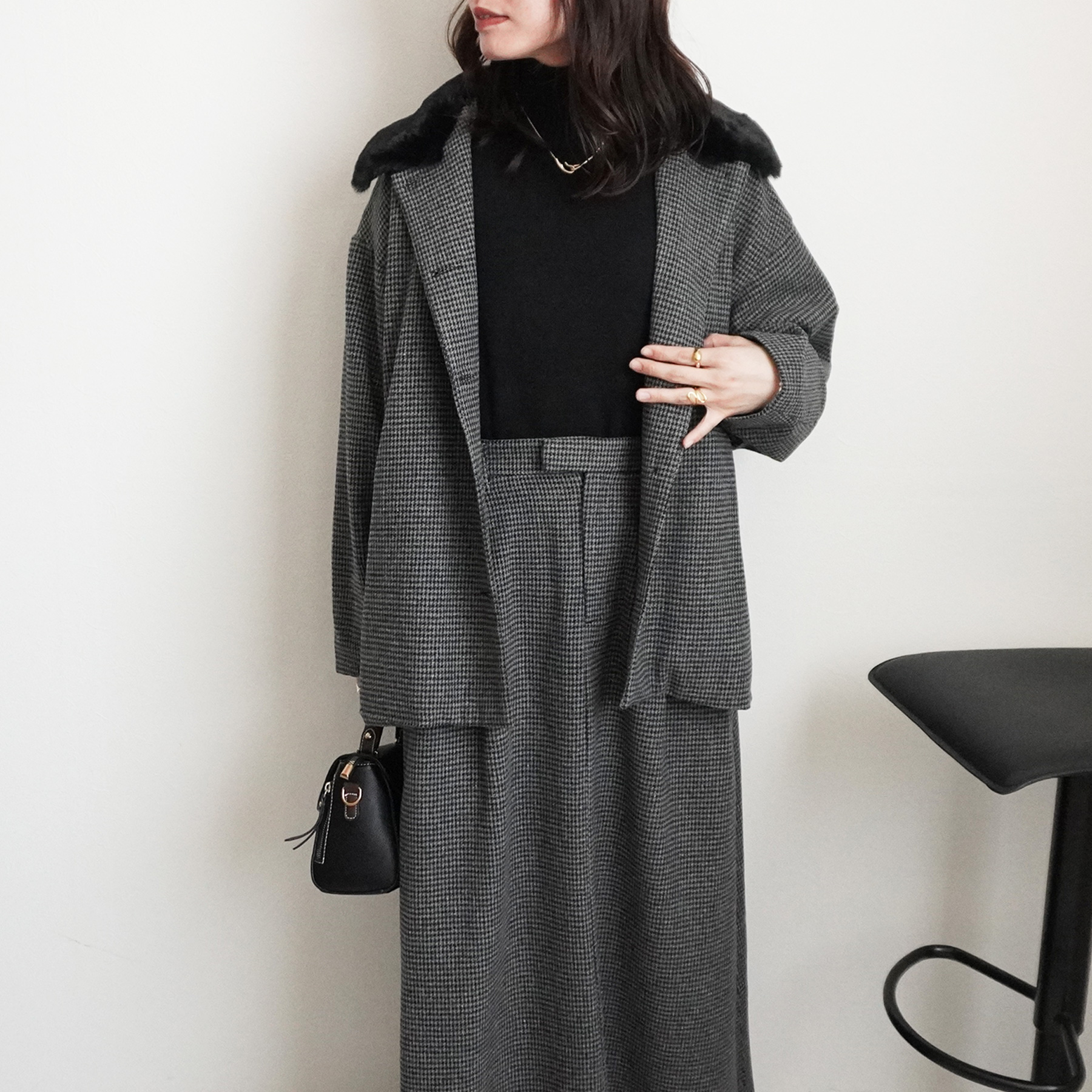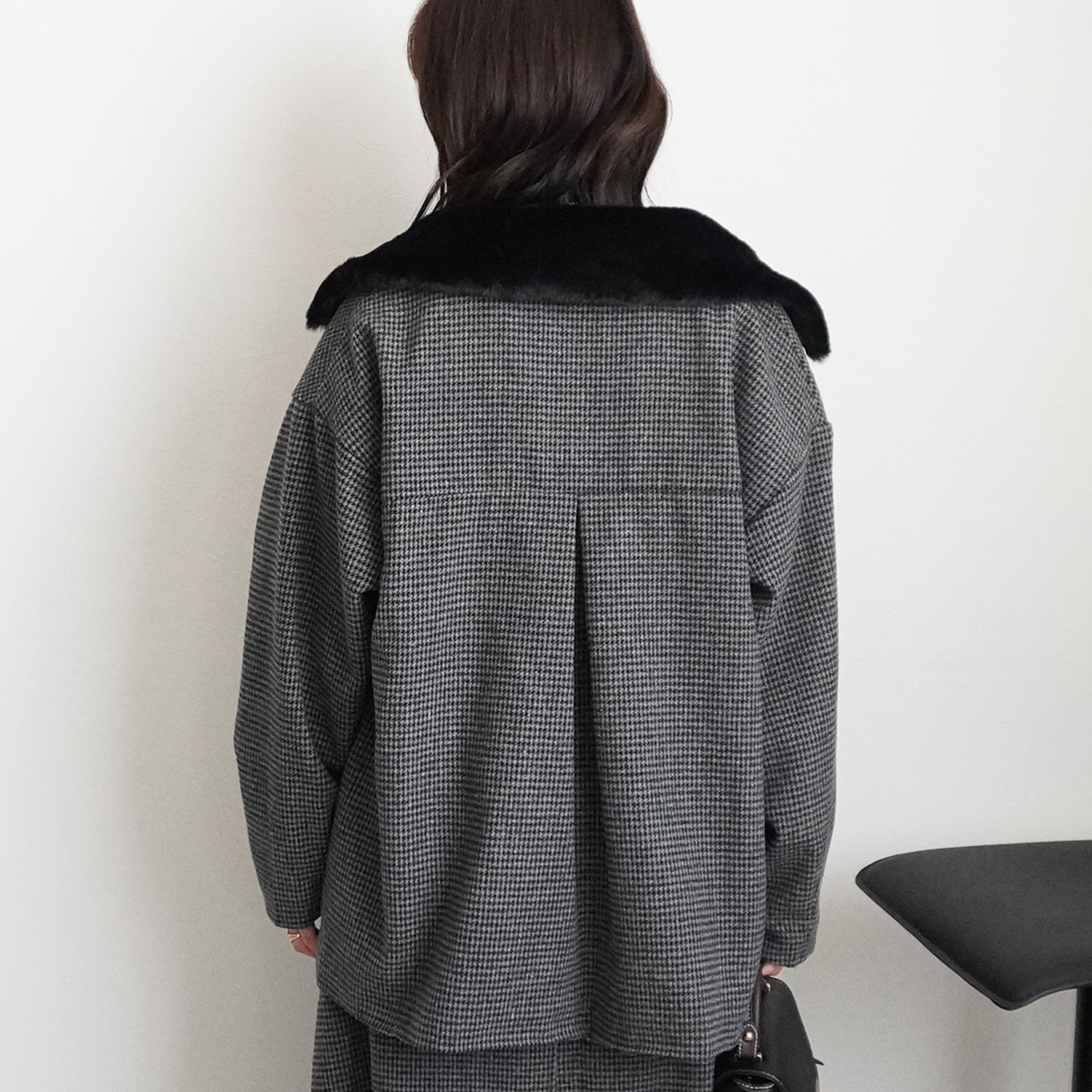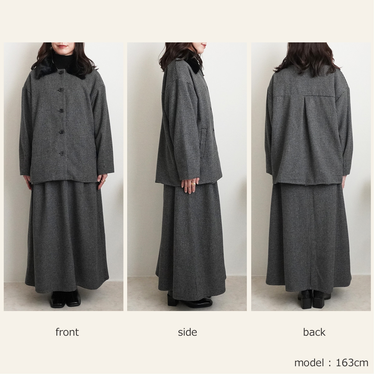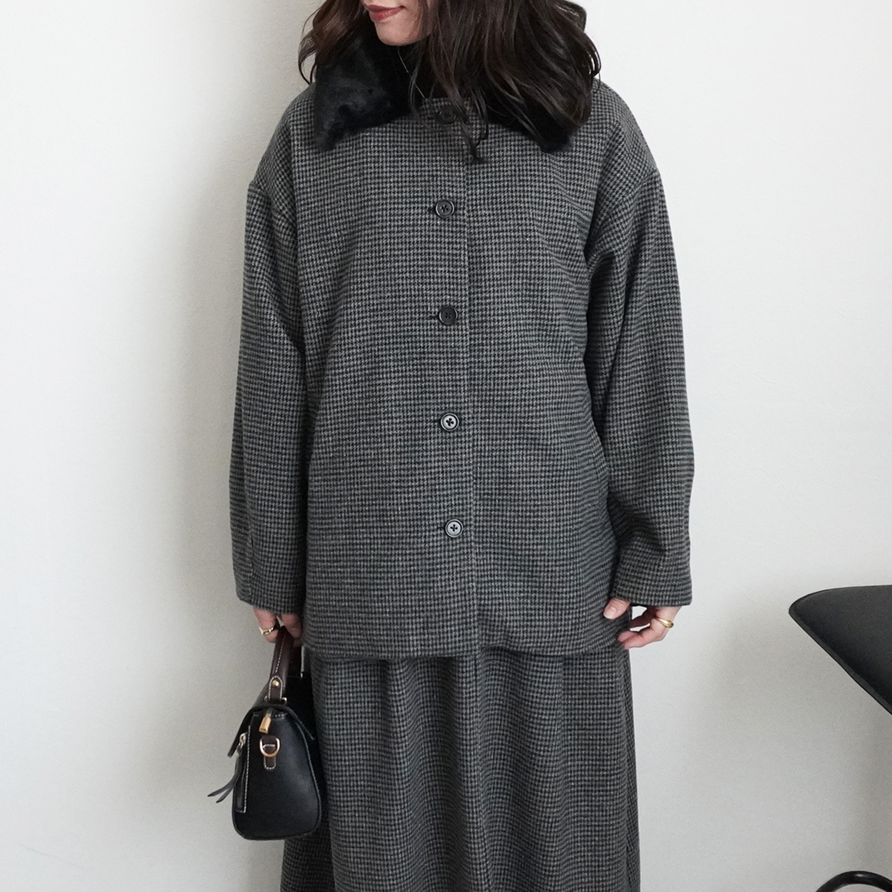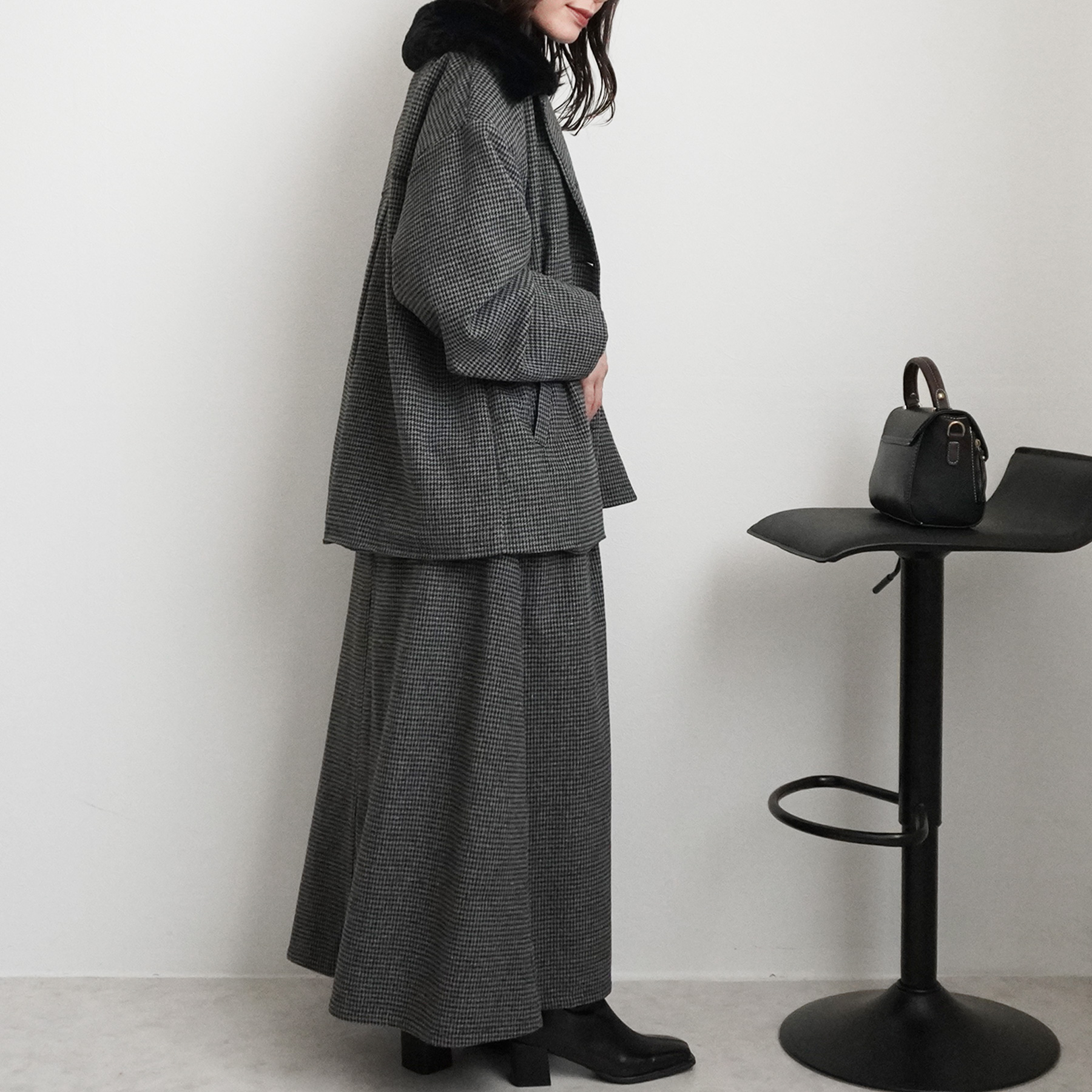 上品さと軽やかさを兼ね備えた、大人のための千鳥格子柄のライトメルトンジャケット。