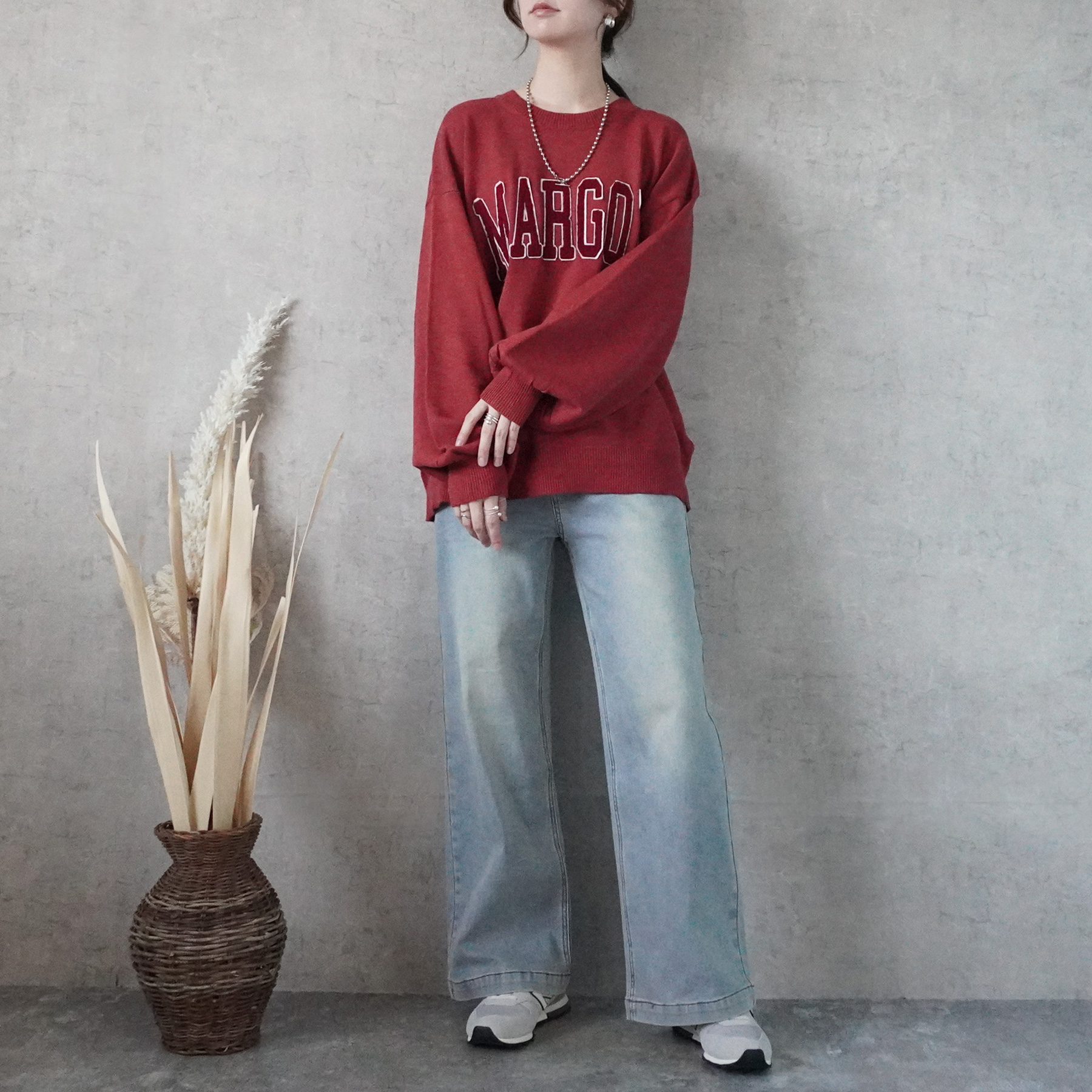 裏起毛と程よいワイドシルエットで