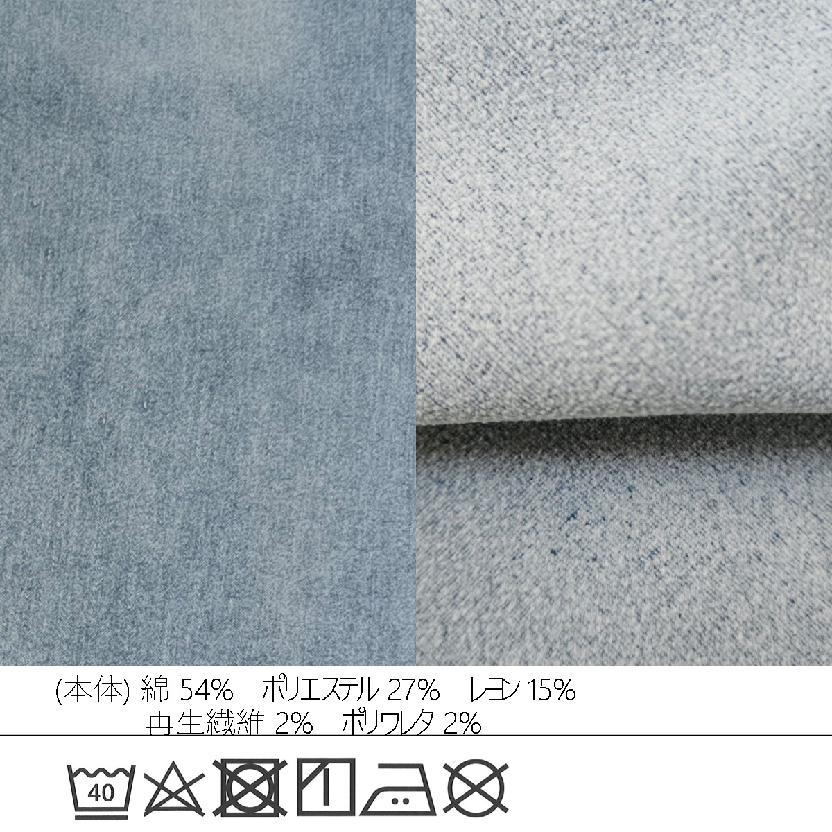 | 素材 | 綿 54% ポリエステル 27% レーヨン 15% 再生繊維 2% ポリウレタン 2% |