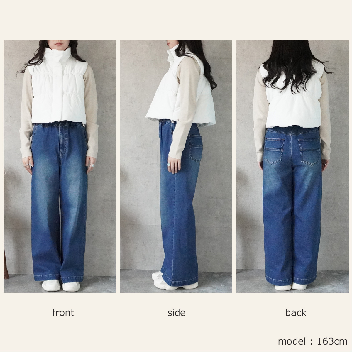 | サイズ | サイズ(単位:約cm) 【S/M/L/LL】 総丈【98/99/101/102】 ウエスト(~最大)【62~72/66~76/70~80/74~84】 ヒップ【95/99/103/107】 前股上【31/32/33/34】 後股上【41/42/43/44】 渡り幅【31/32/33/34】 股下丈【70/70/71/71】 裾幅【28.5/29.5/30.5/31.5】 ベルト幅【4/4/4/4】 ファスナー【16/16/17/17】 サイズ感: ゆるい / ●ほどよい / きつい モデル画像【Mサイズ着用/163cm】 |