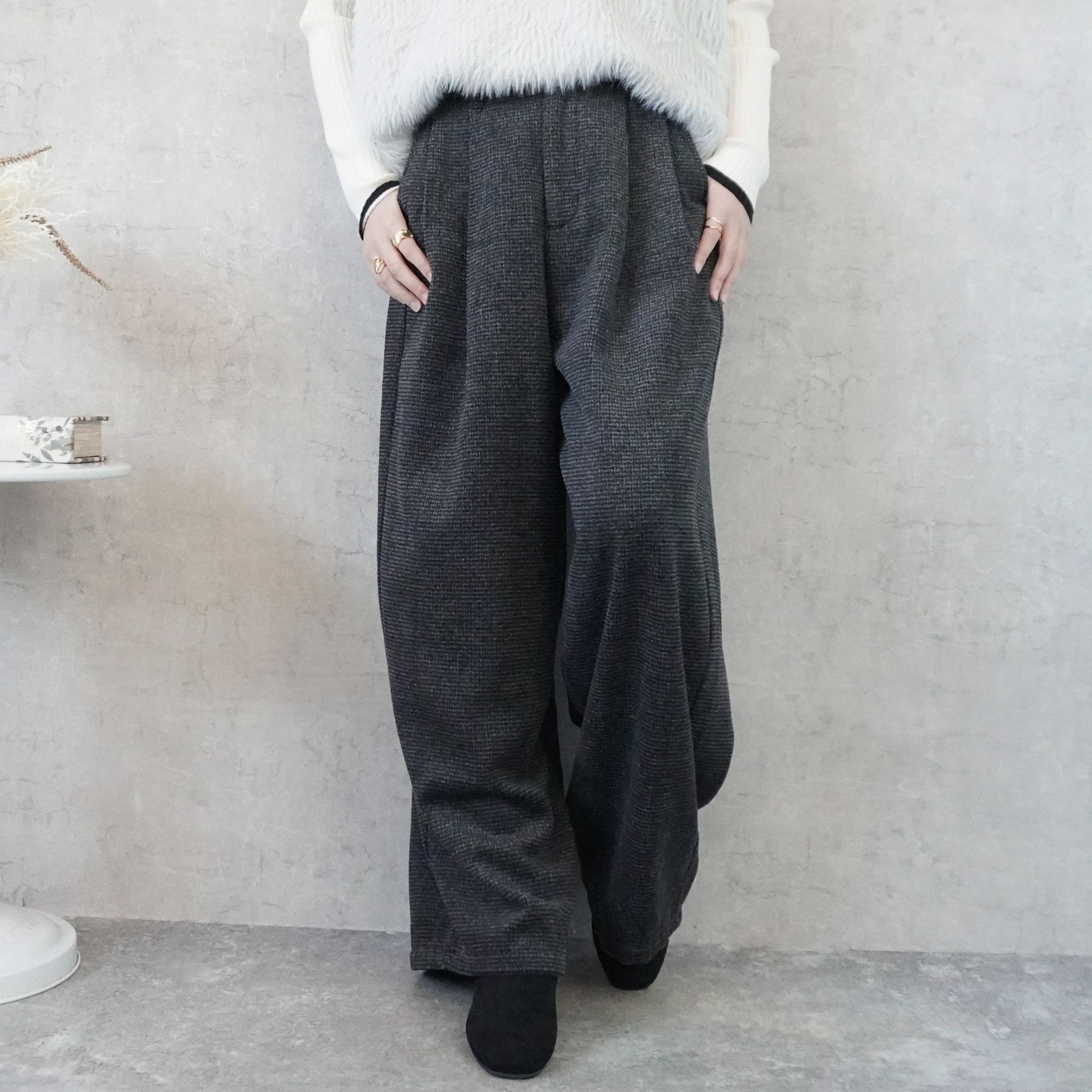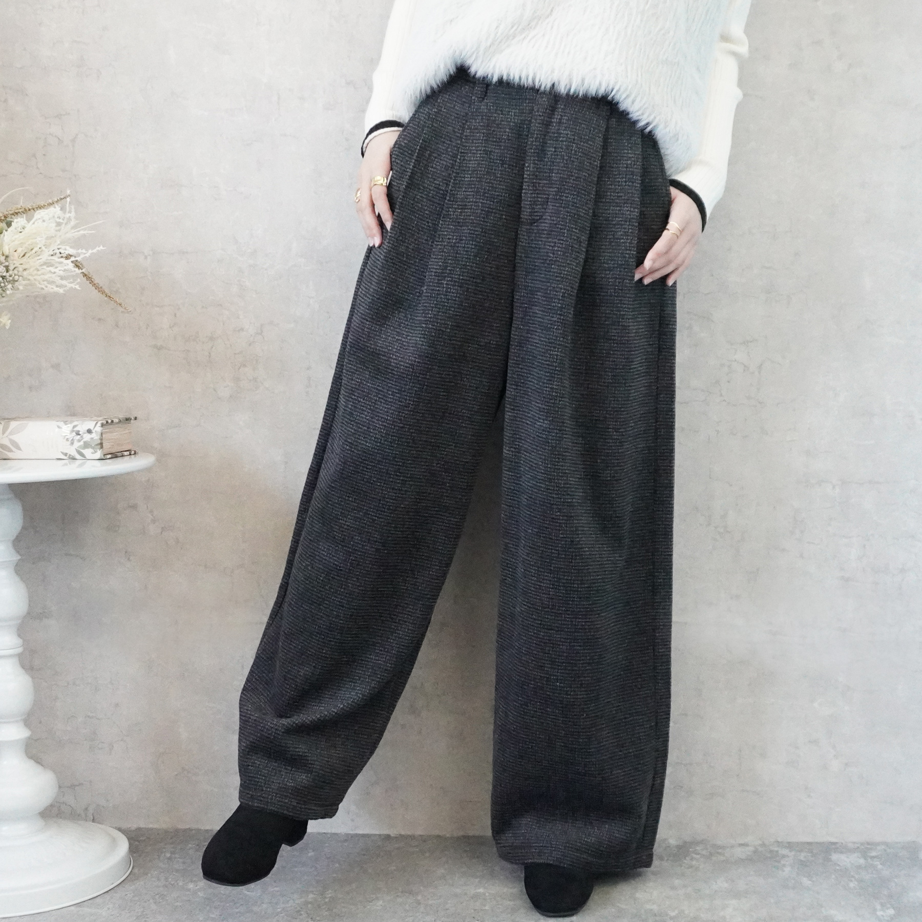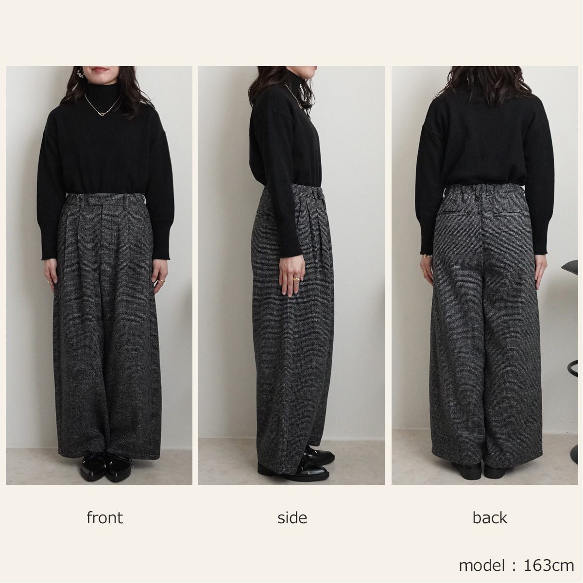 程よい厚みのあるツイード素材で、あたたかく柔らかな穿き心地。