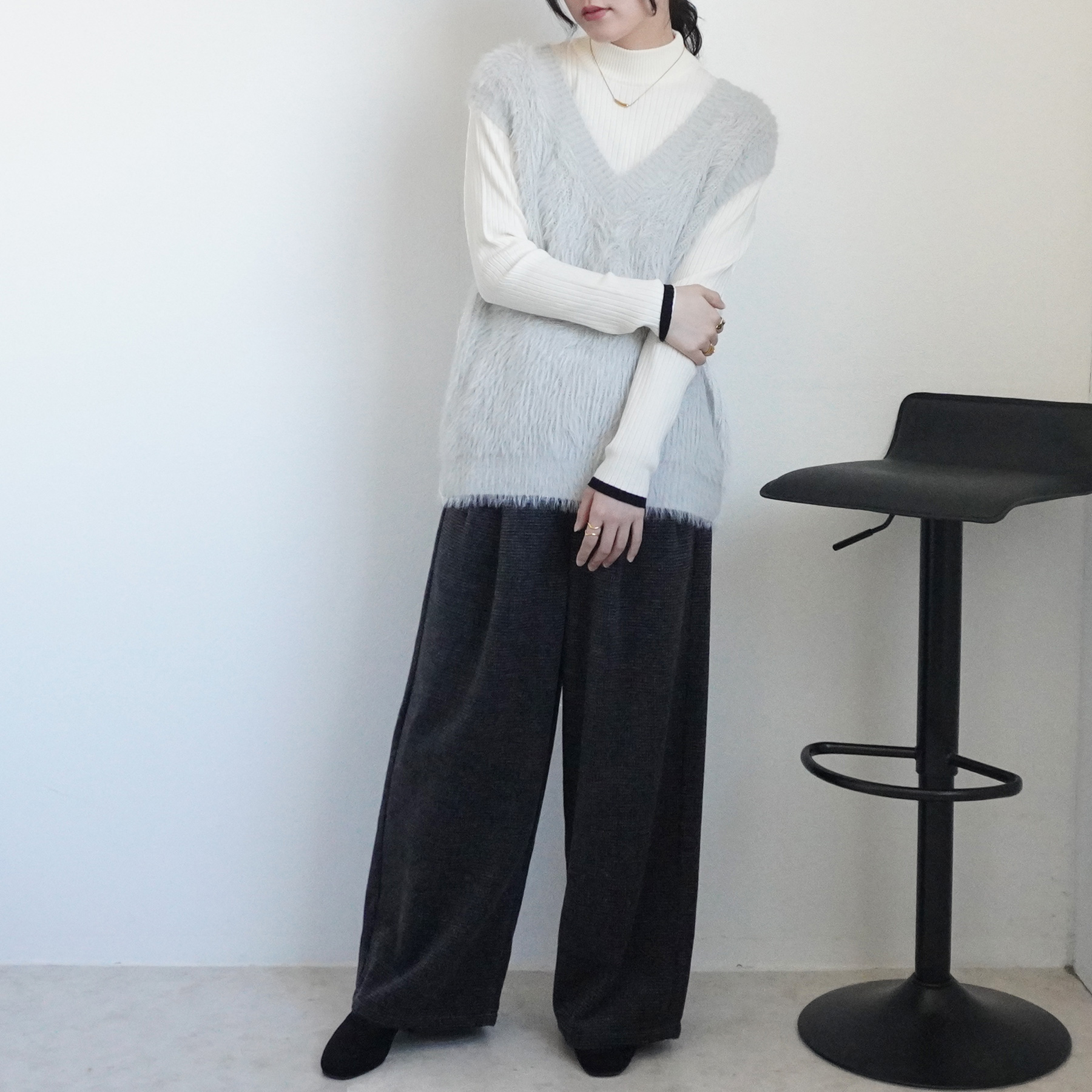 上品なツイード素材で季節感たっぷりに仕上げたワイドパンツ。ファー付きジャケットが新登場です♪