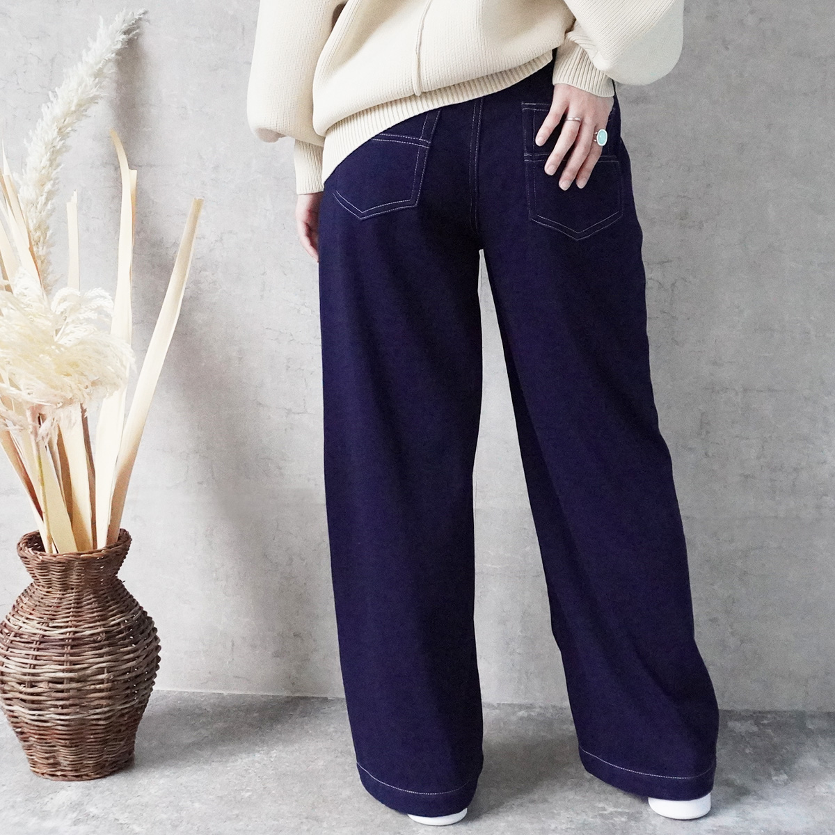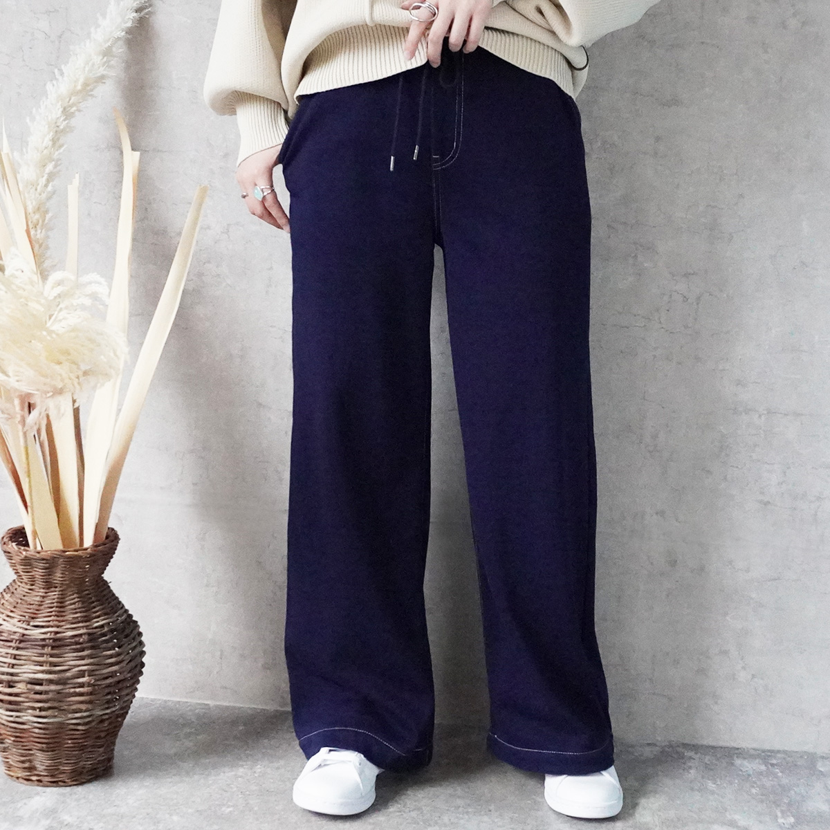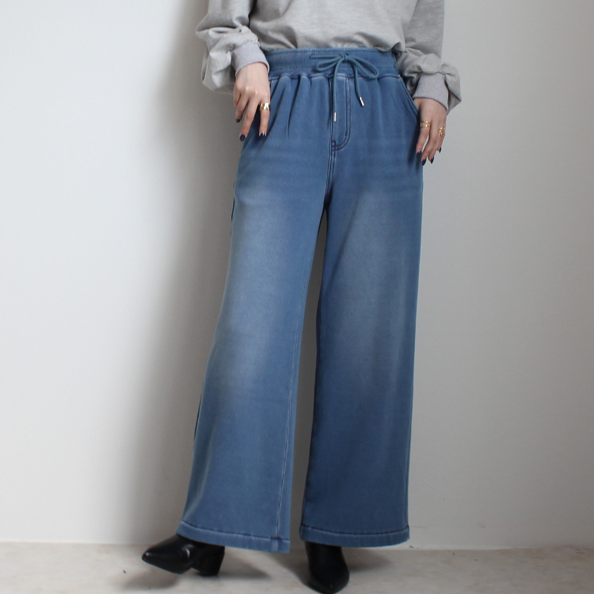 W-6286 裏シャギーニットデニムワイドパンツ