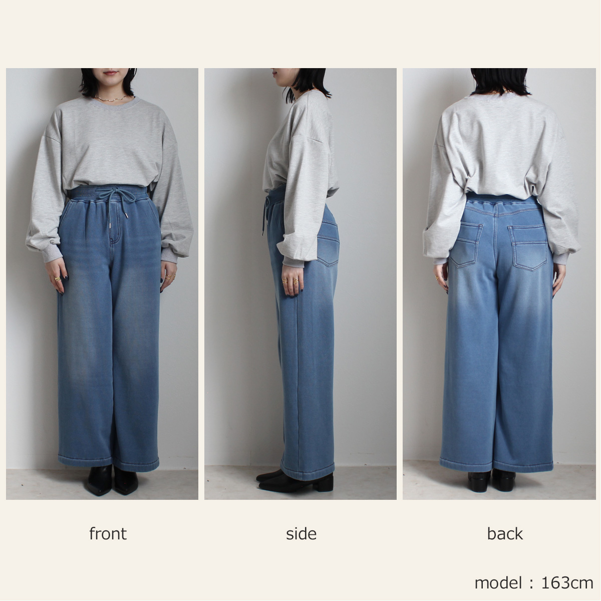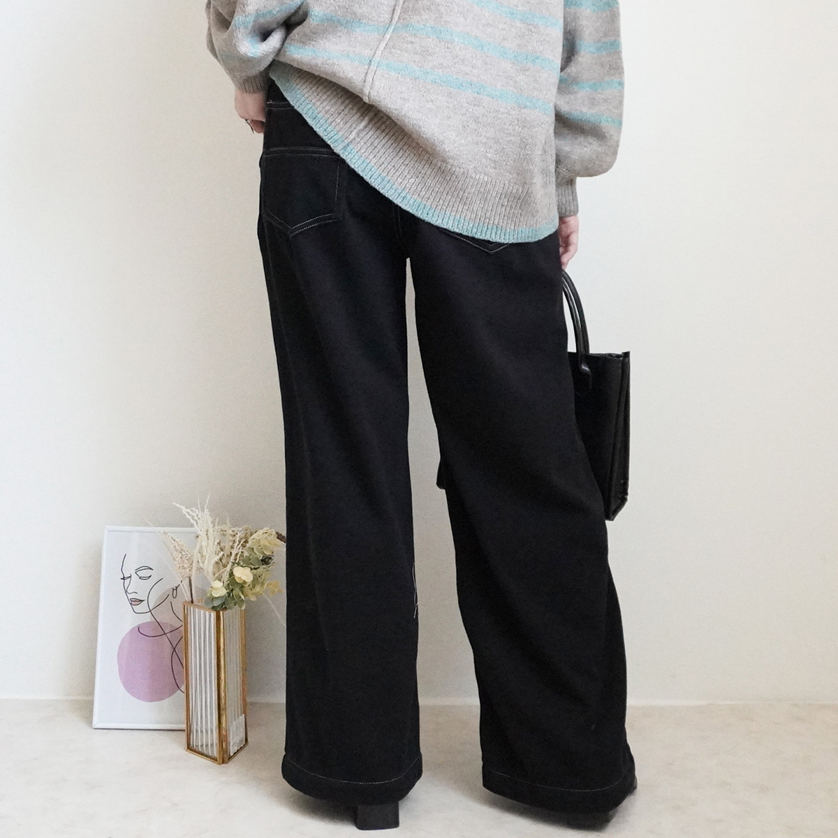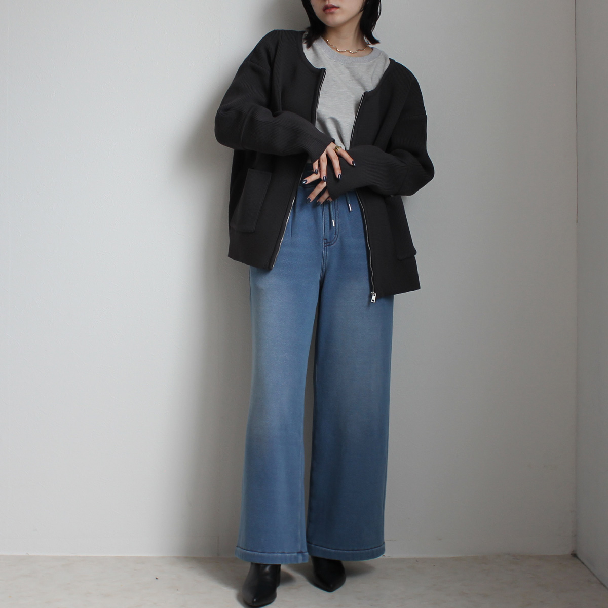 W-6286 裏シャギーニットデニムワイドパンツ