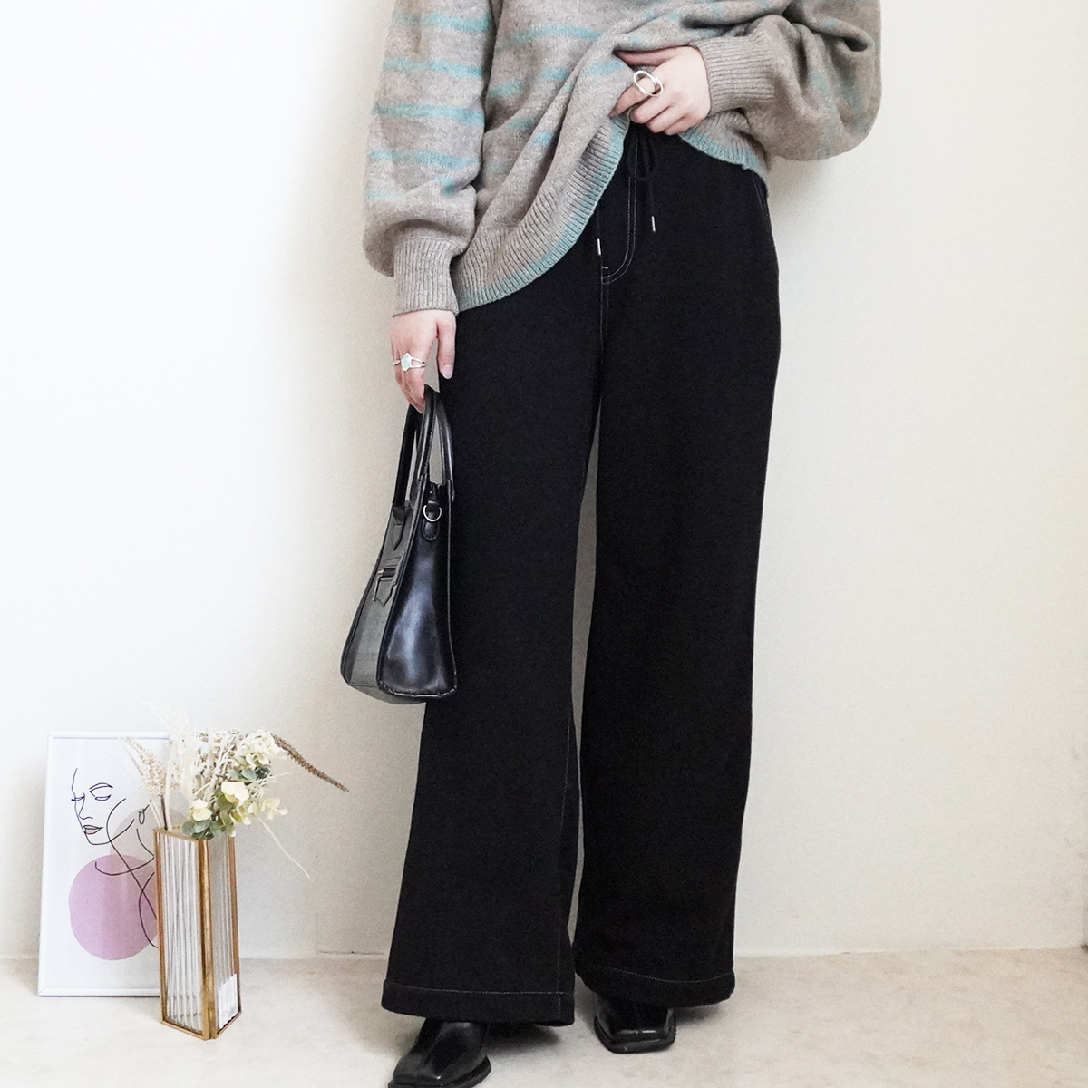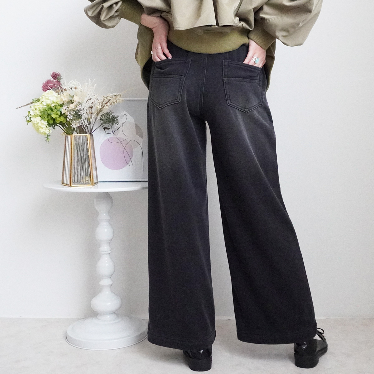 程良い厚みの裏シャギーで着太りナシ。 あったかワイドパンツが登場!
