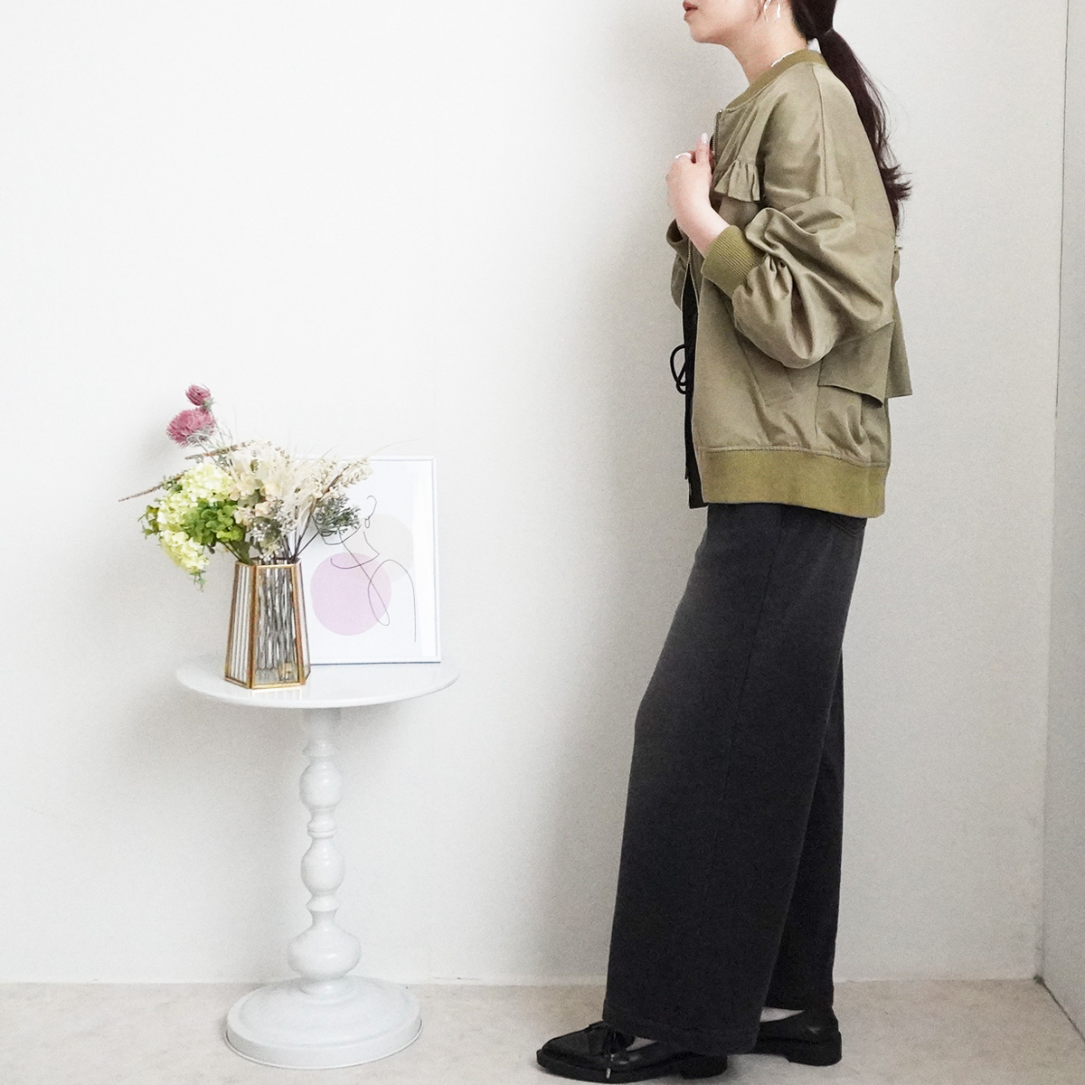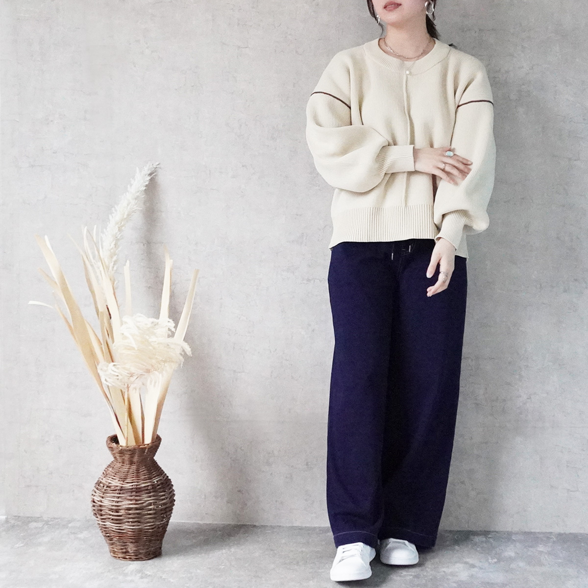 下半身のラインを拾わない定番ワイドシルエットで