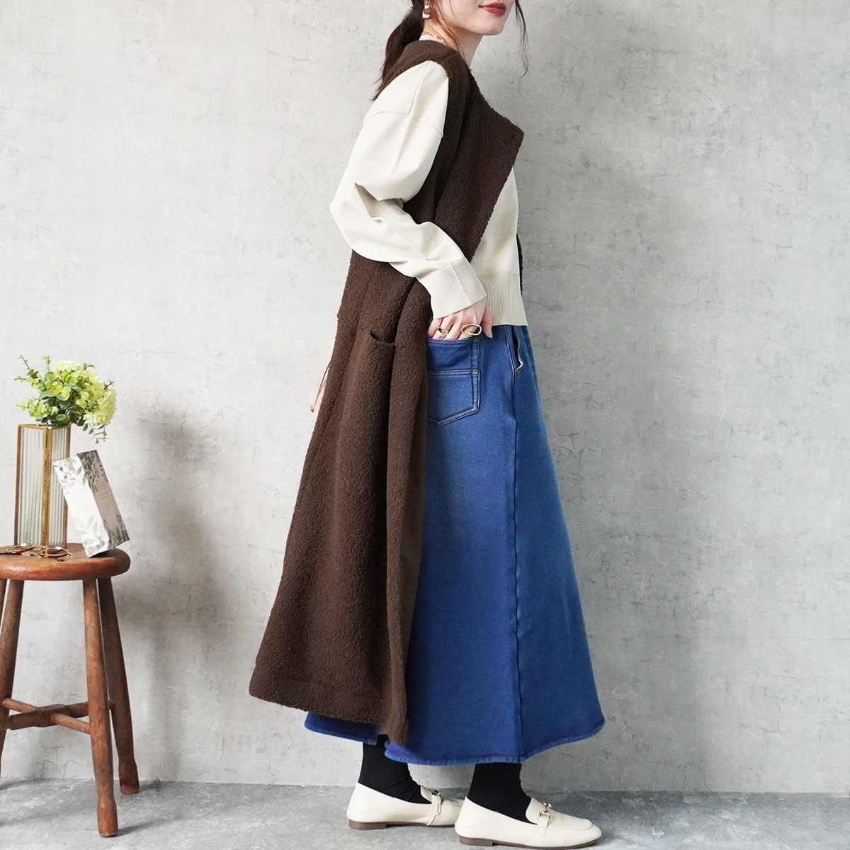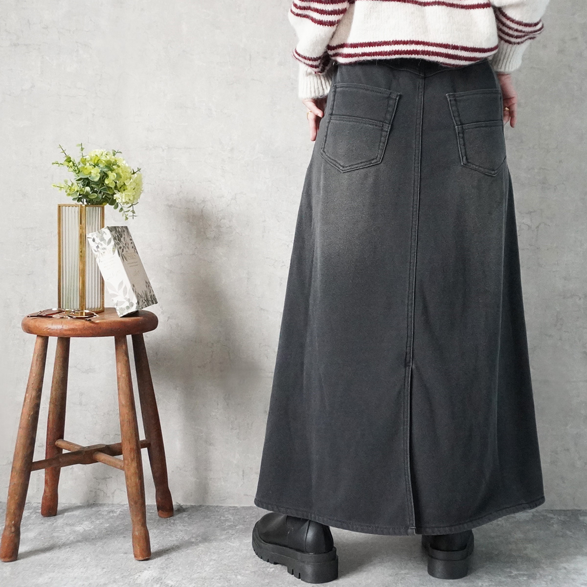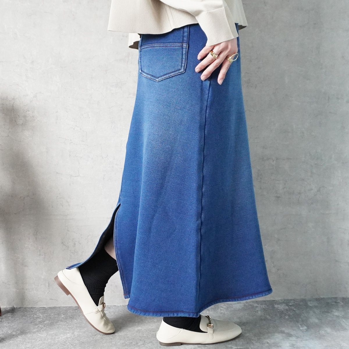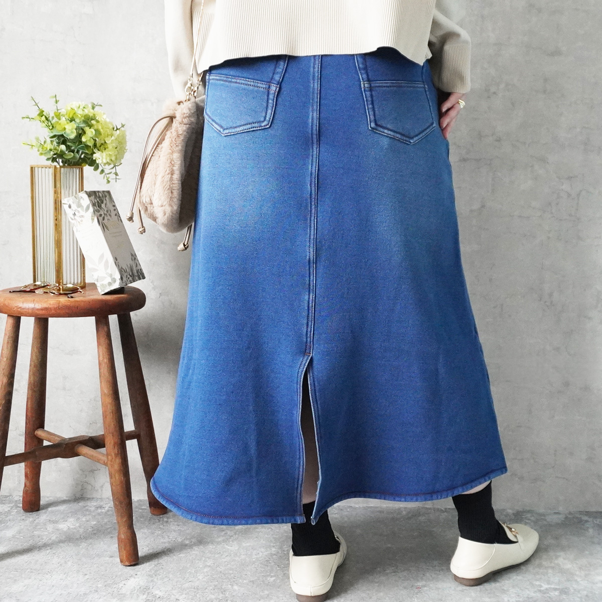 寒い季節に嬉しい、あったか素材の裏シャギーデニムスカート。