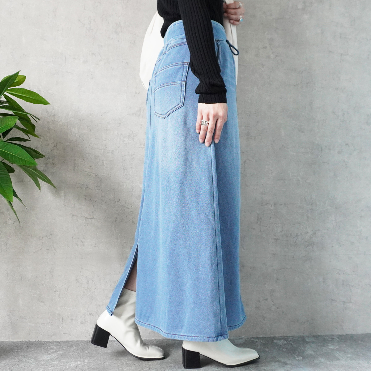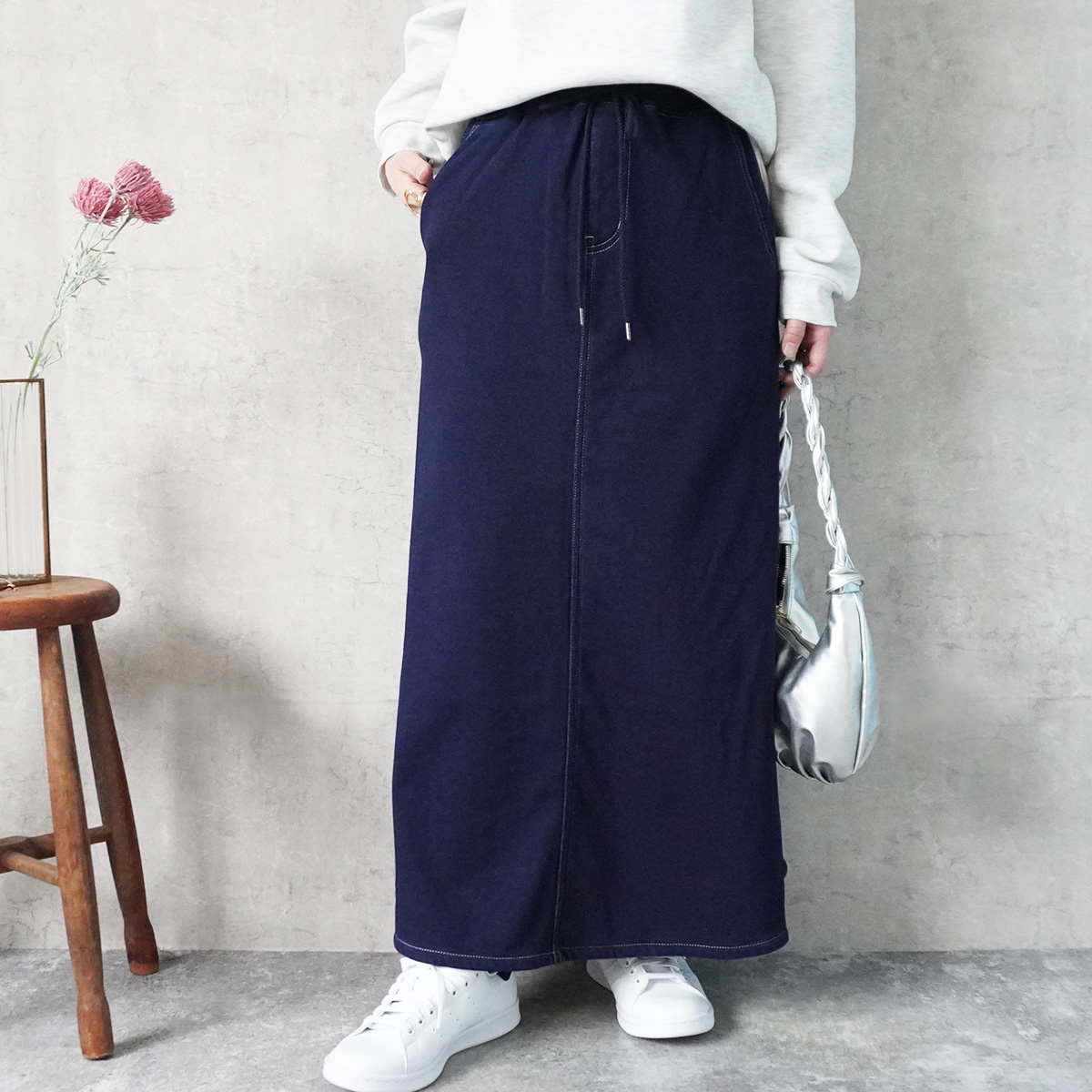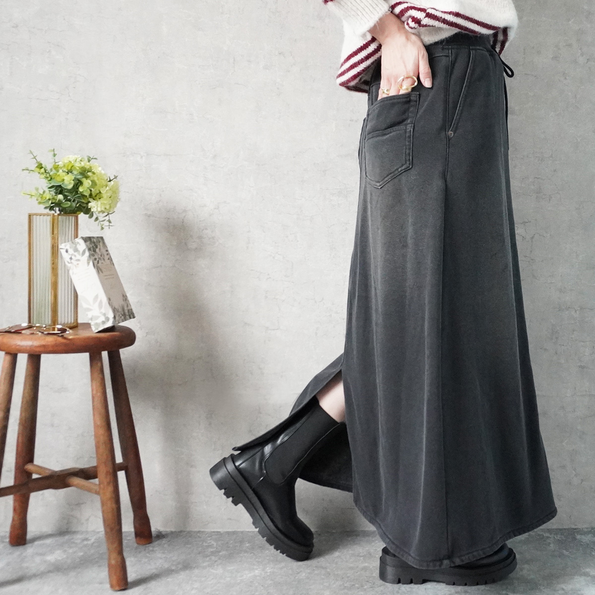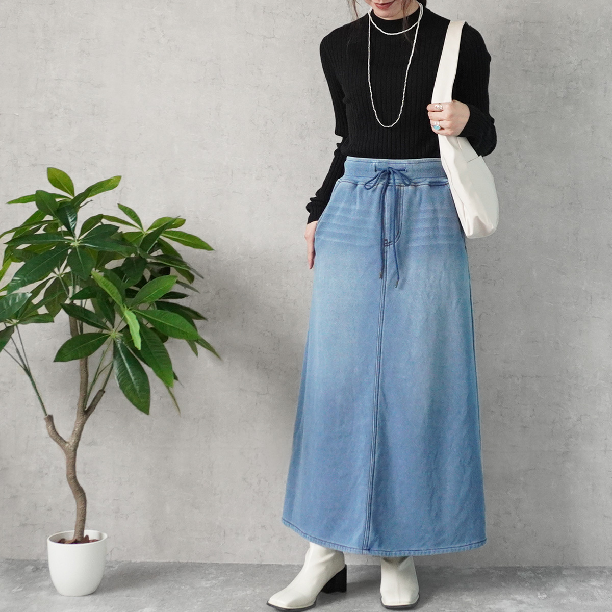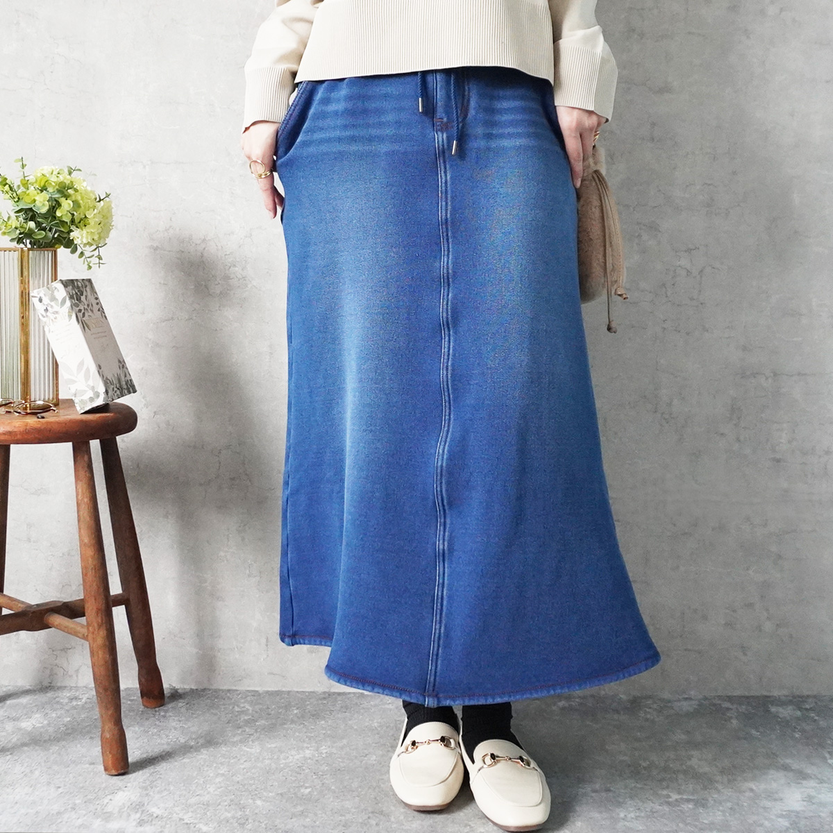 寒い季節に嬉しい、あったか素材の裏シャギーデニムスカート。