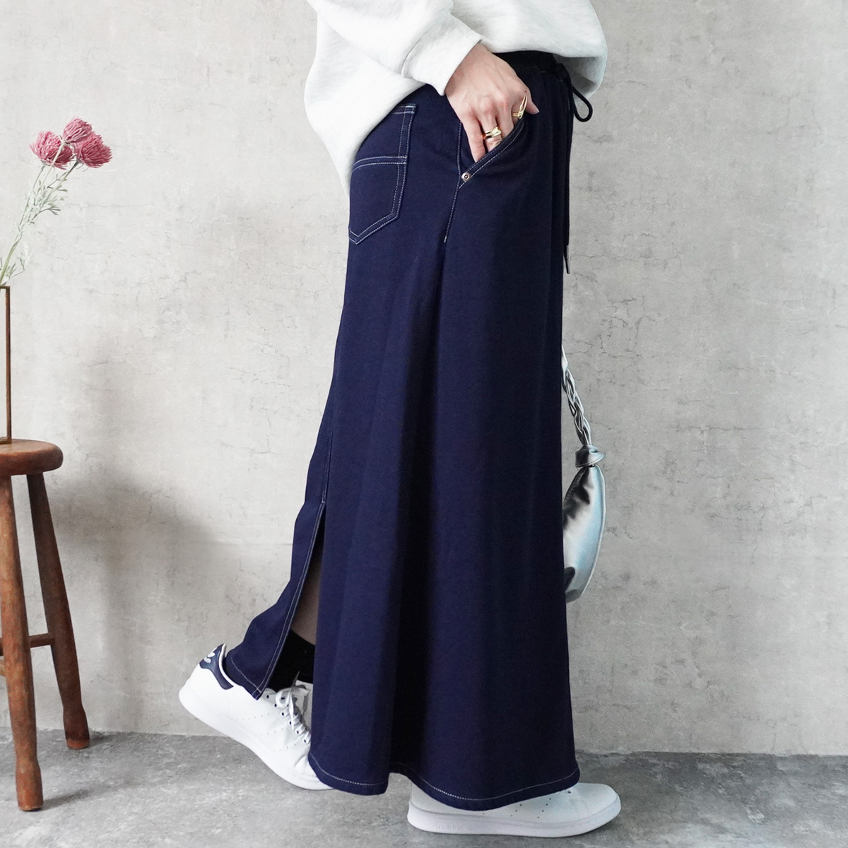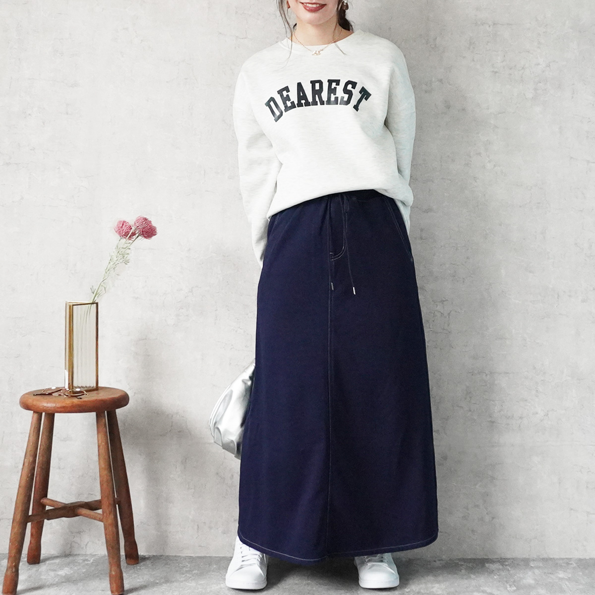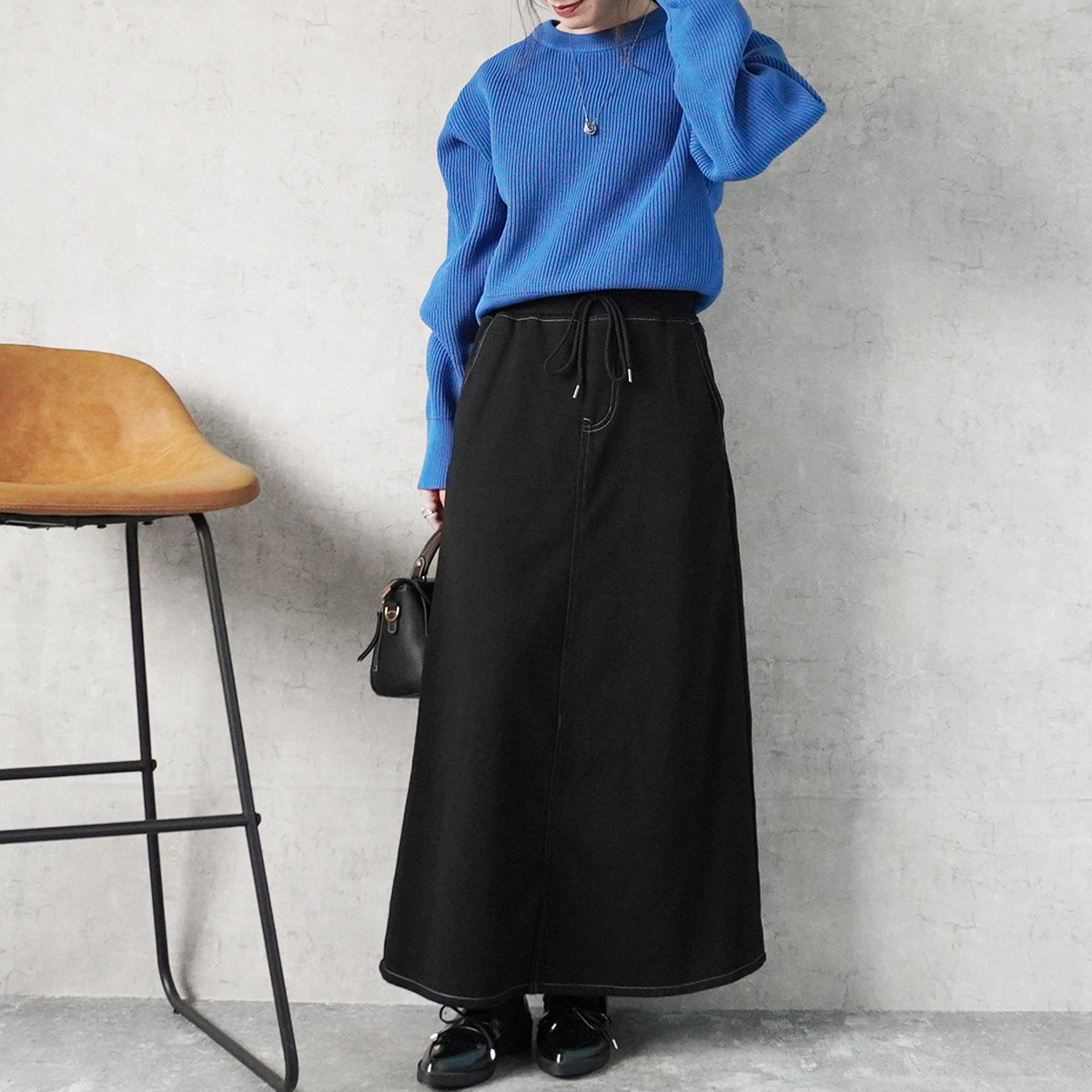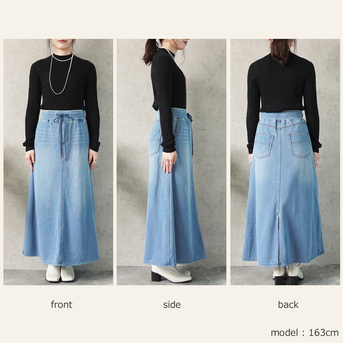 寒い季節に嬉しい、あったか素材の裏シャギーデニムスカート。