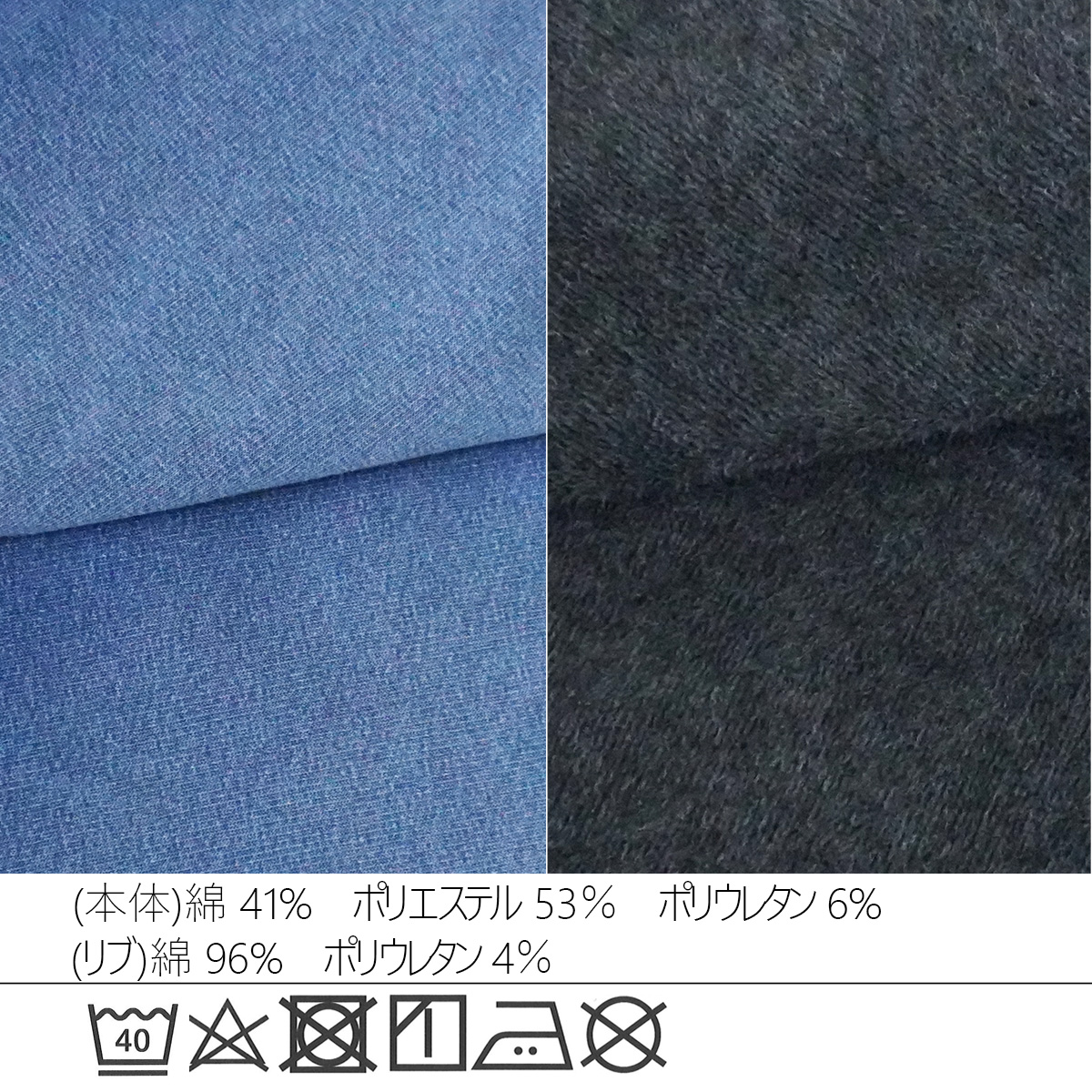 | 素材 | (本体) 綿 41% ポリエステル 53% ポリウレタン 6% (リブ部分) 綿96% ポリウレタン 4% |