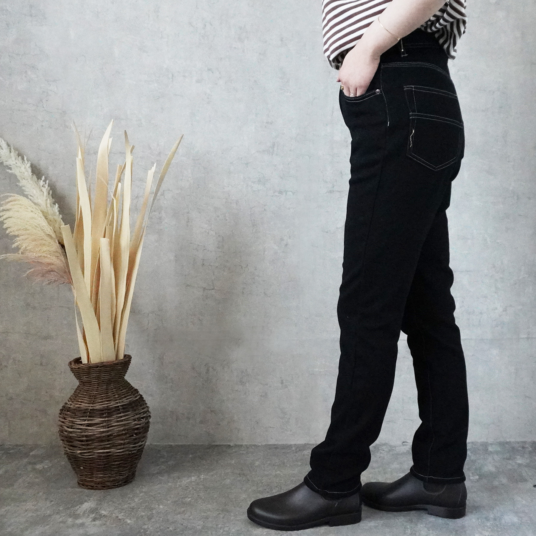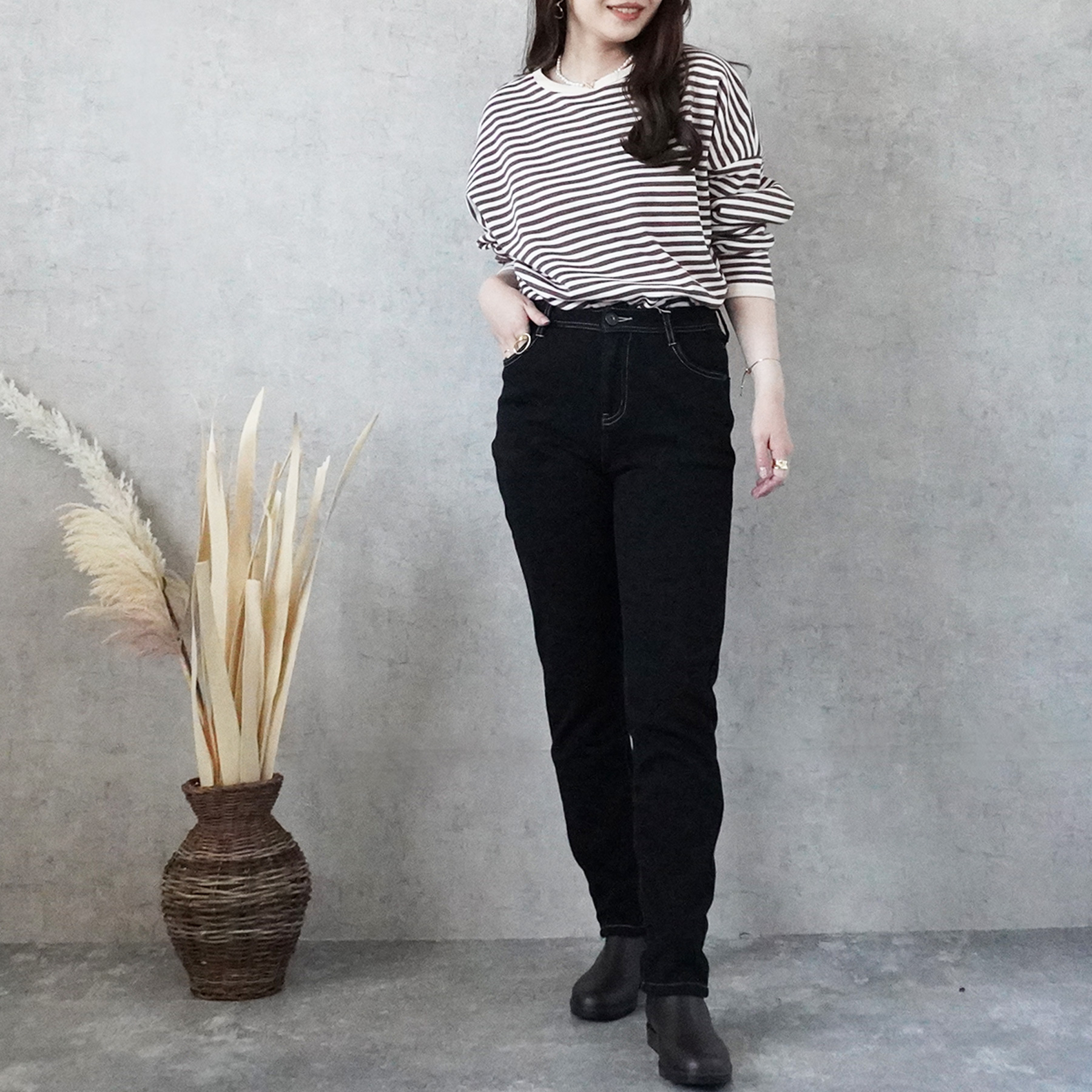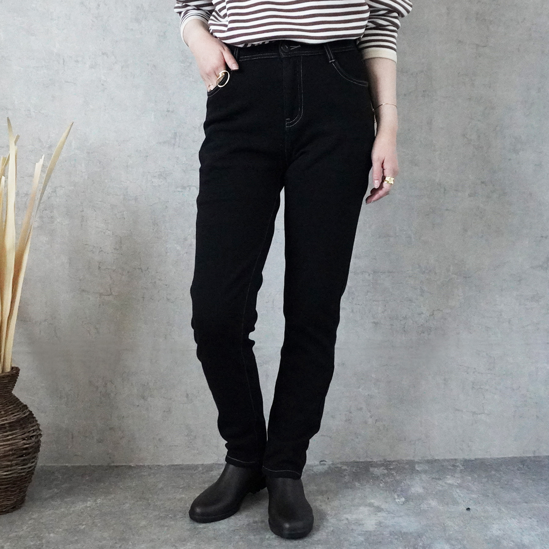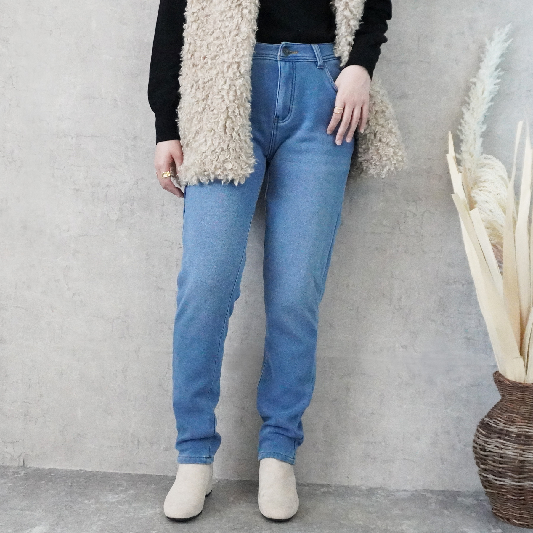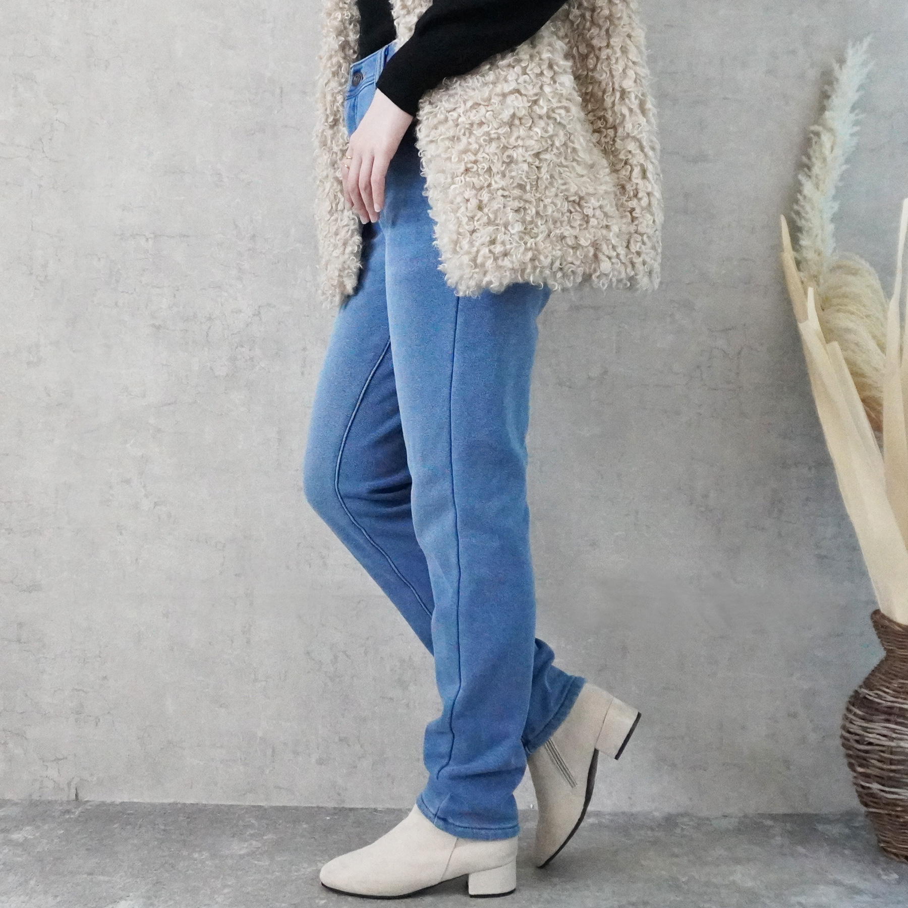 W-6505-73 発熱裏シャギーニットデニムスキニーパンツ(股下73㎝)