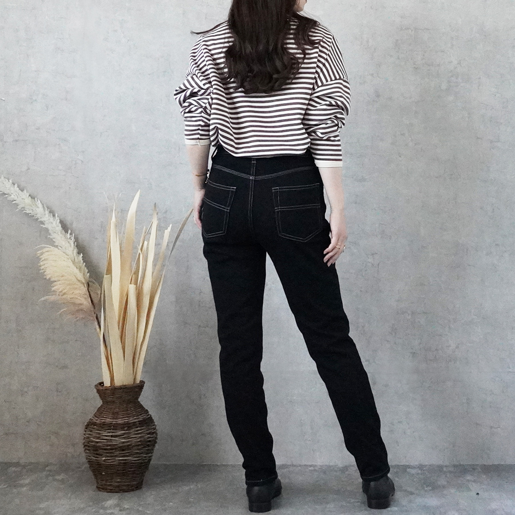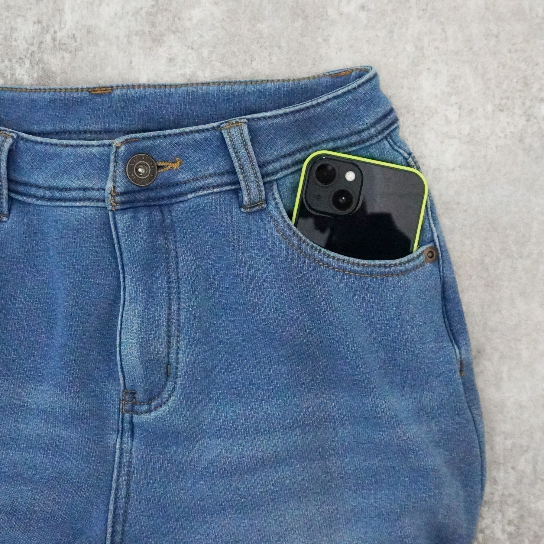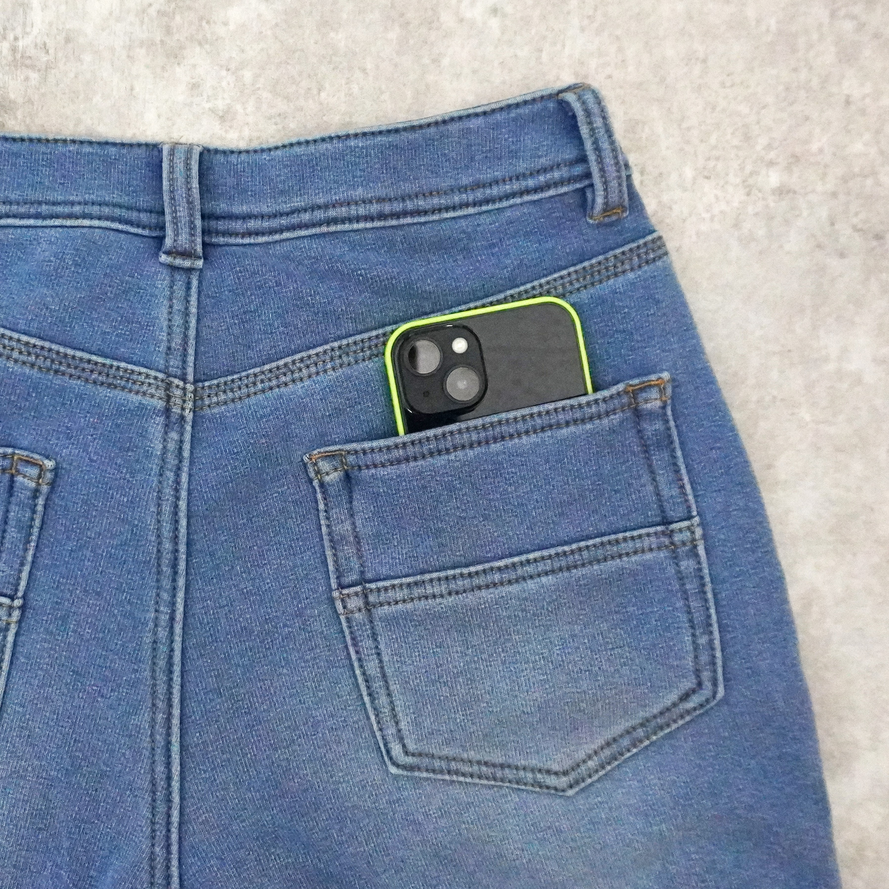 ストレッチ性の高いニットデニム素材で、ストレスフリーなフィット感。