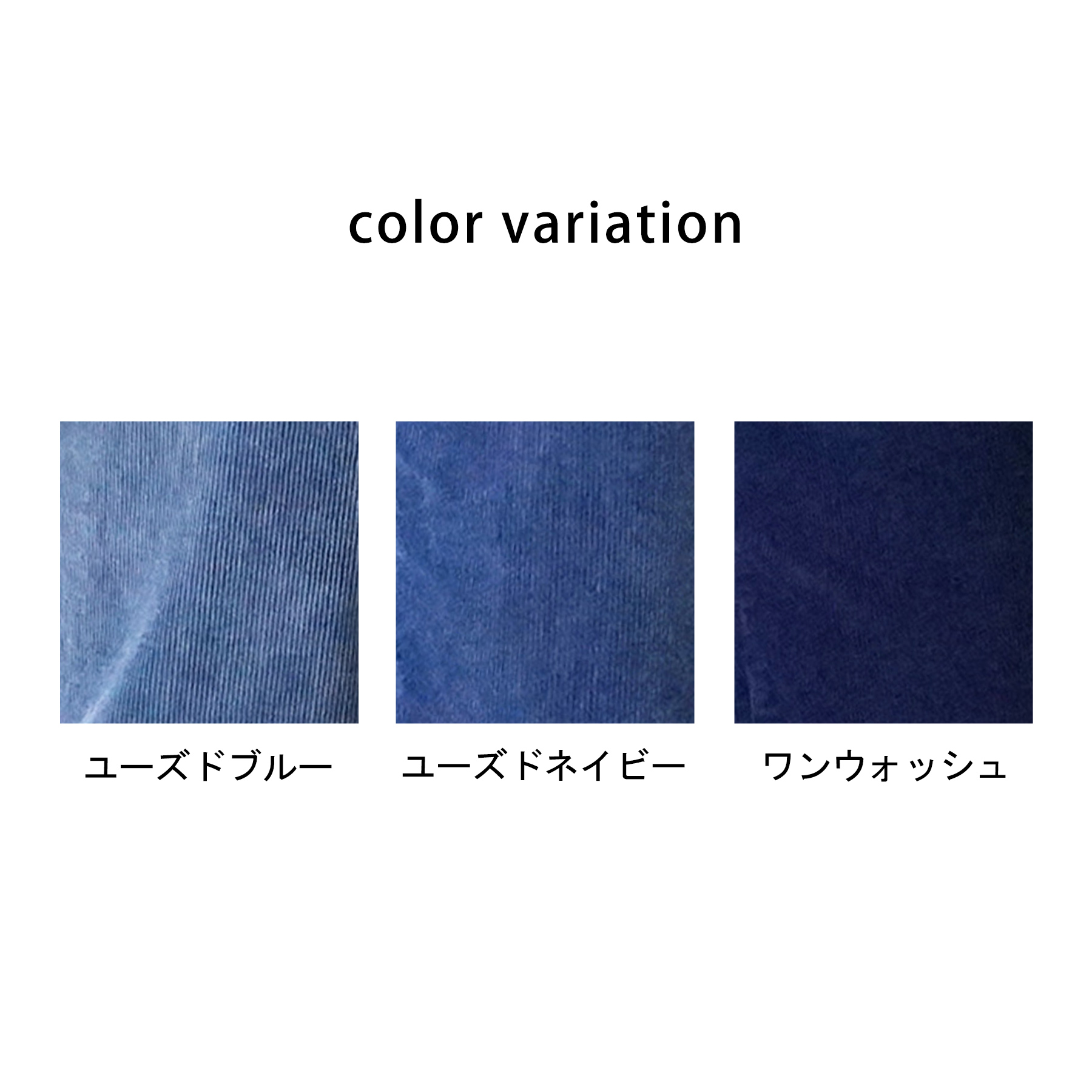 カラーはユーズドブルー、ユーズドネイビー、ワンウォッシュの3色展開です。