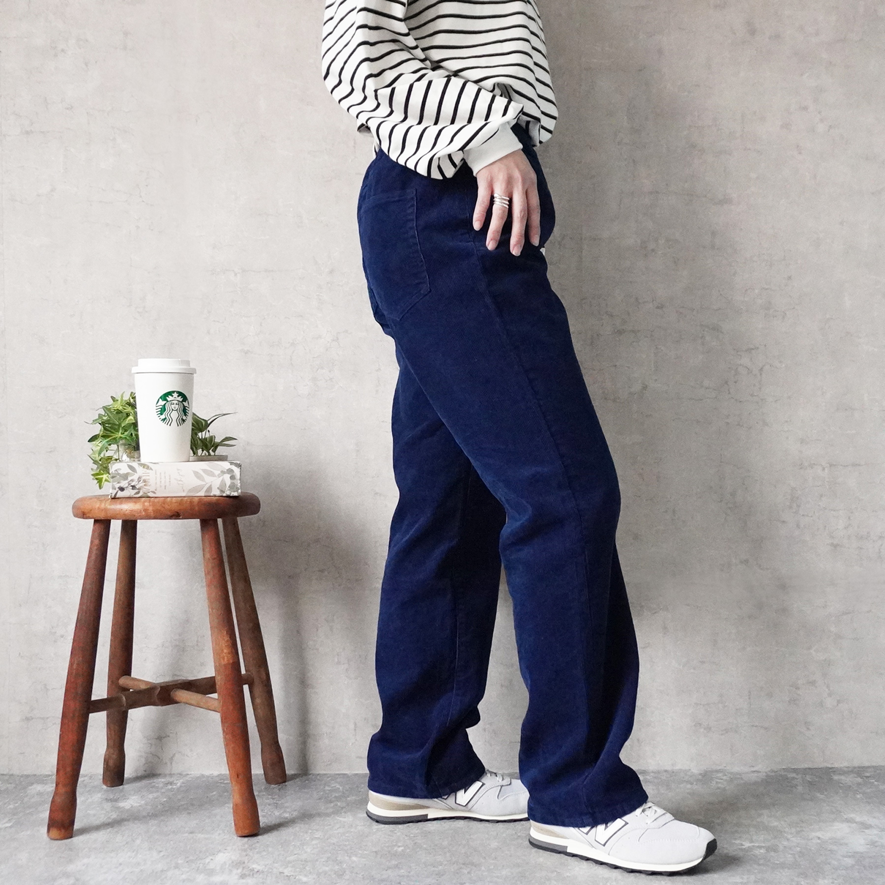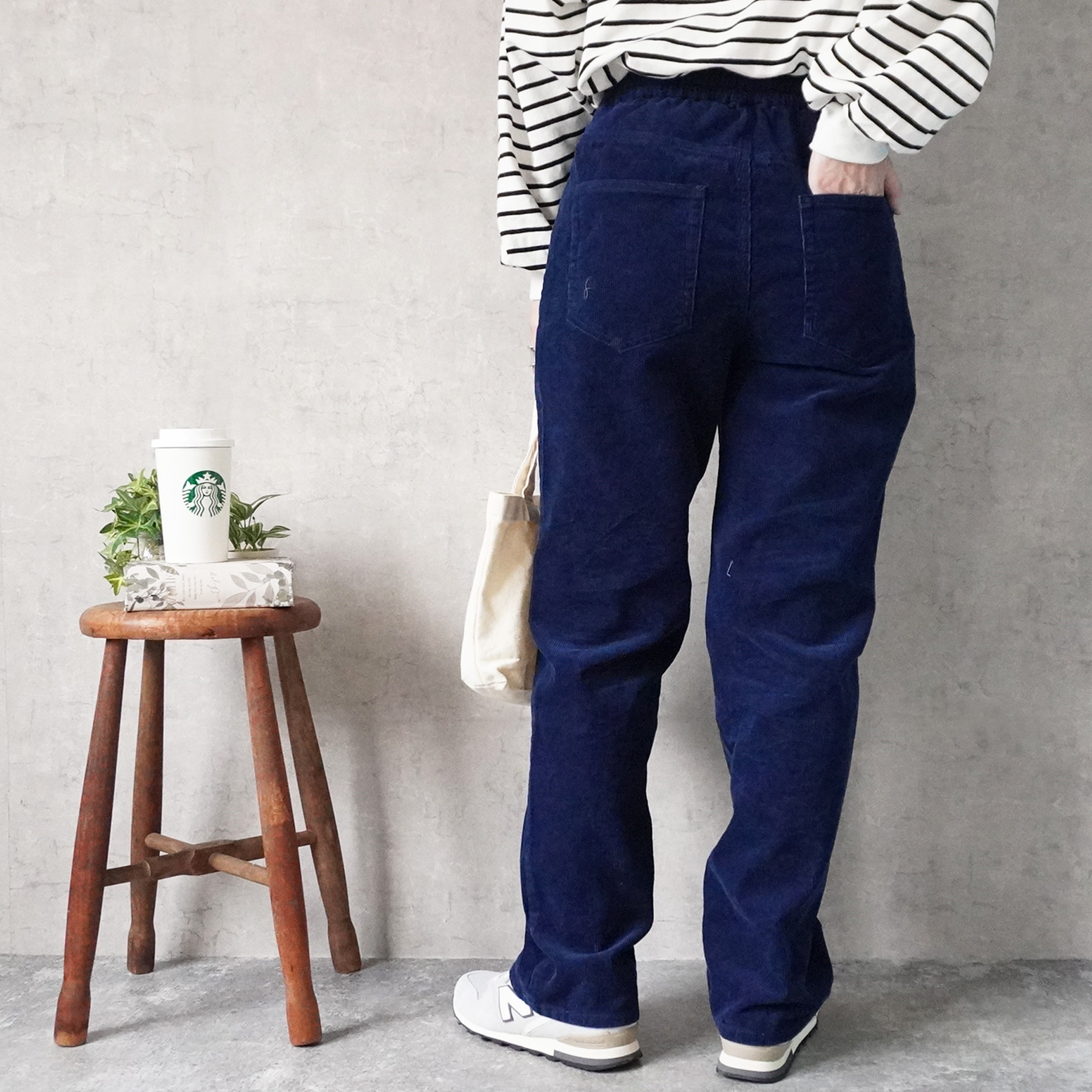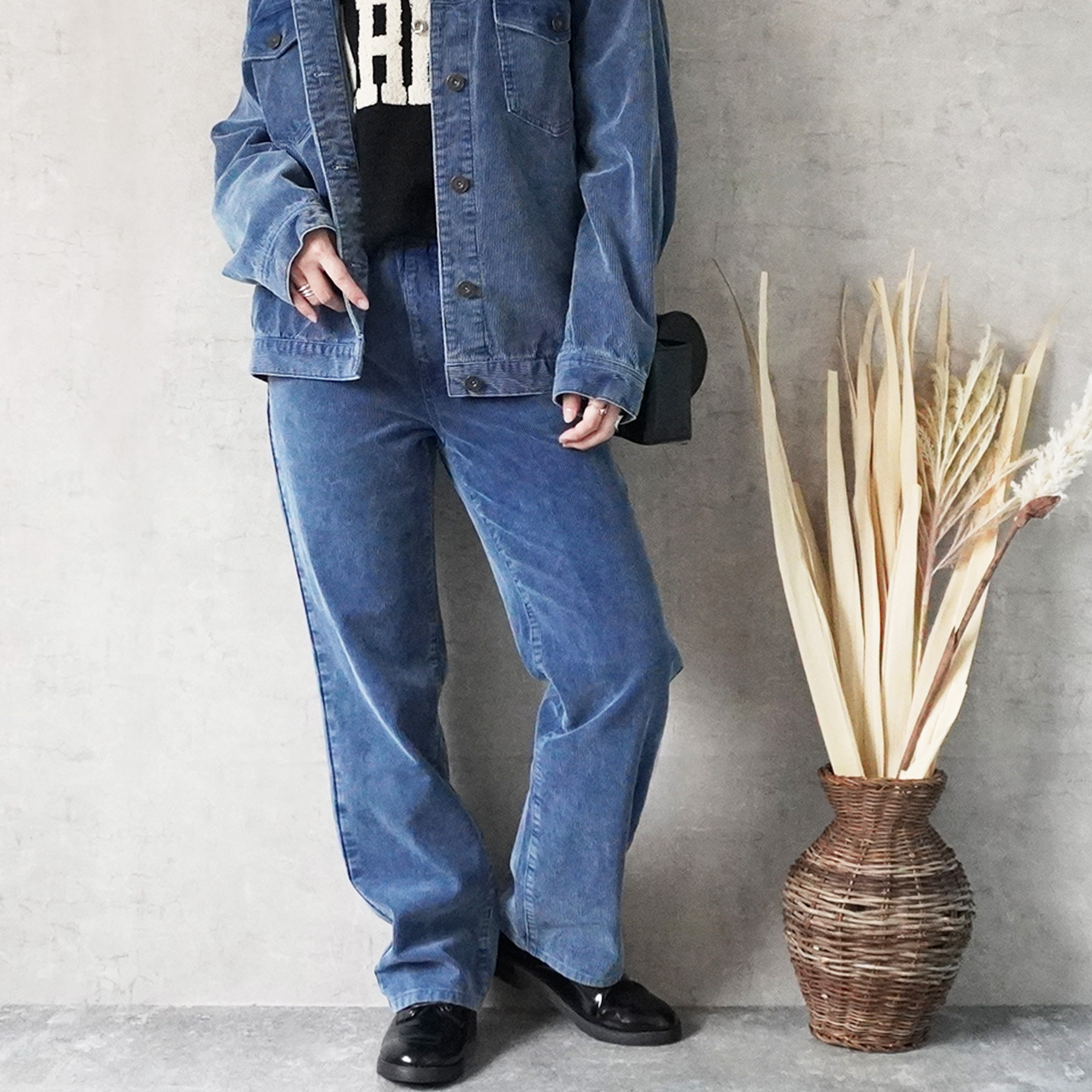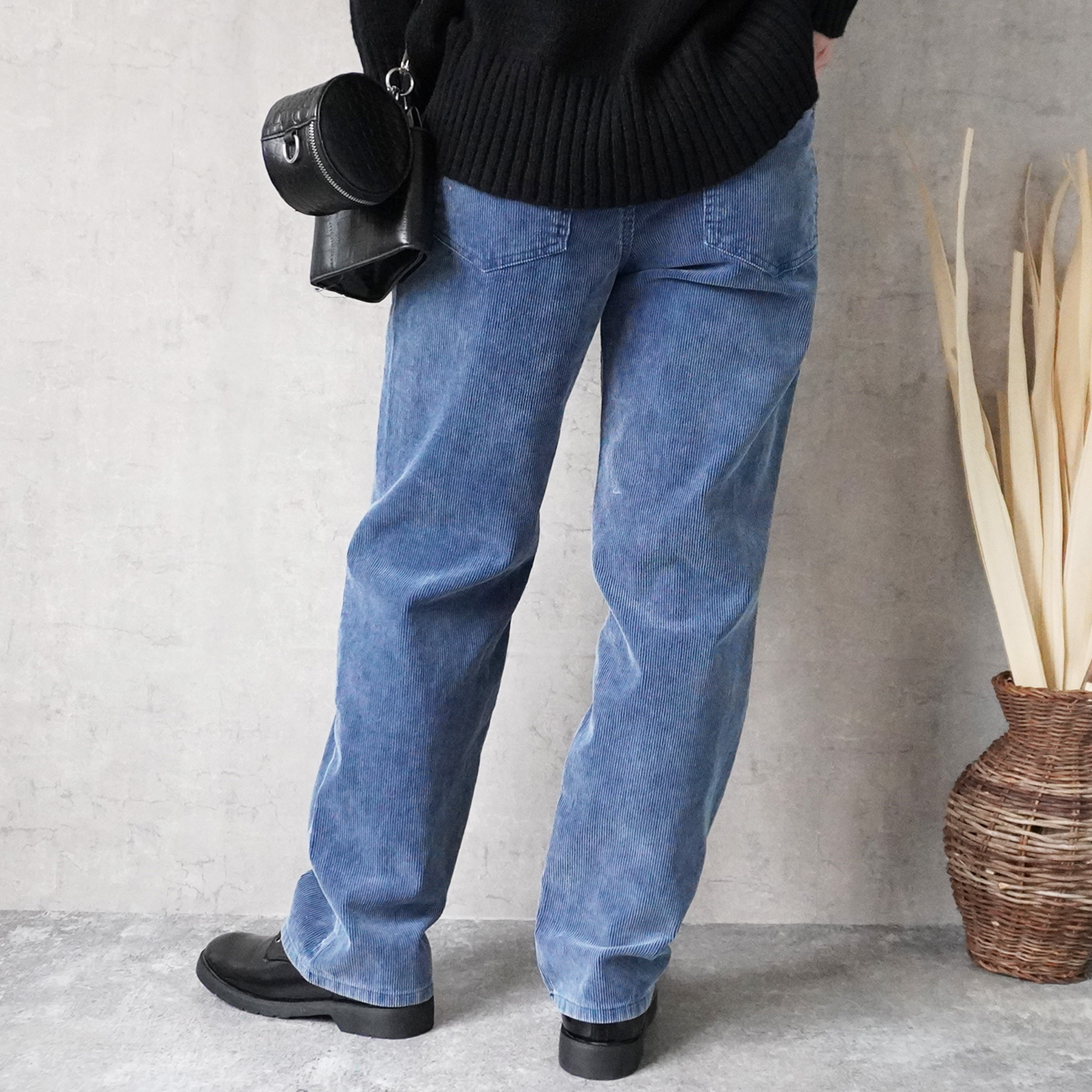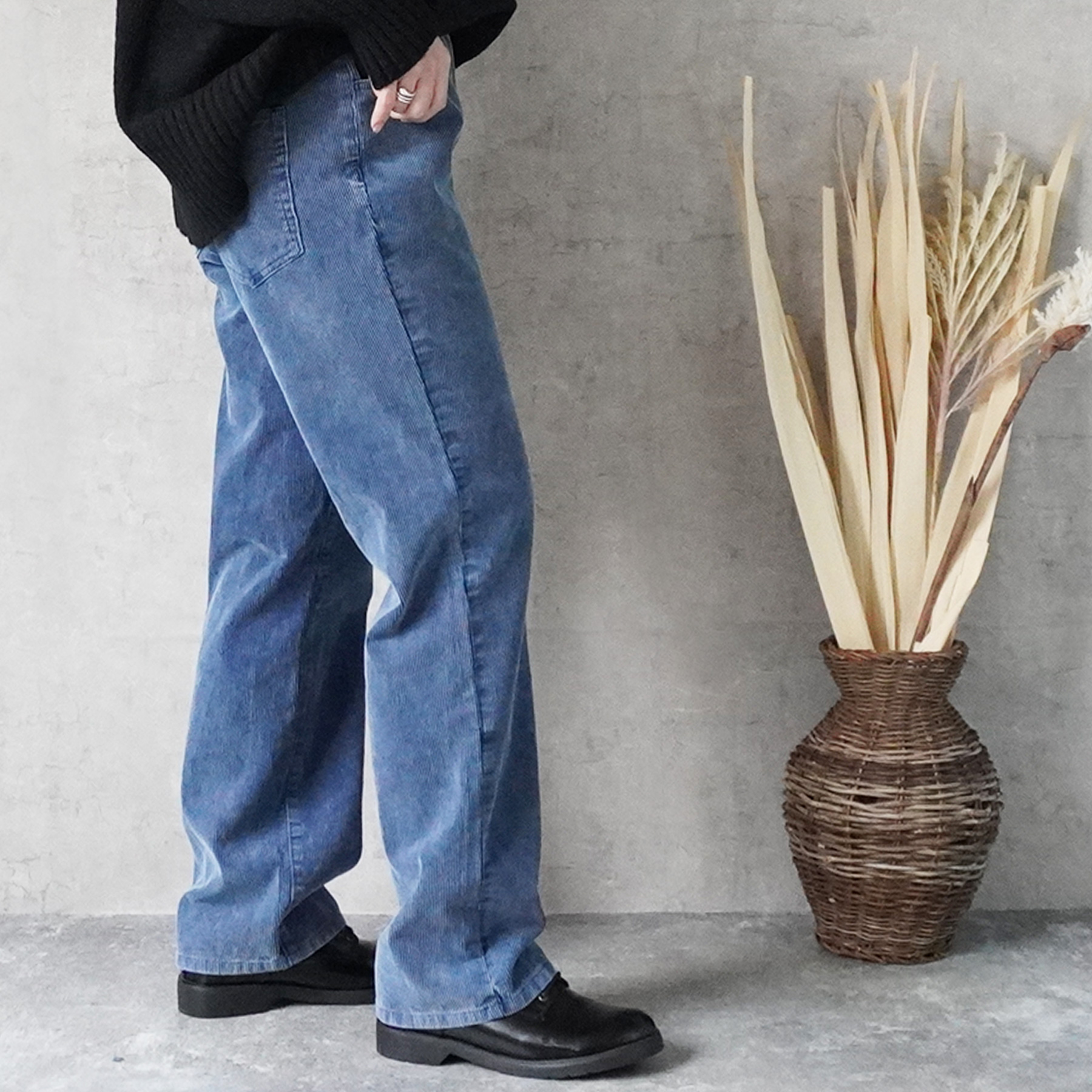 インディゴ染めの深みあるカラーと、コーデュロイの温かみを組み合わせたストレートパンツ。