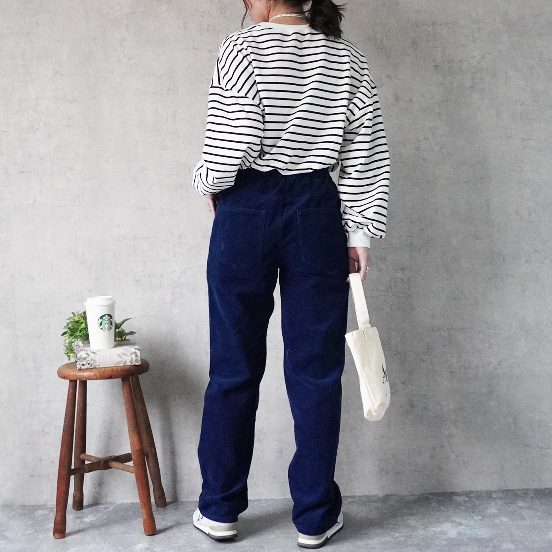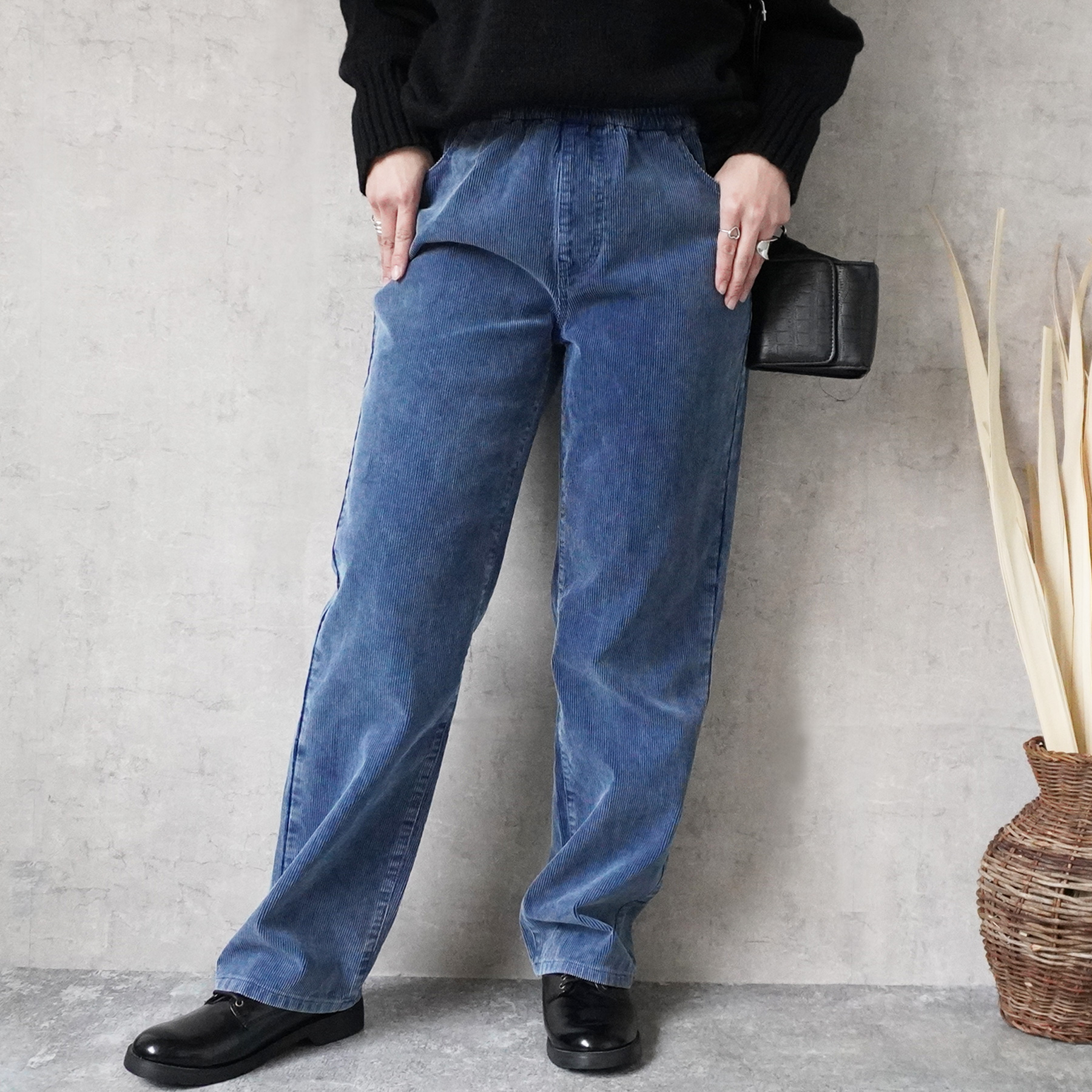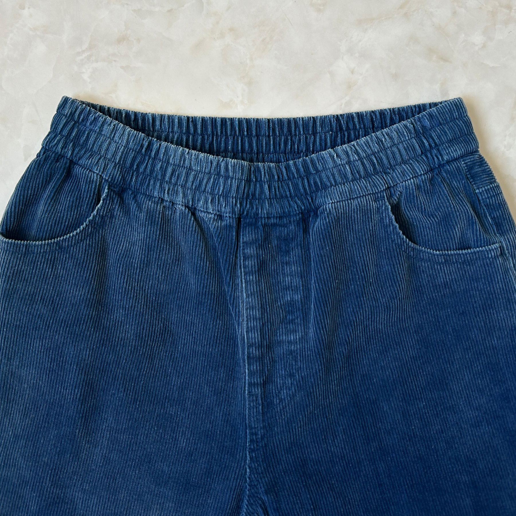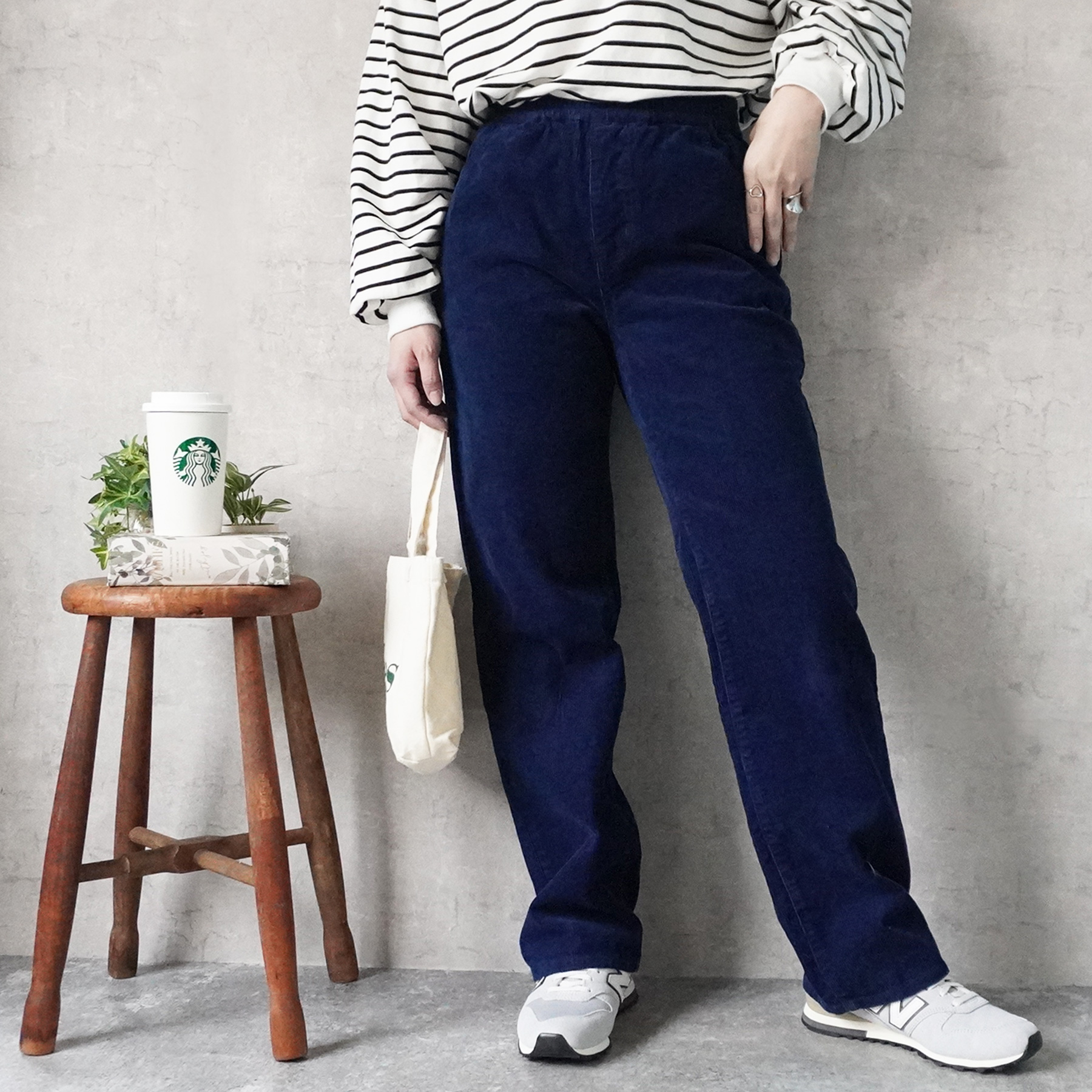 インディゴ染めの深みあるカラーと、コーデュロイの温かみを組み合わせたストレートパンツ。