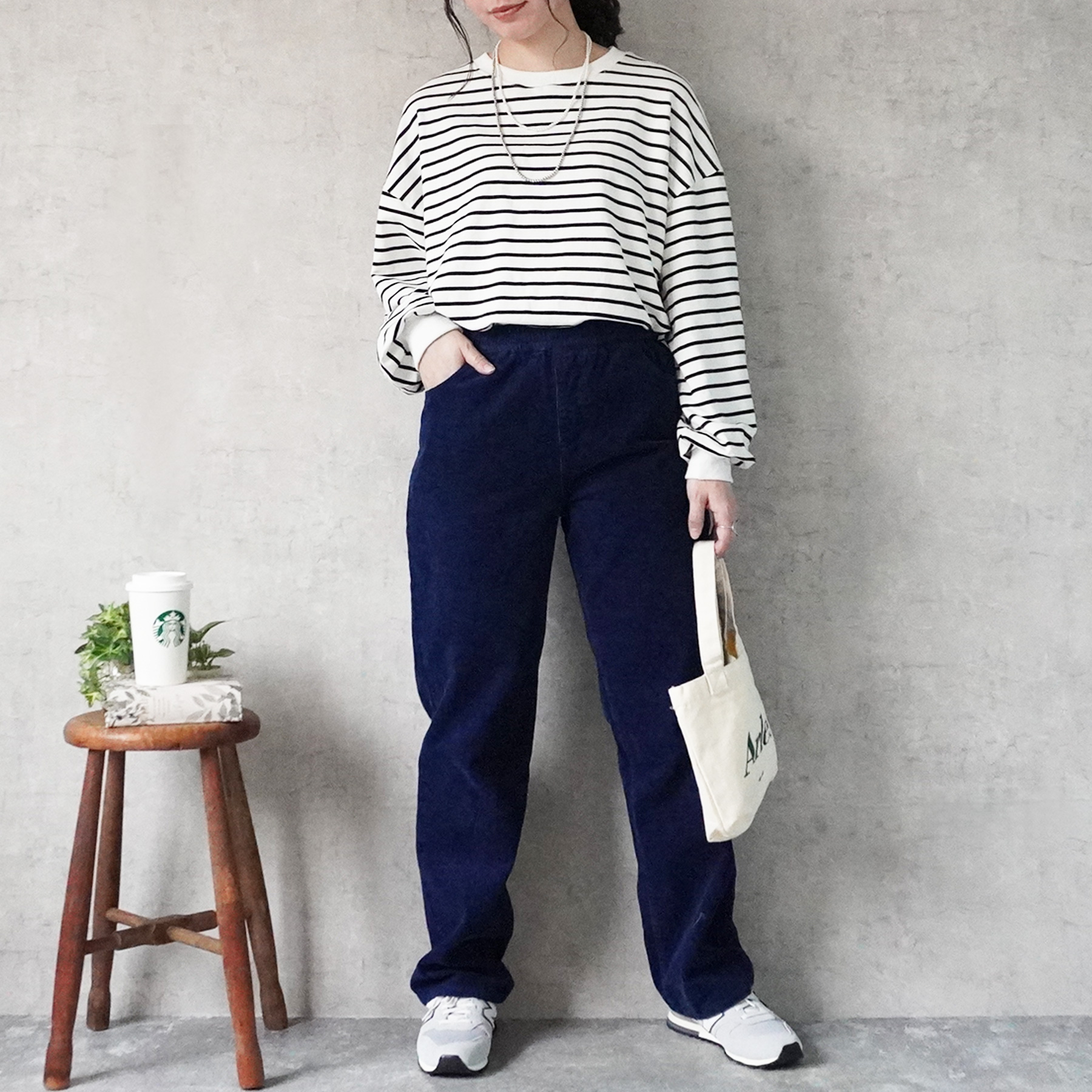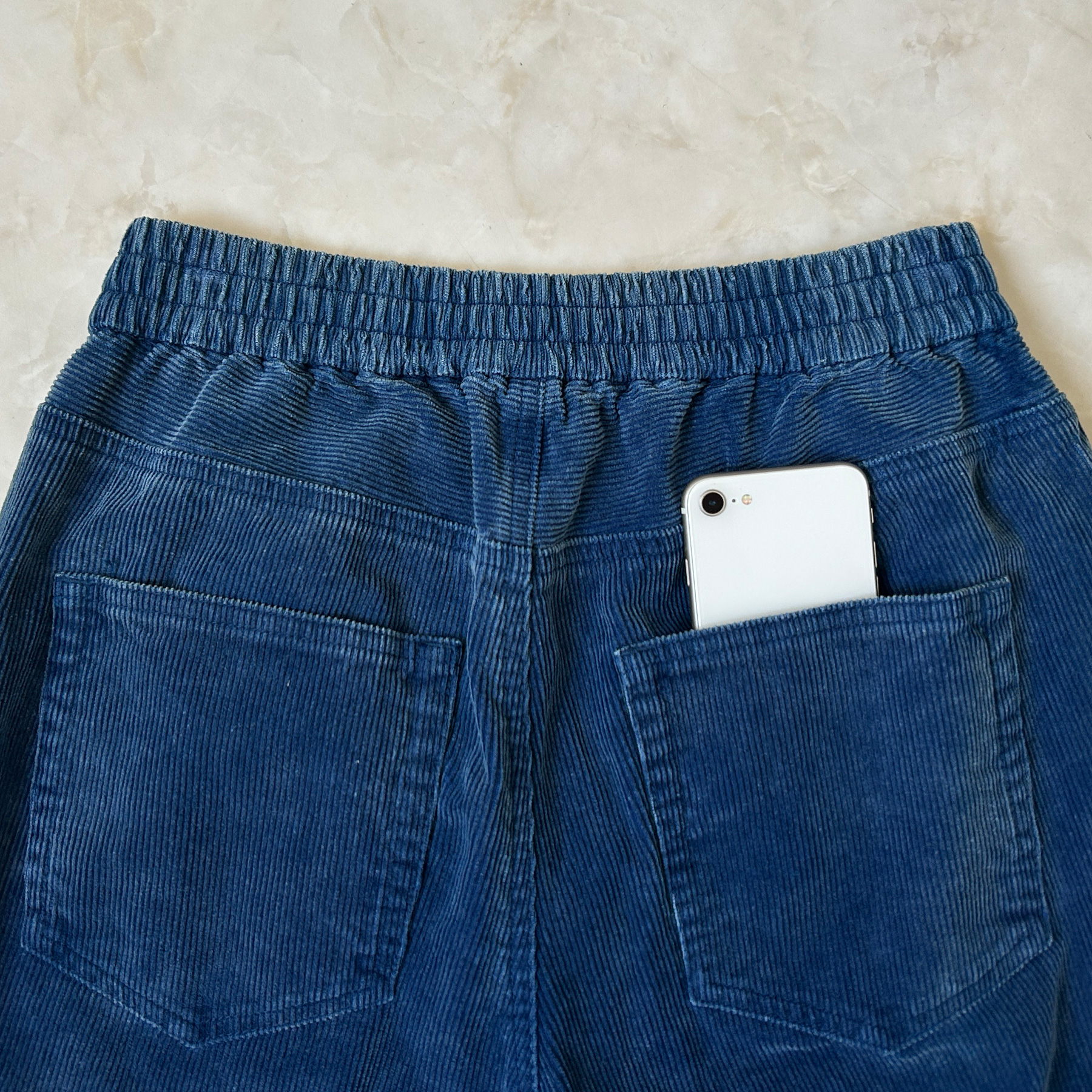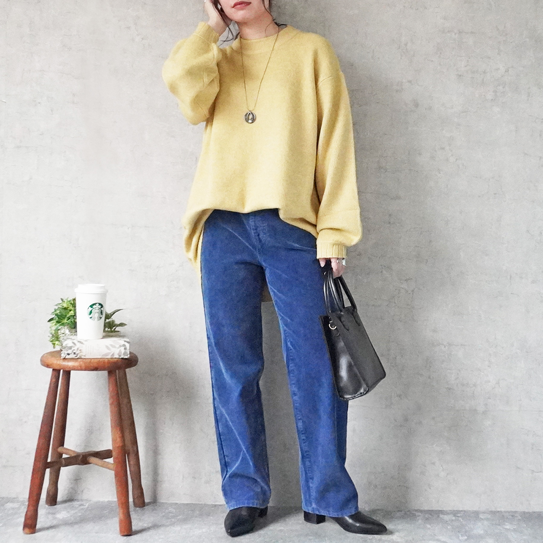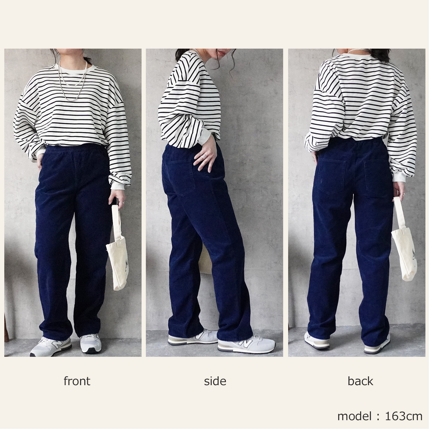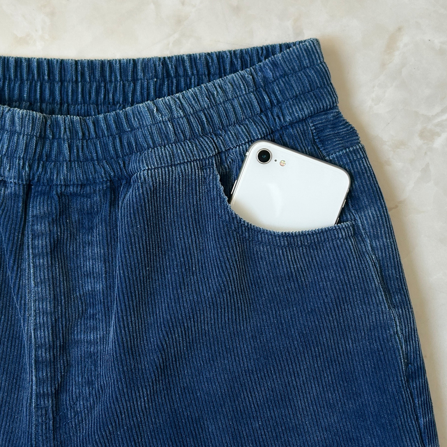 インディゴ染めの深みあるカラーと、コーデュロイの温かみを組み合わせたストレートパンツ。
