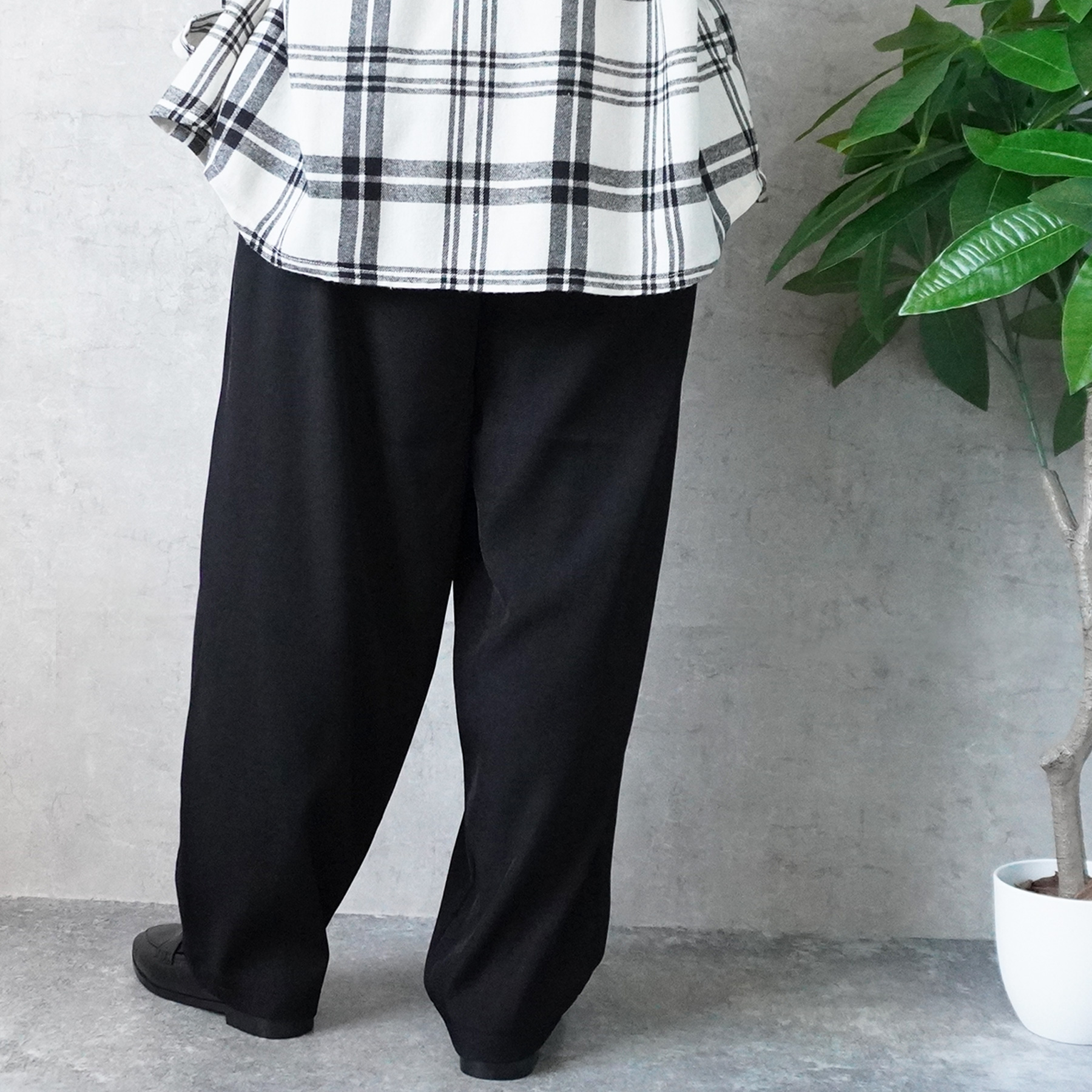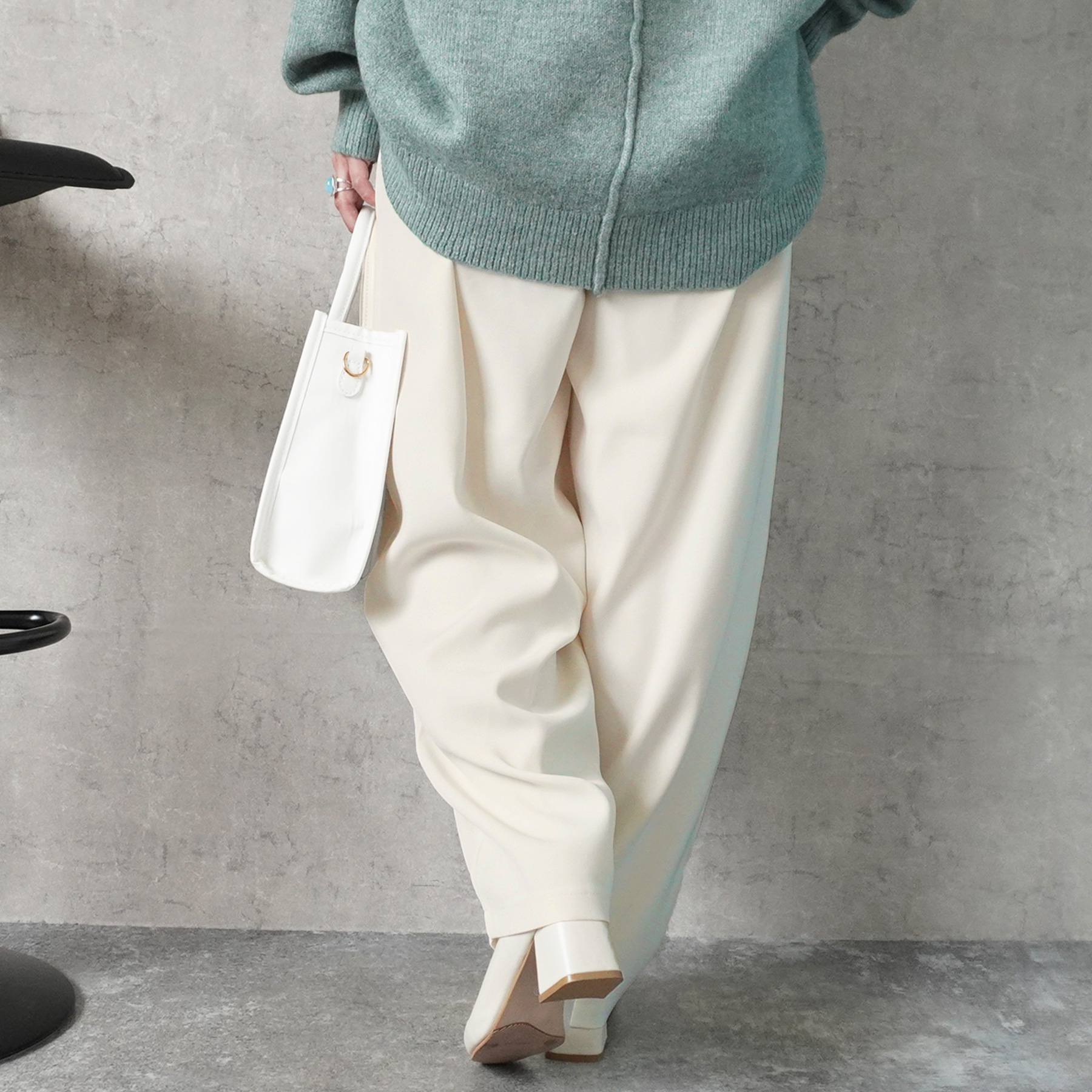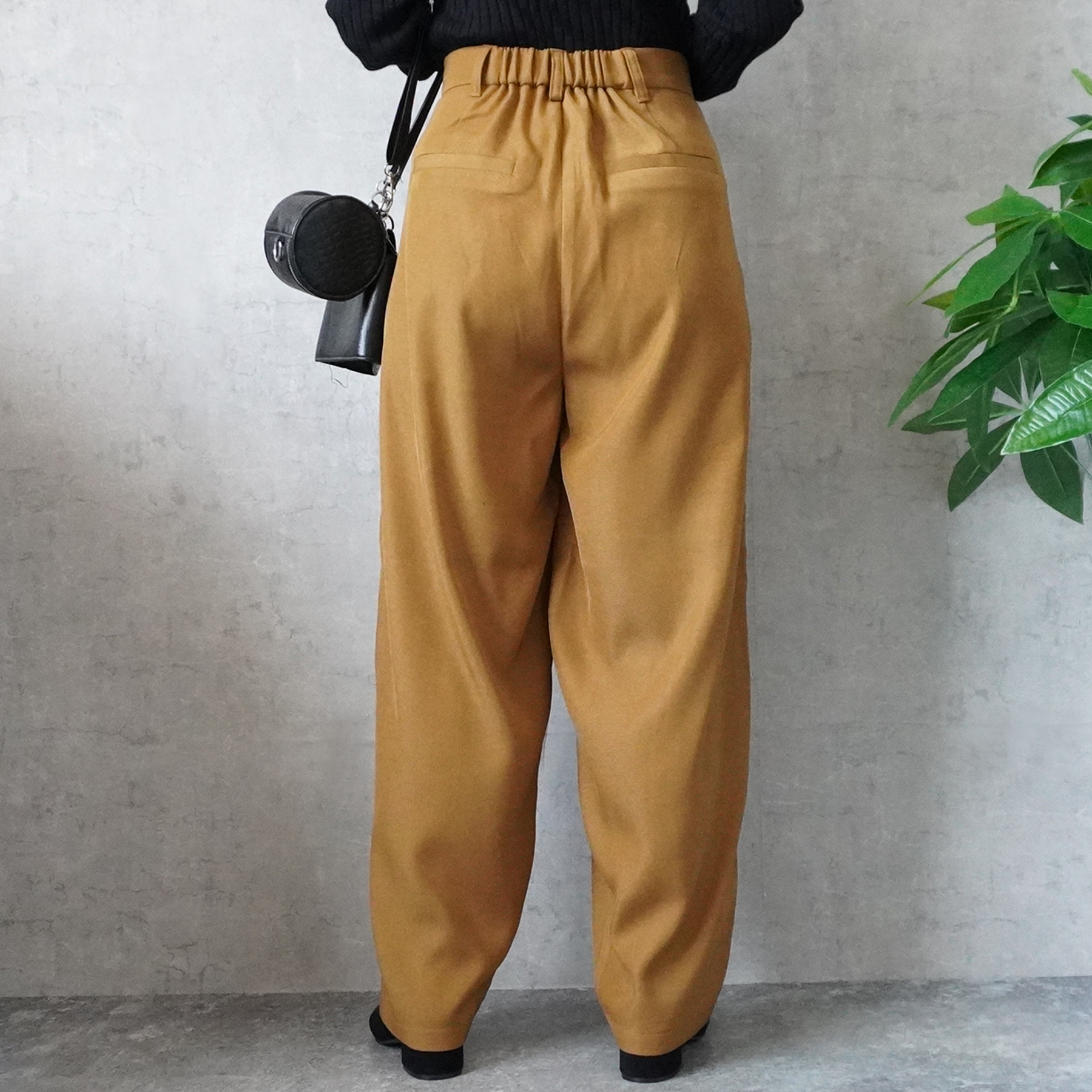 “裏微起毛”素材を使用した、暖かく柔らかな穿き心地のコクーンパンツ。