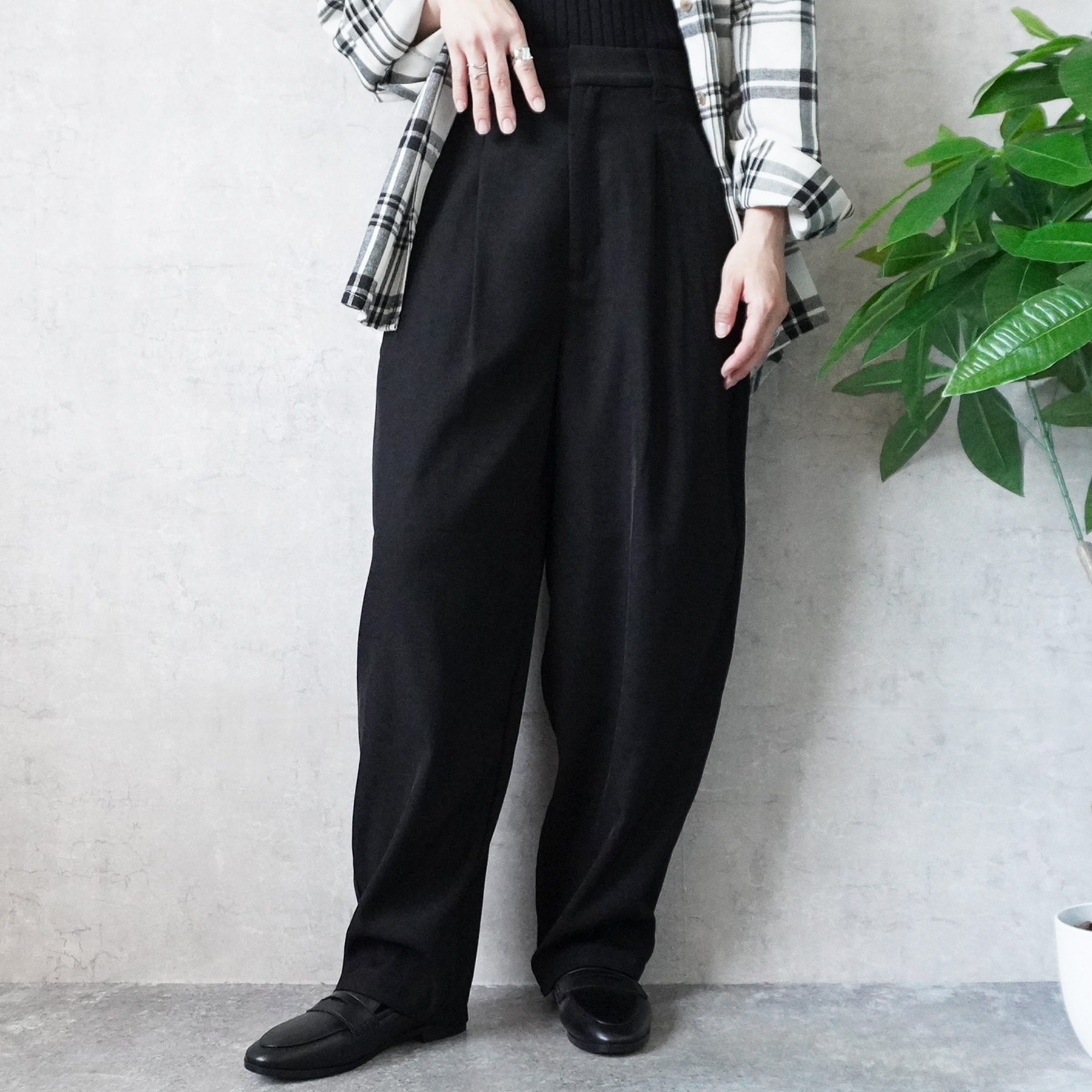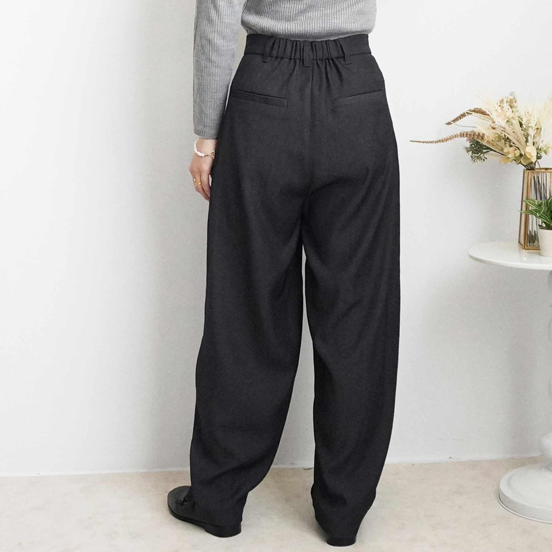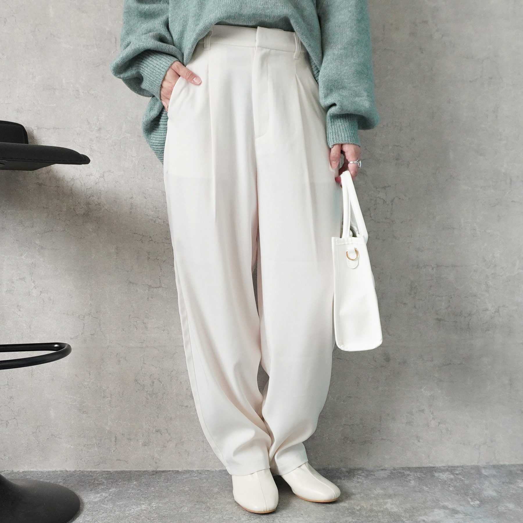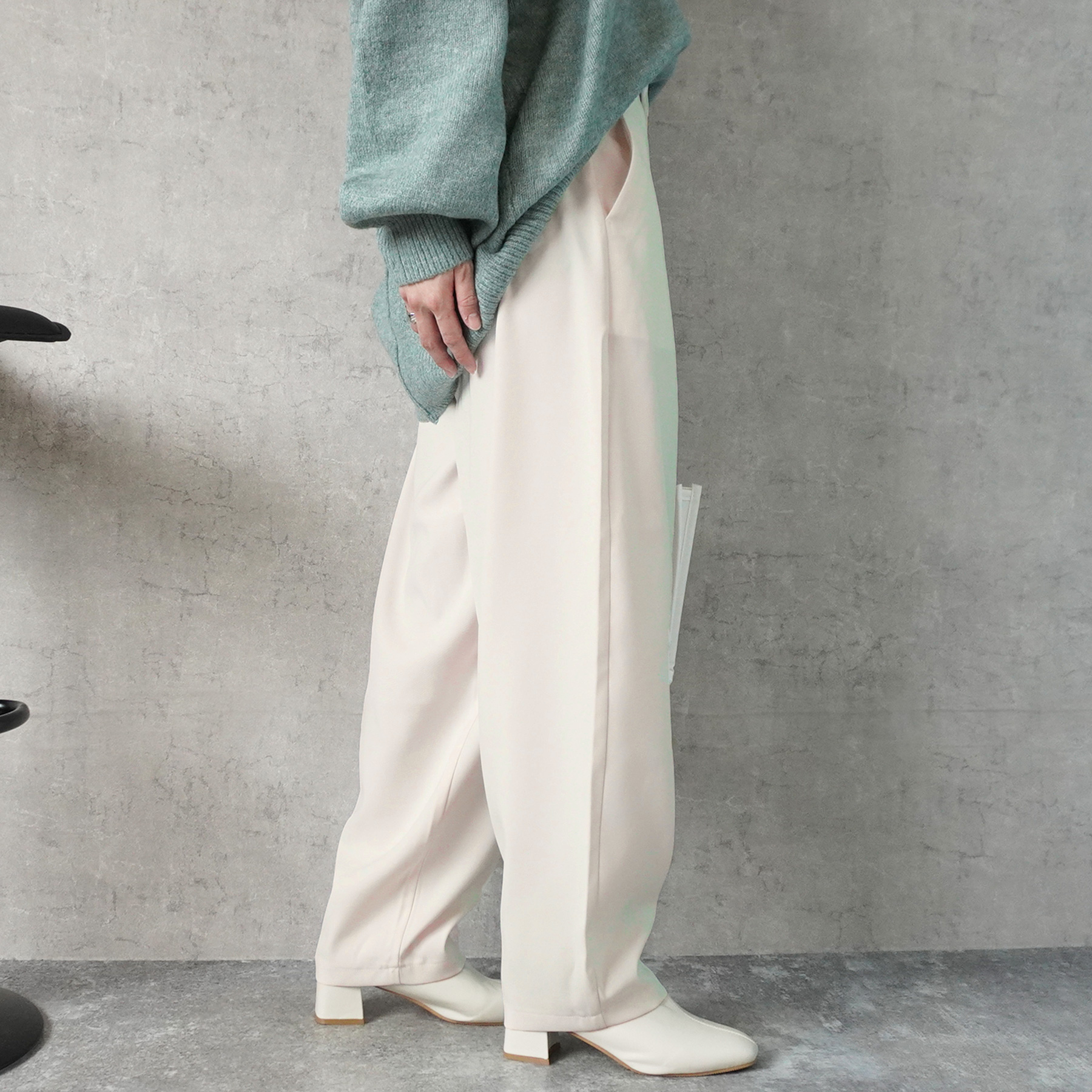 “裏微起毛”素材を使用した、暖かく柔らかな穿き心地のコクーンパンツ。