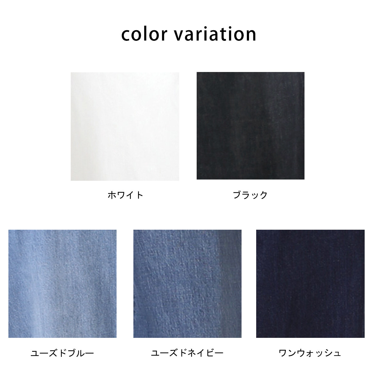 カラーはワンウォッシュ・ユーズドネイビー・ユーズドブルー・ホワイト・ブラックの5色展開です。