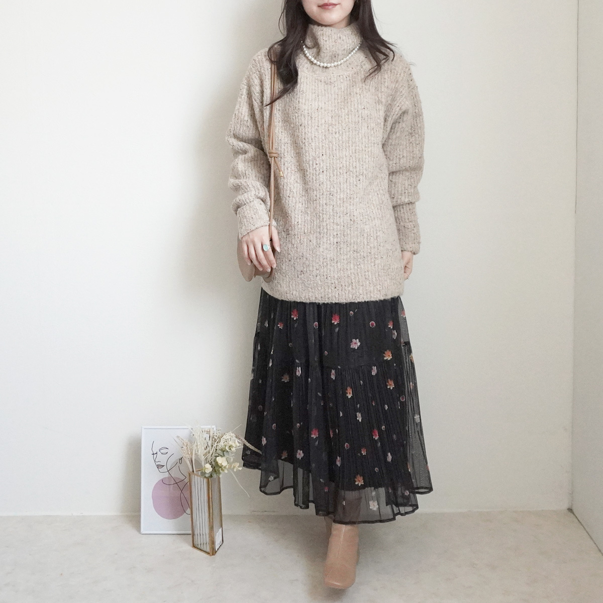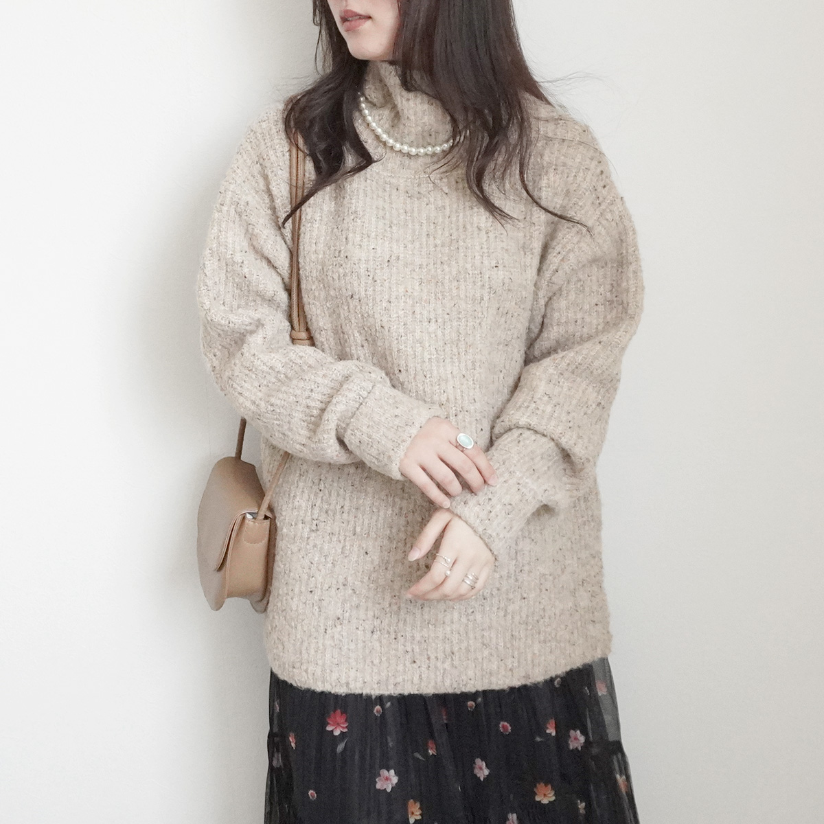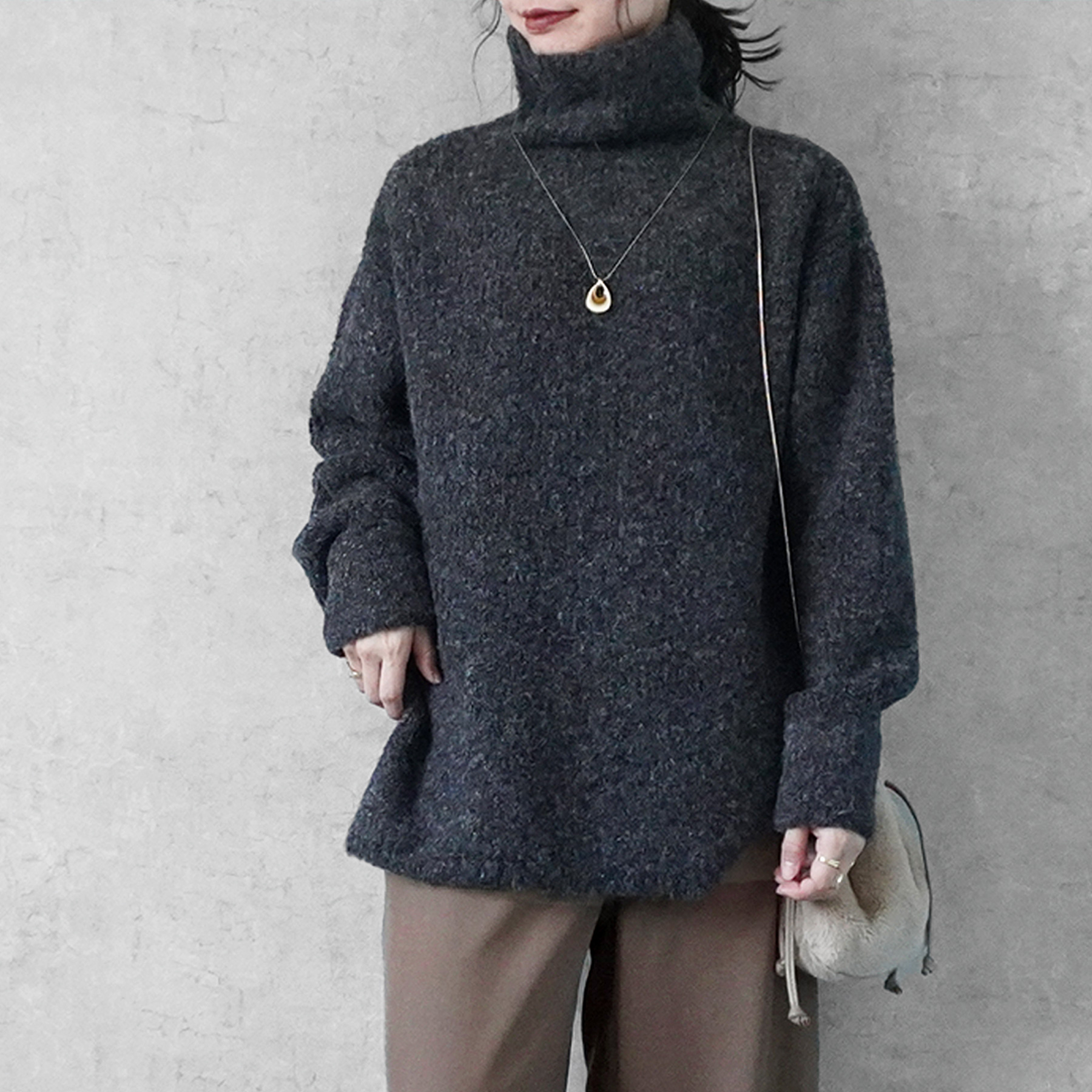 毛足のあるふんわり感たっぷりのミックスカラー糸を使用したニット