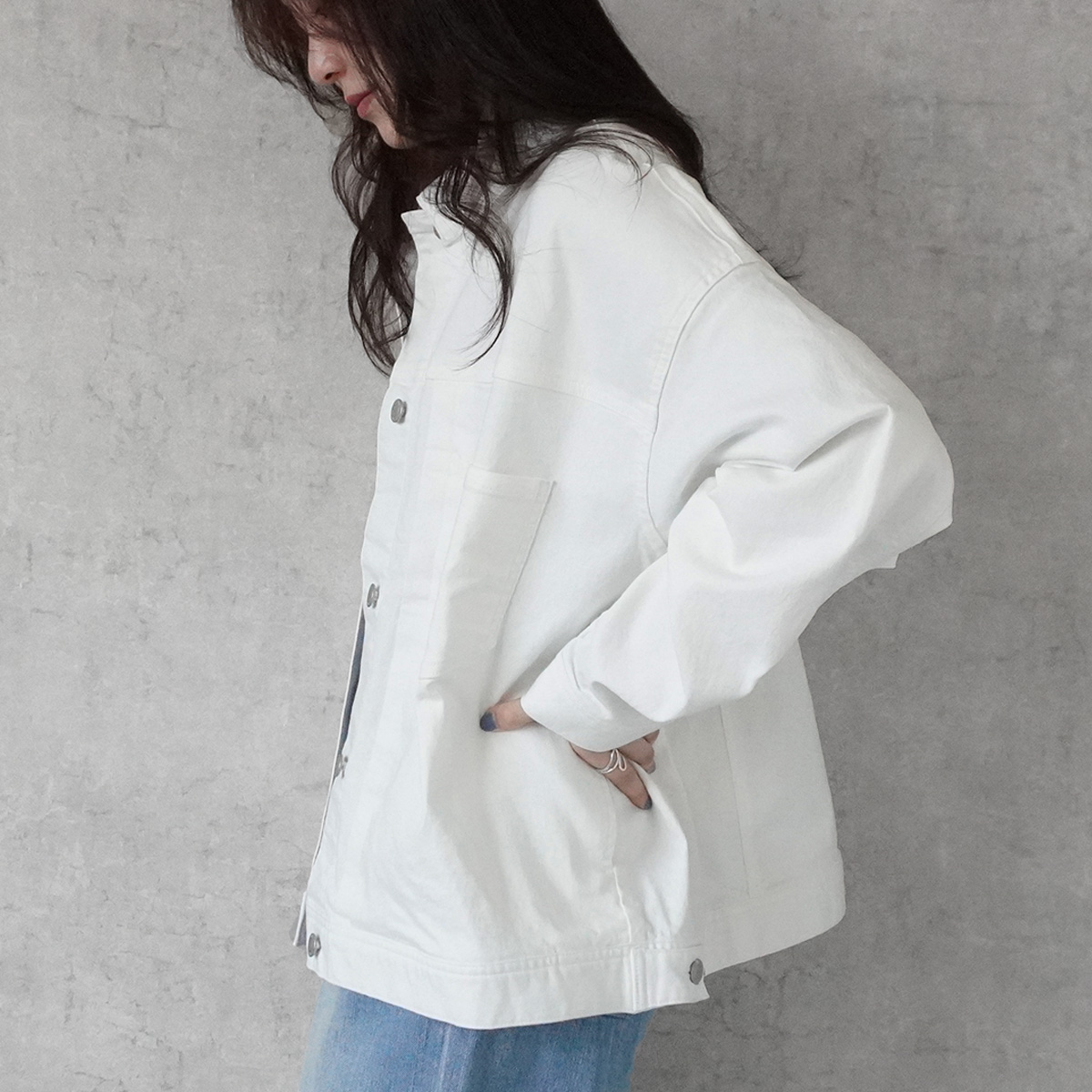 しなやかでスラブ感の少ないリサイクルストレッチデニムを使ったルーズデニムジャケット!