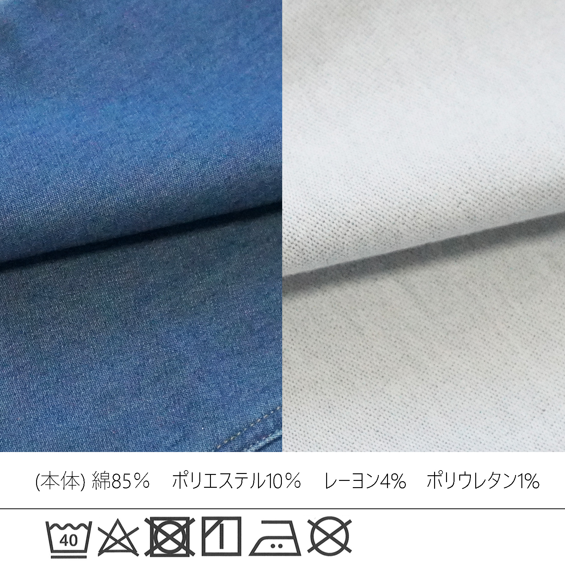 | 素材 | 綿 85% ポリエステル 10% レーヨン 4% ポリウレタン 1% |