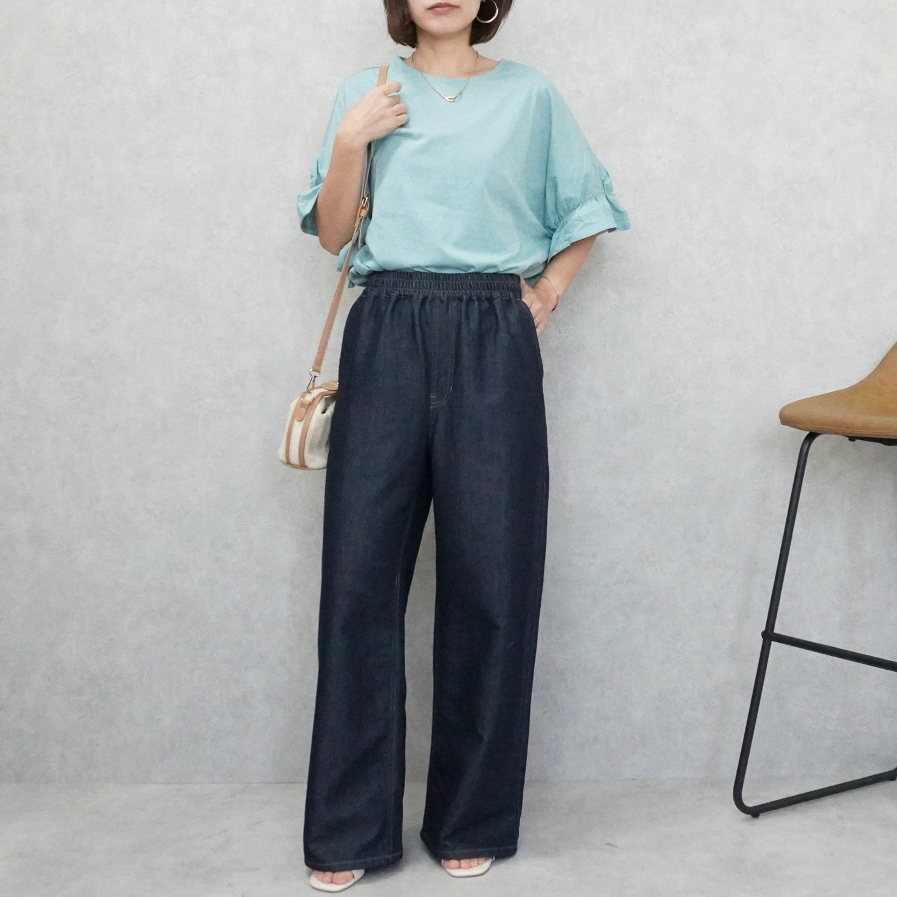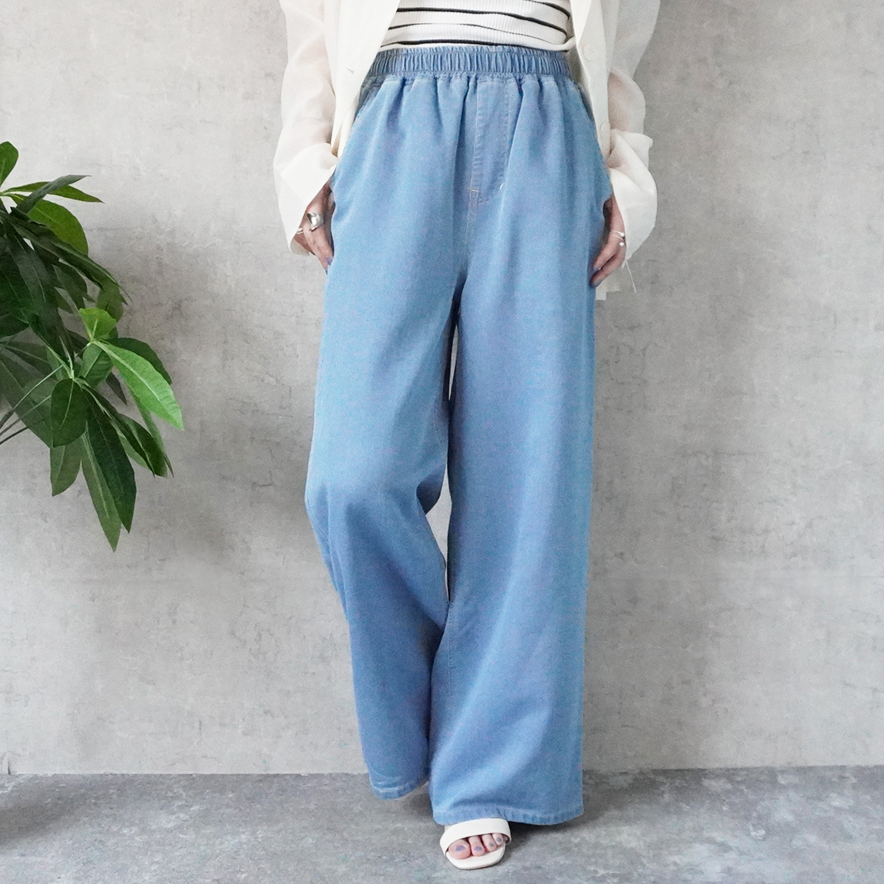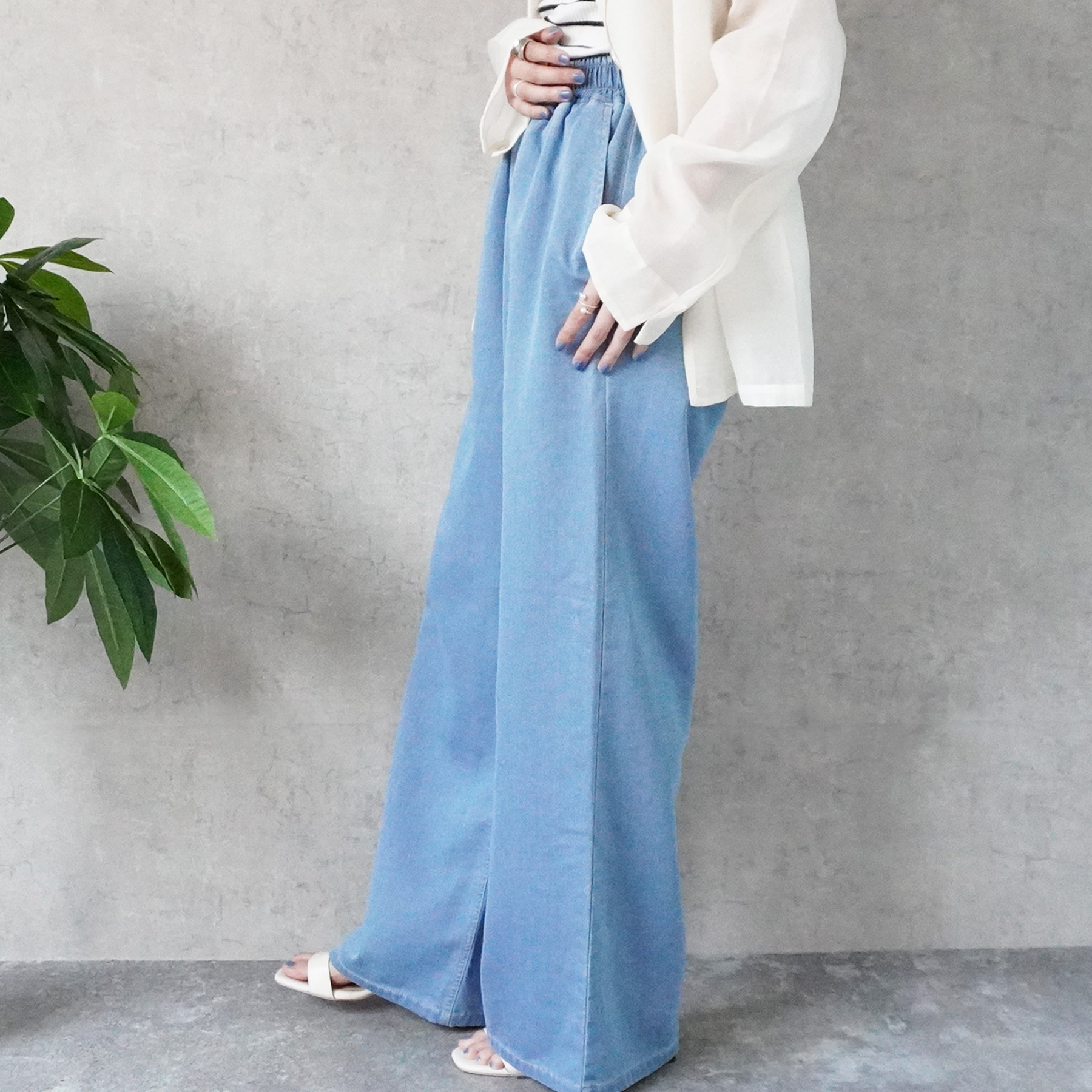 通気性+軽やかでやさしい肌ざわりが魅力のガーゼデニムワイドパンツ