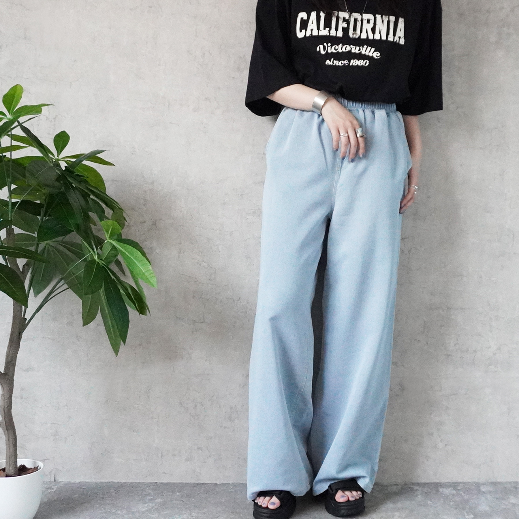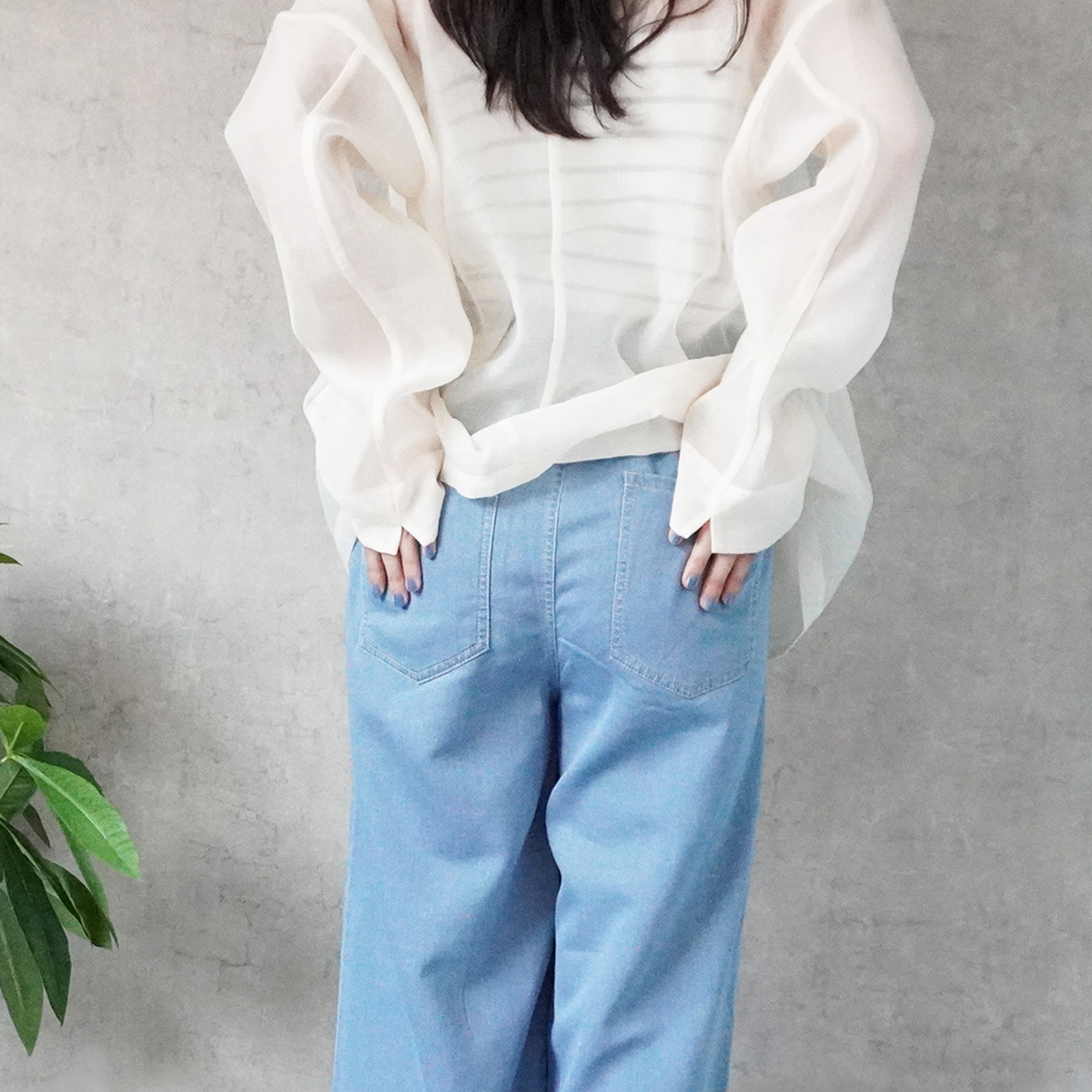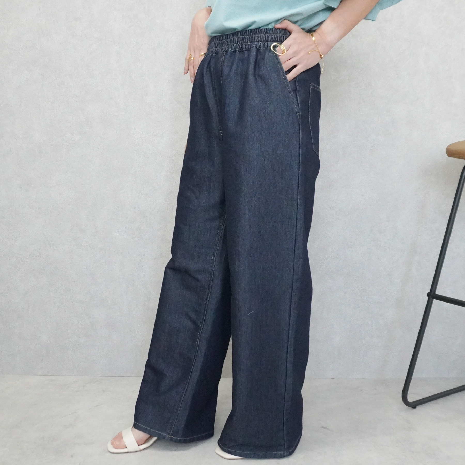 通気性+軽やかでやさしい肌ざわりが魅力のガーゼデニムワイドパンツ