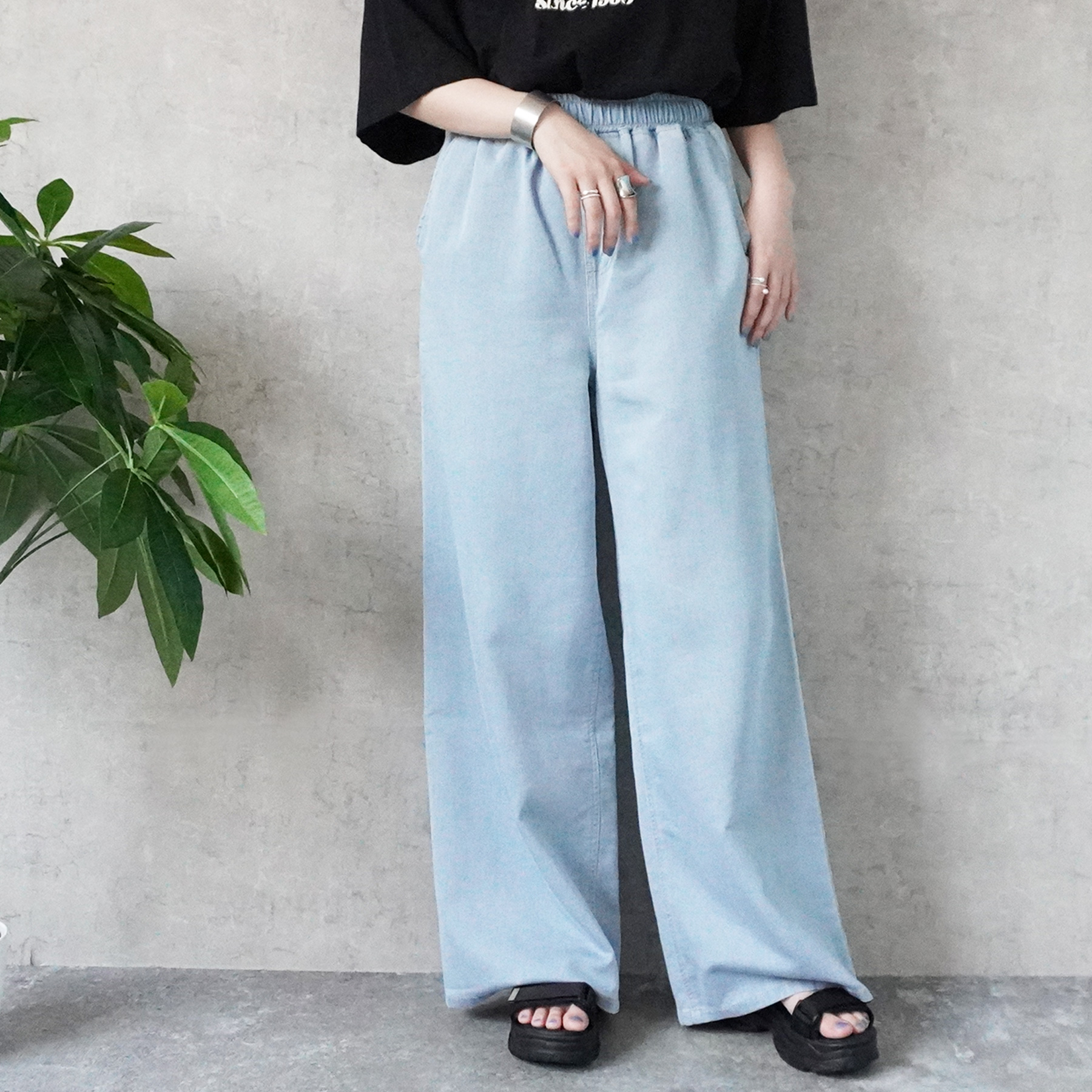 W-6584 ガーゼデニムワイドパンツ
