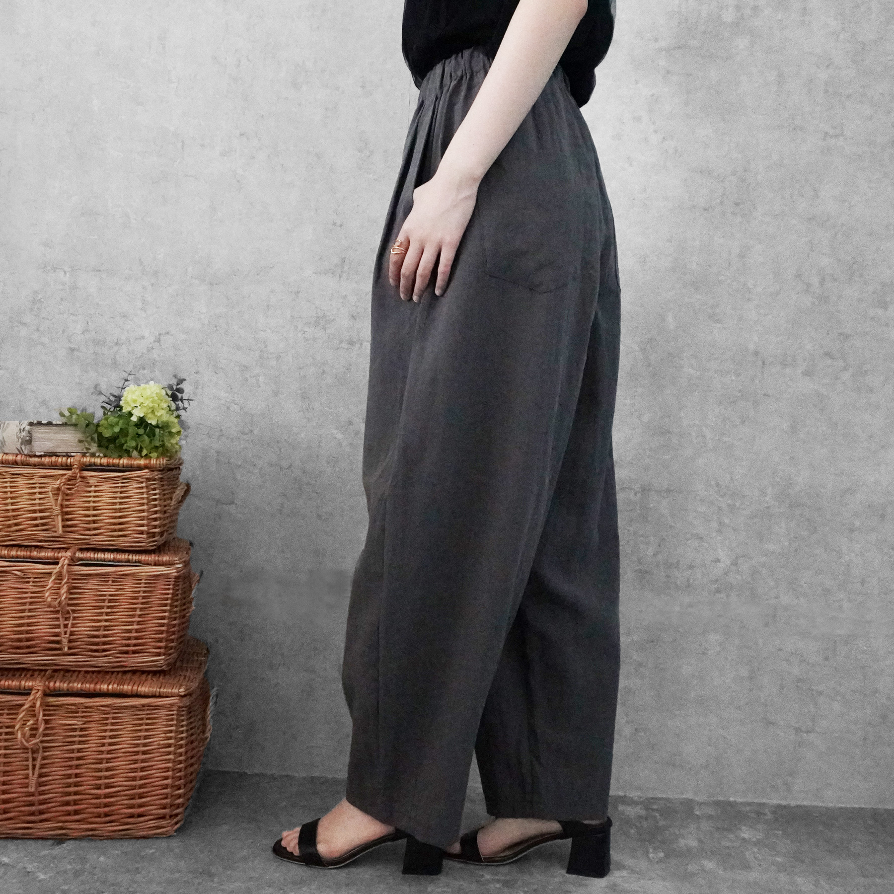 | サイズ | 【S/M/L/LL】 ウエスト(~最大)【63~95/66〜98/69〜101/72〜104】 ヒップ【111/114/117/120】 渡り幅【40/41/42/43】 前股ぐり【35.5/36/36.5/37】 後股ぐり【45.5/46/46.5/47】 裾幅【22.5/23/23.7/24.4】 股下【62/63/63/64】 ベルト幅【4.5/4.5/4.5/4.5】 サイズ感: ●ゆるい / ほどよい / きつい モデル画像【Mサイズ着用/163cm】 |