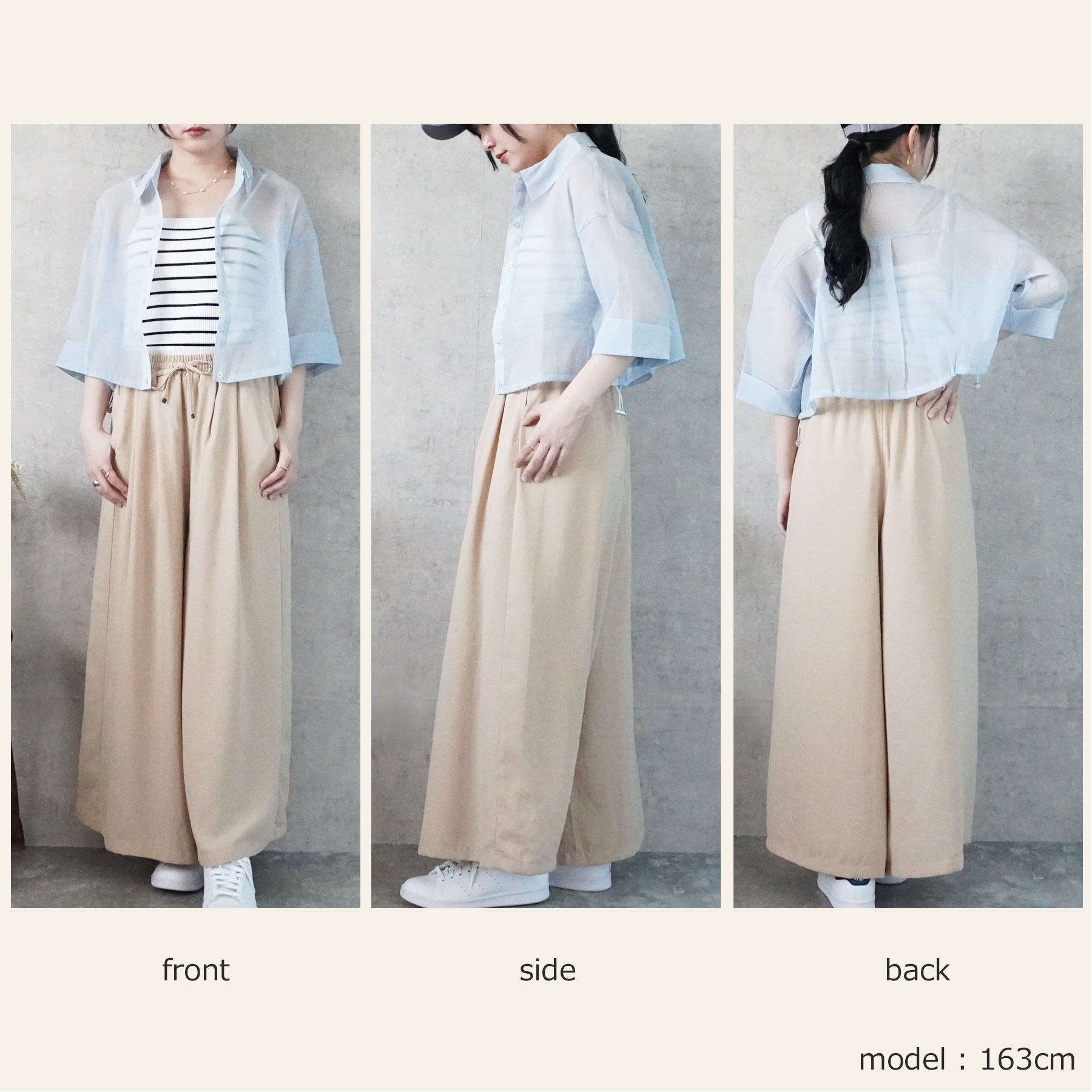 スカート見えするワイドシルエットで、