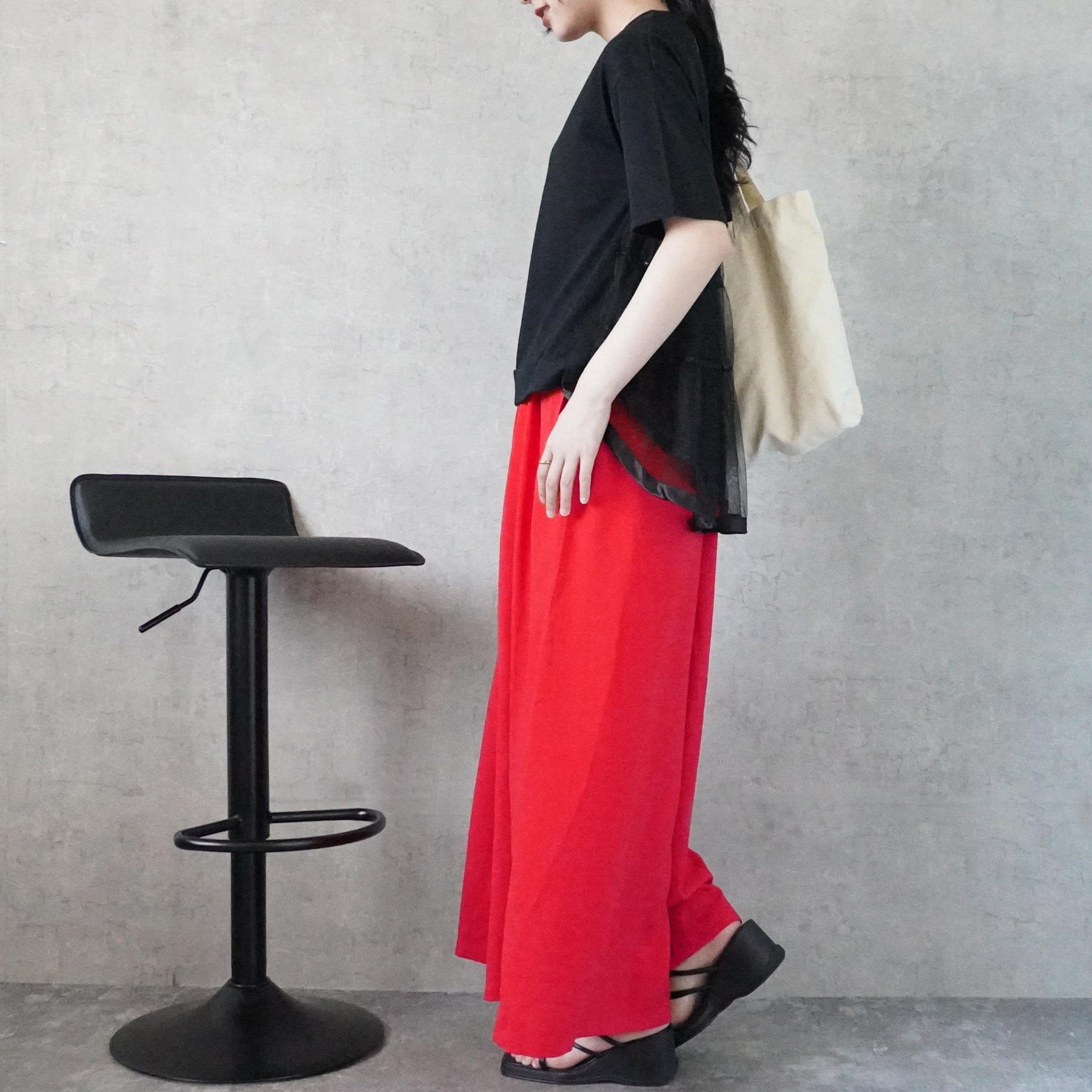 スカート見えするワイドシルエットが