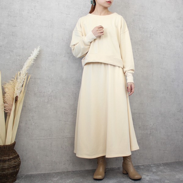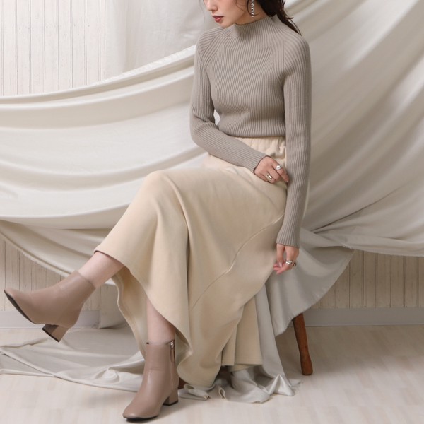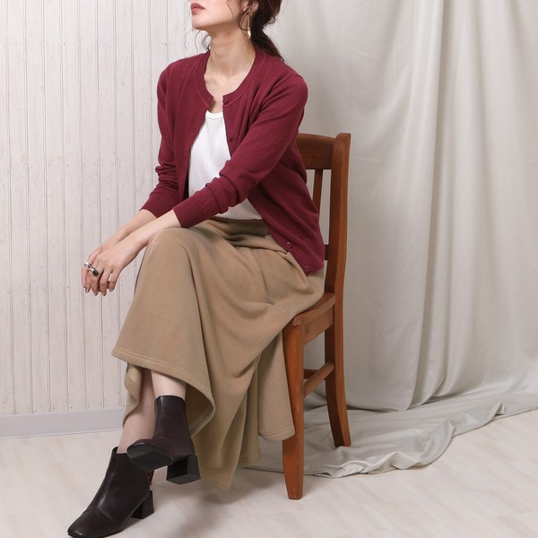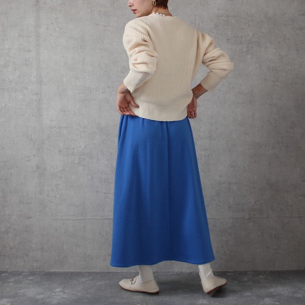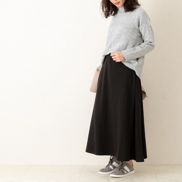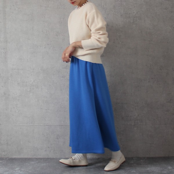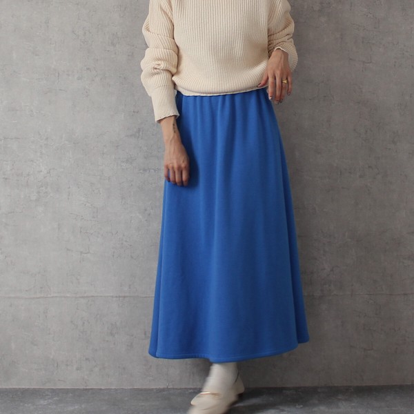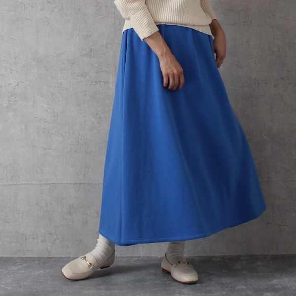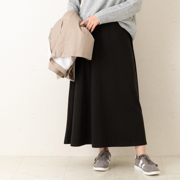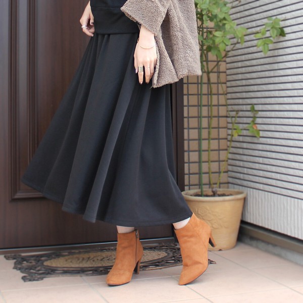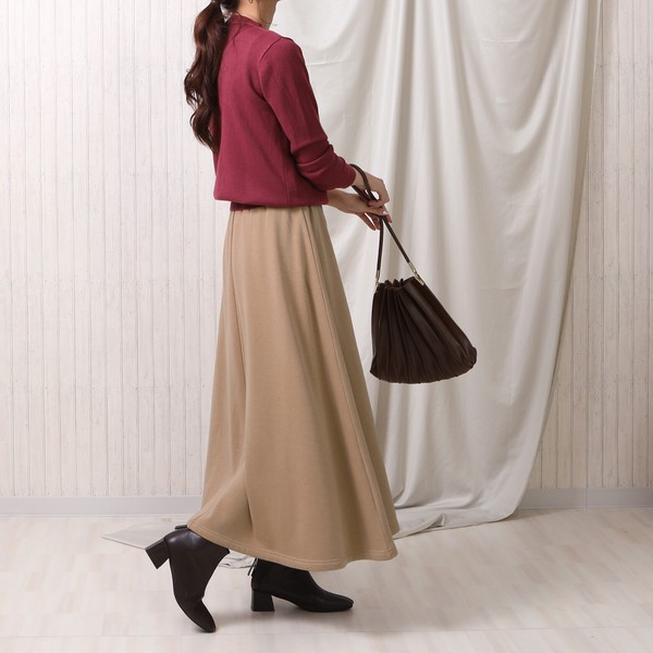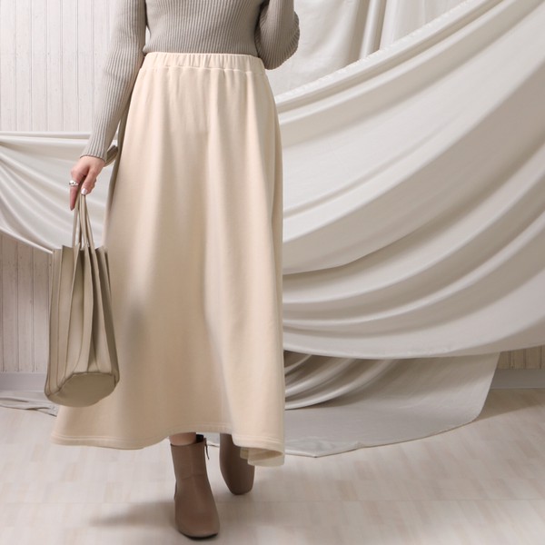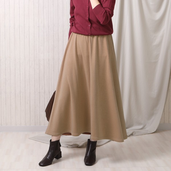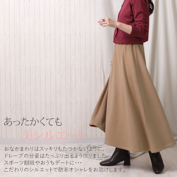 裏シャギーが温かくアルガン加工で保湿効果が期待できるロングフレアスカート