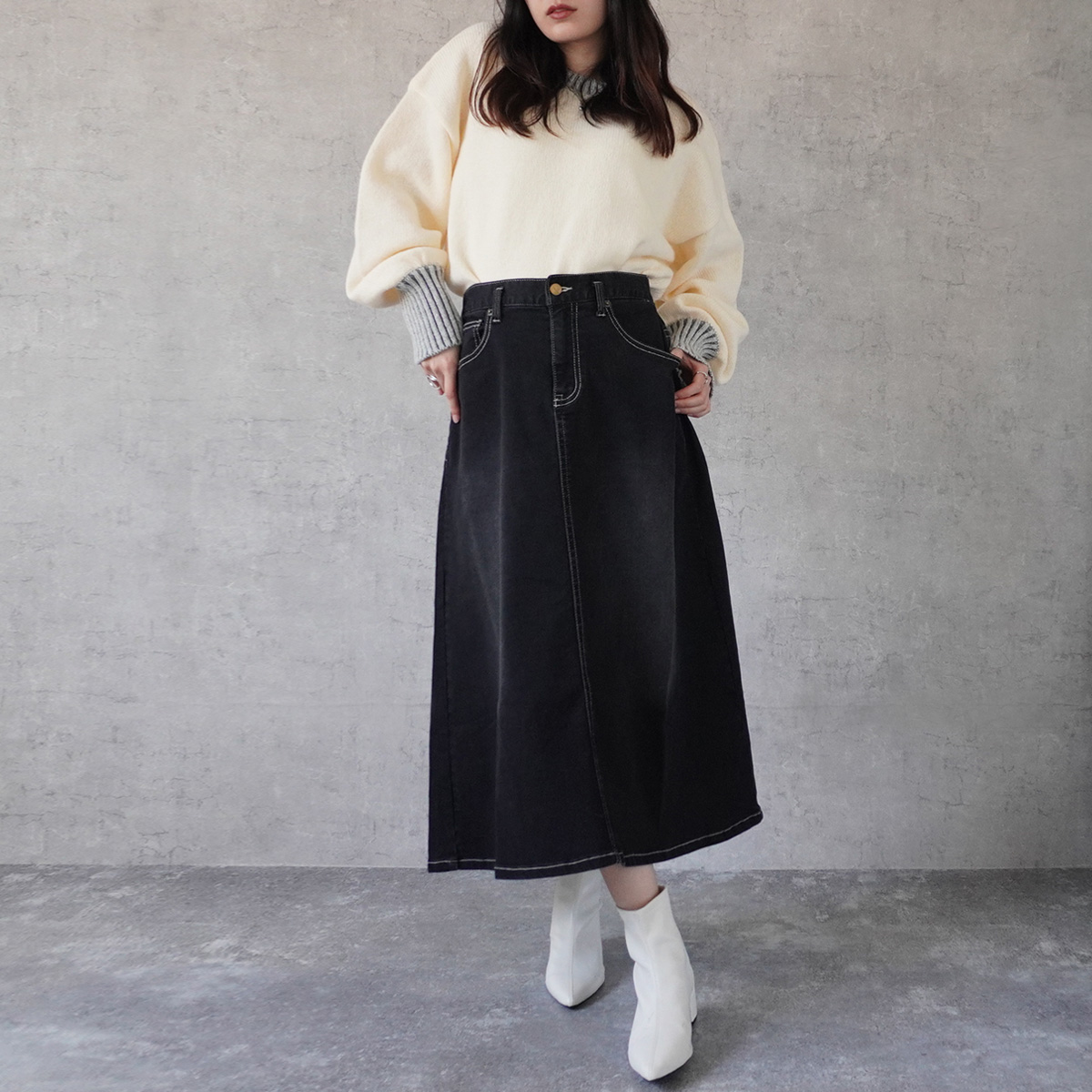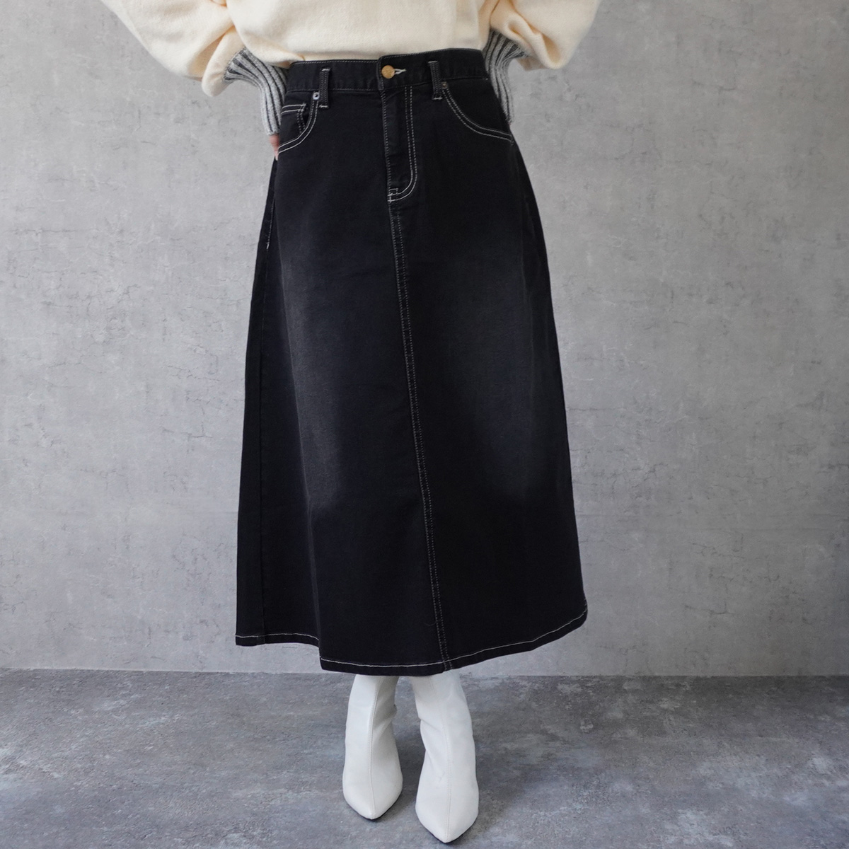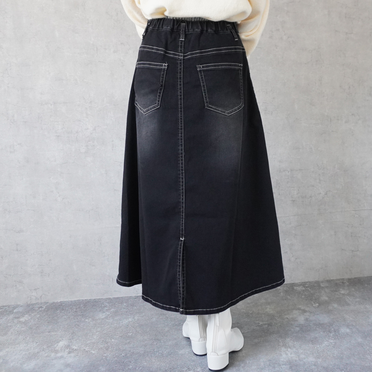 柔らかく良く伸びるストレッチデニムを使ったAラインロングスカート